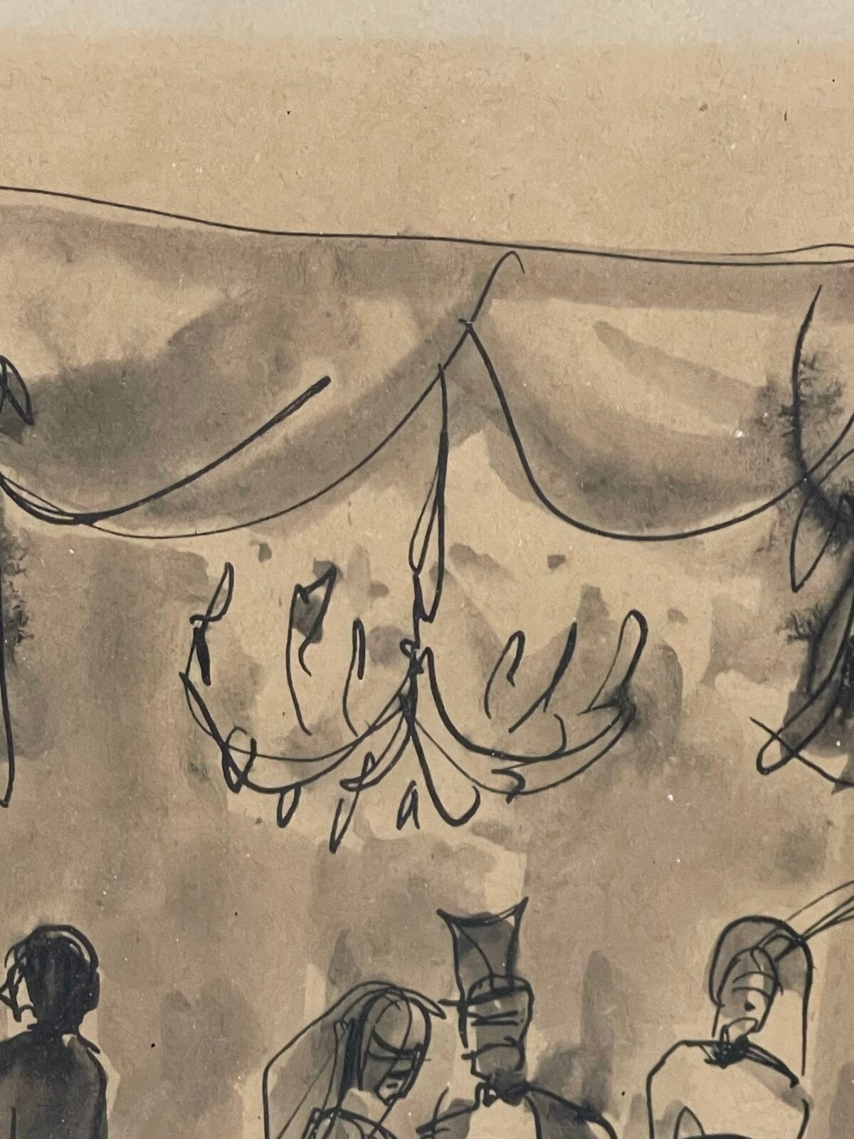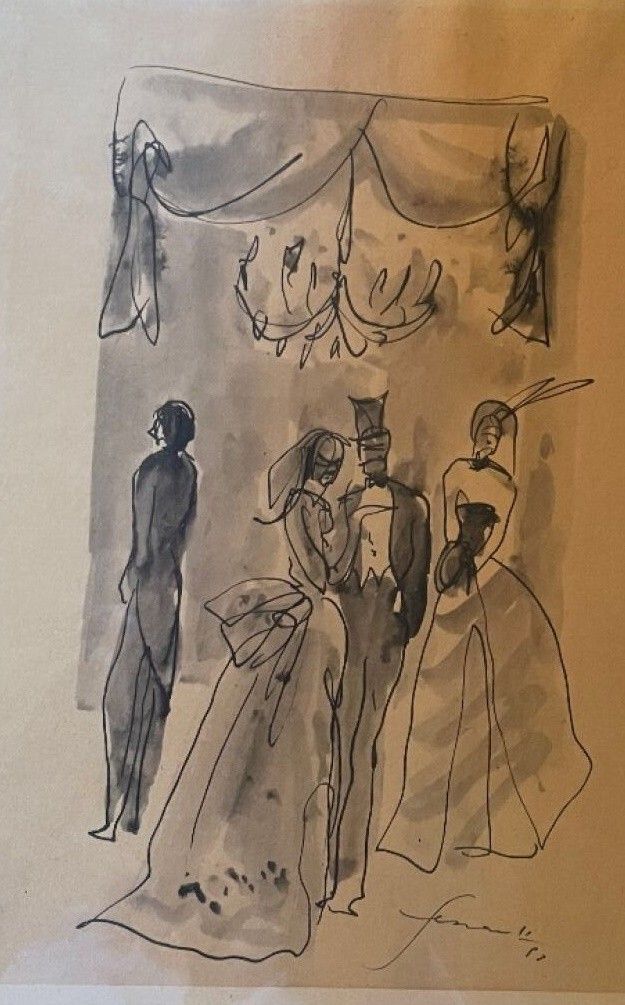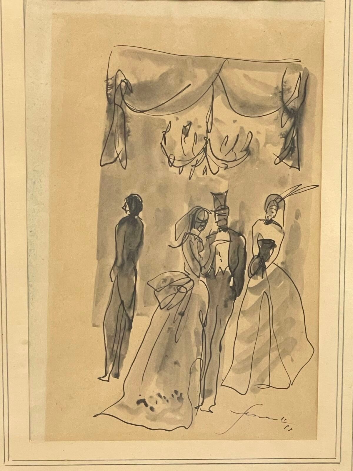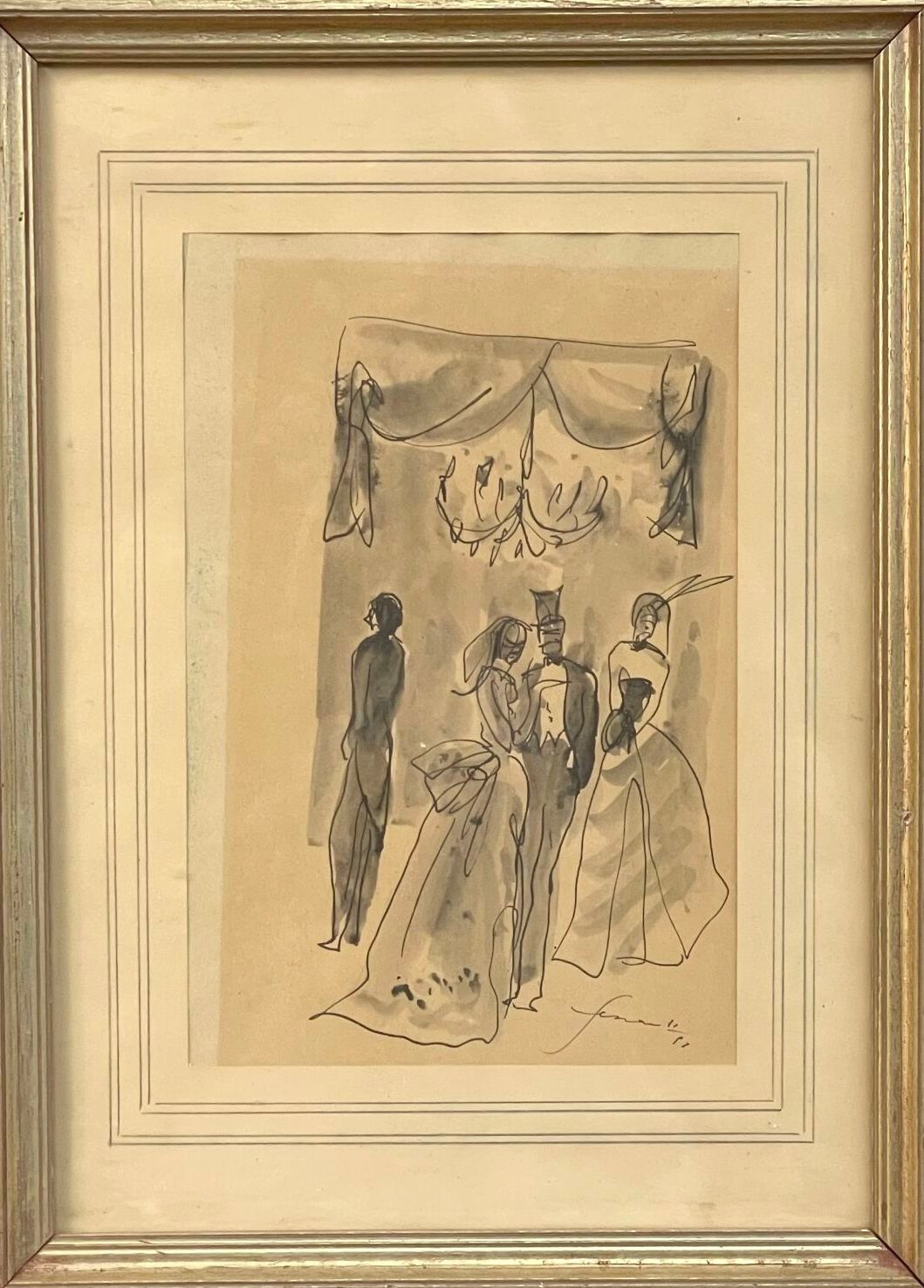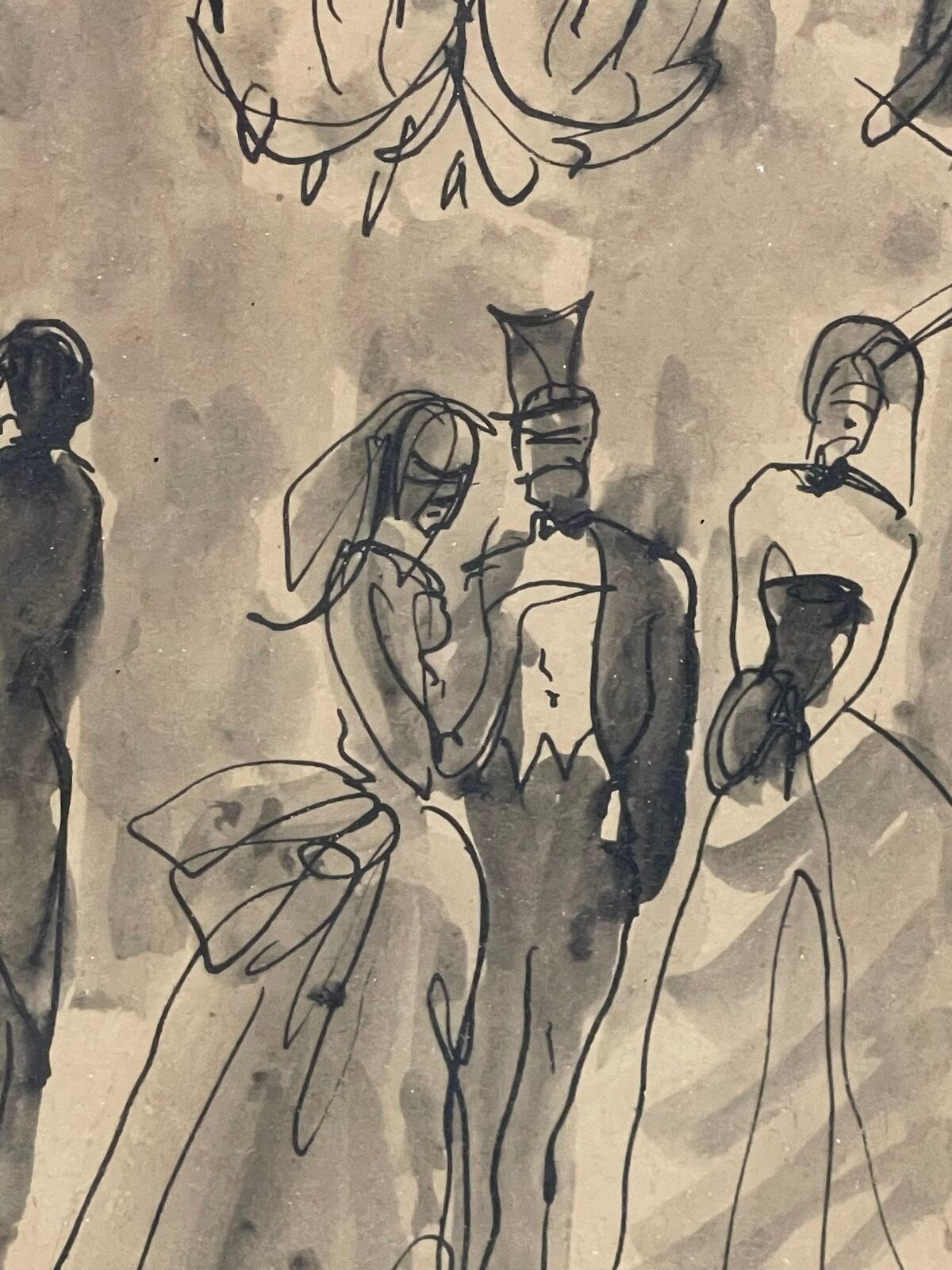 Modern school Ball scene Pen and ink, signed Ferranti lower …