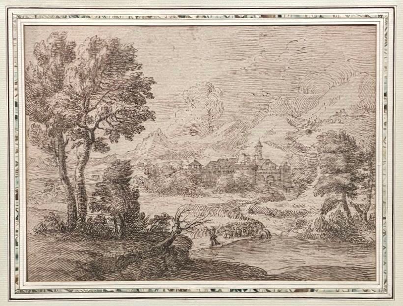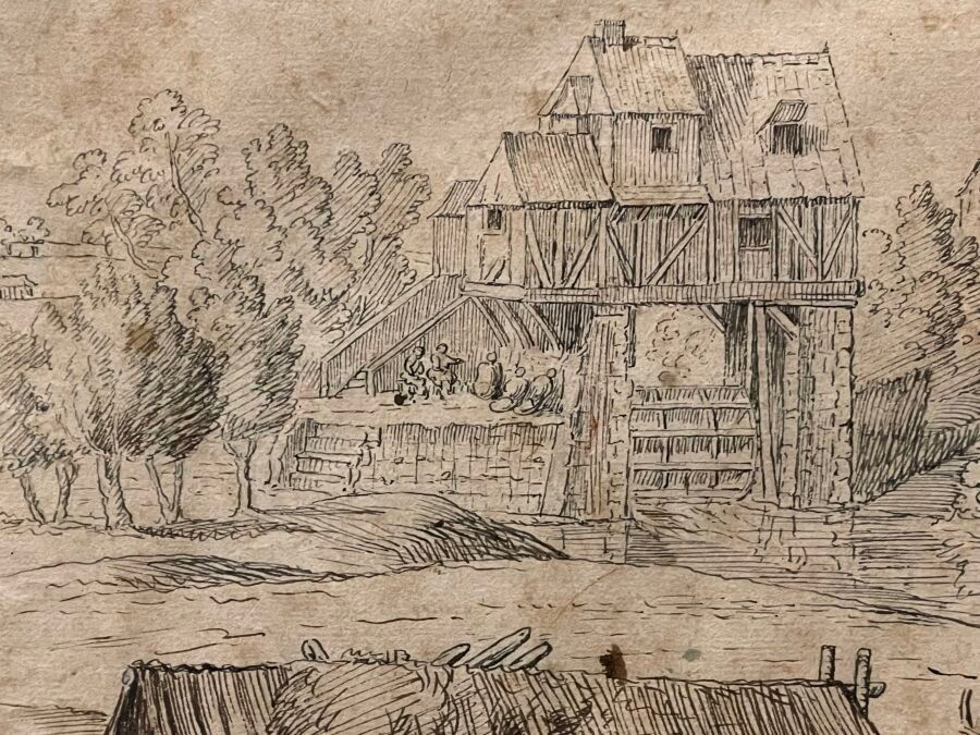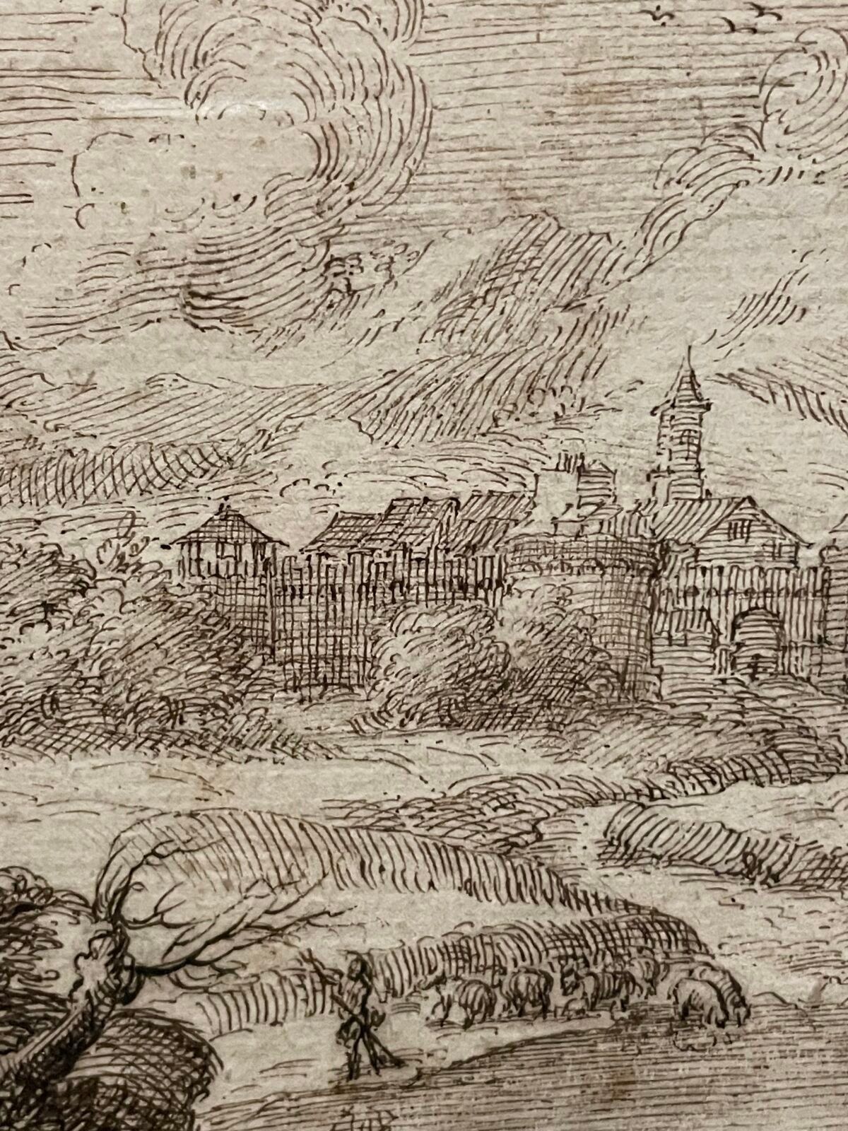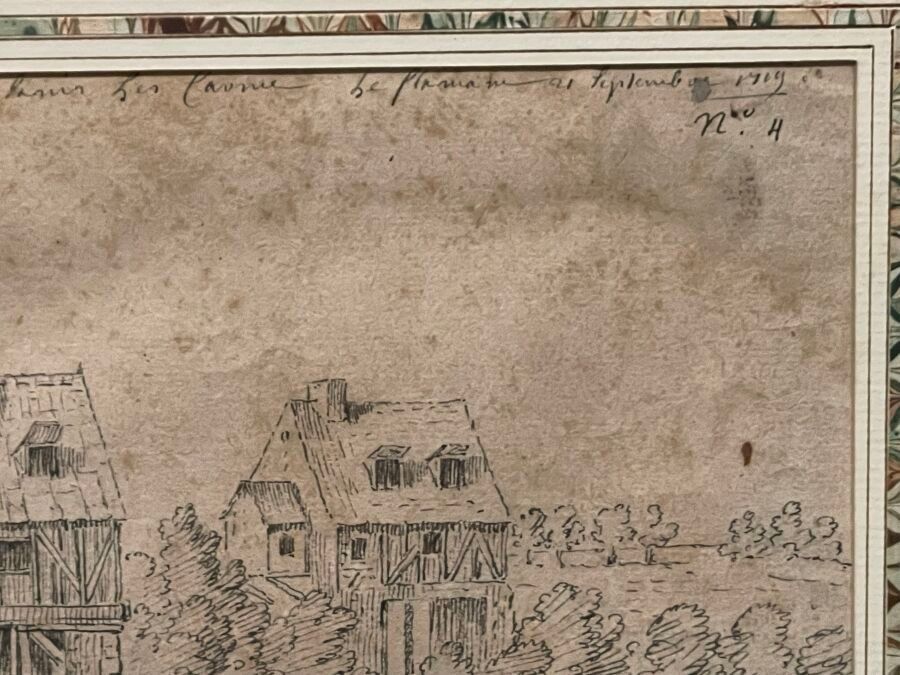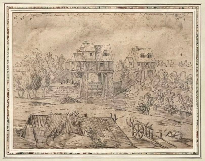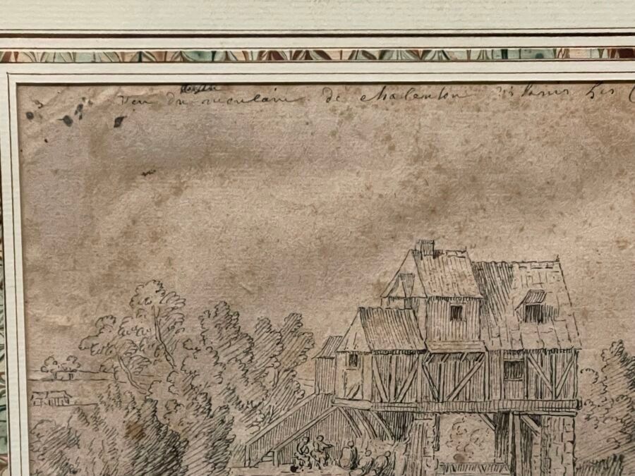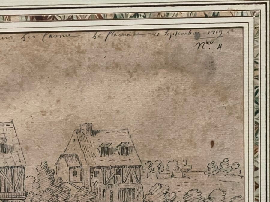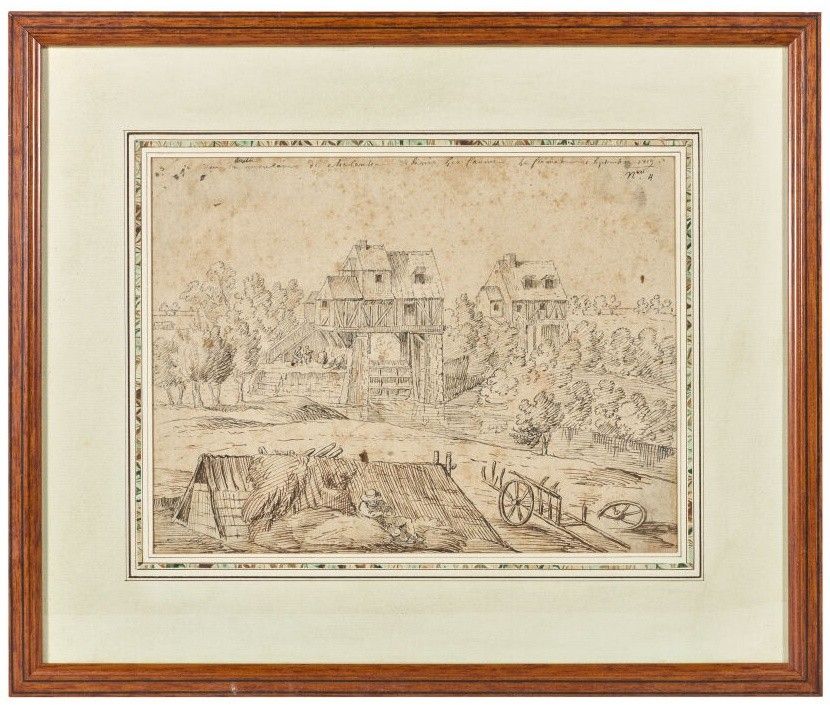 Pen, black and brown ink and traces of red chalk, located, dated and numbered at the top in pen and black ink: "vue du moulain de Charenton les Parris, les Carme, Le Flamani, 21 septembre 1719, n° 4".