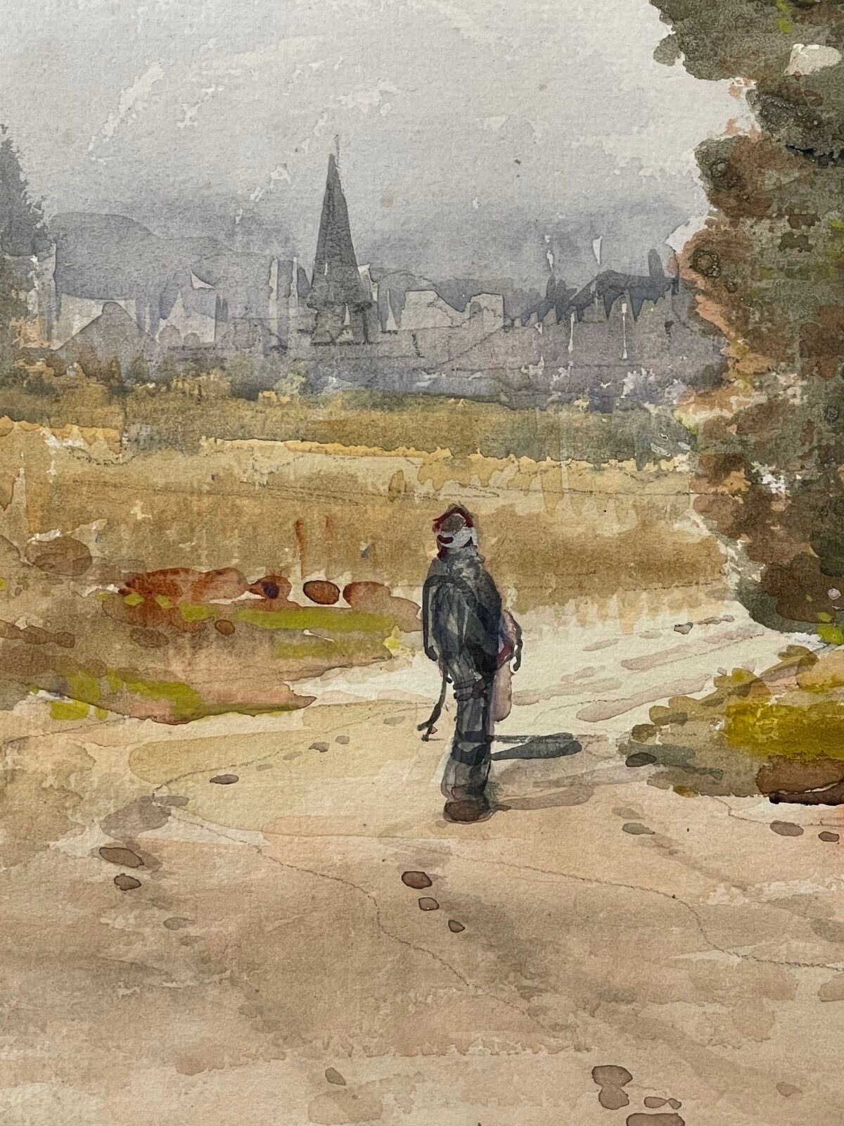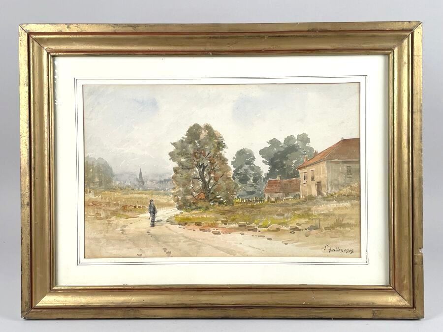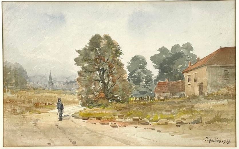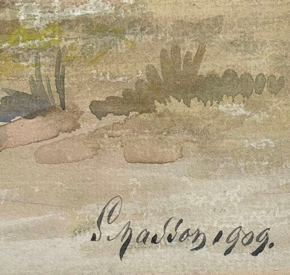 Watercolour and graphite on paper, signed and dated 1909 lower right.
