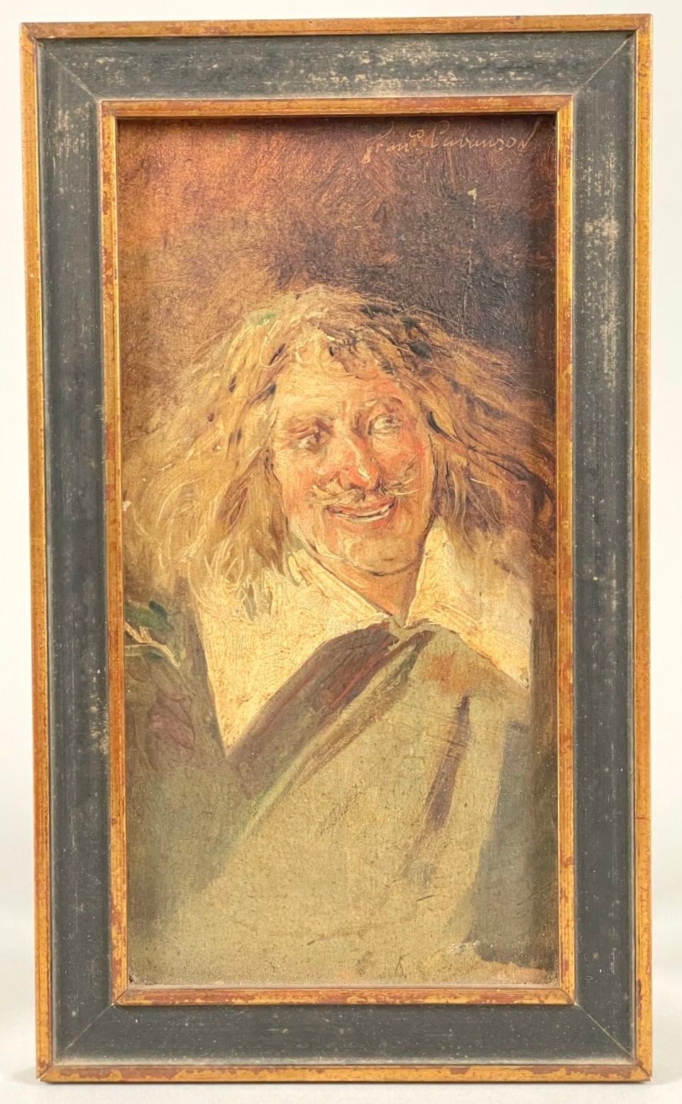 Oil on panel, signed upper right.