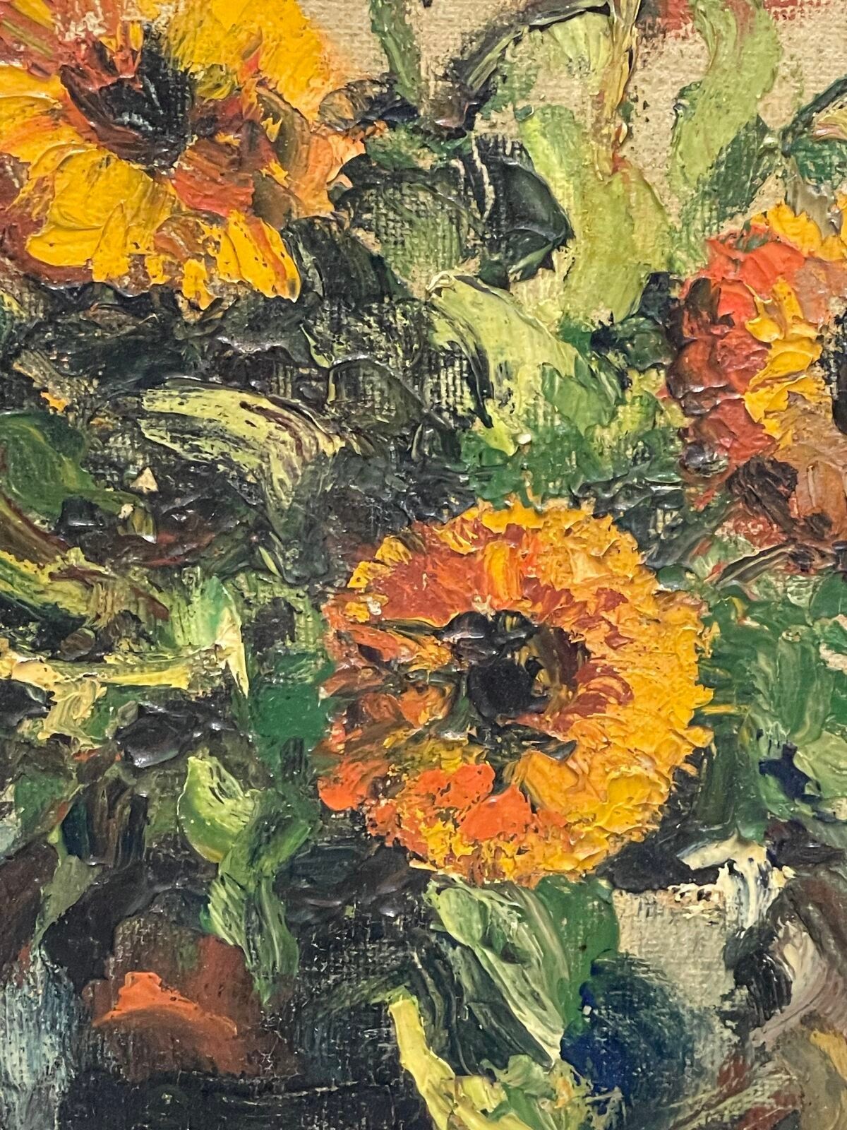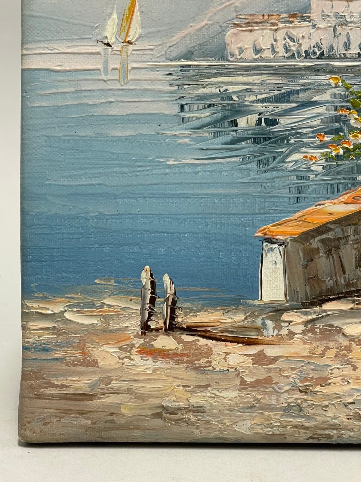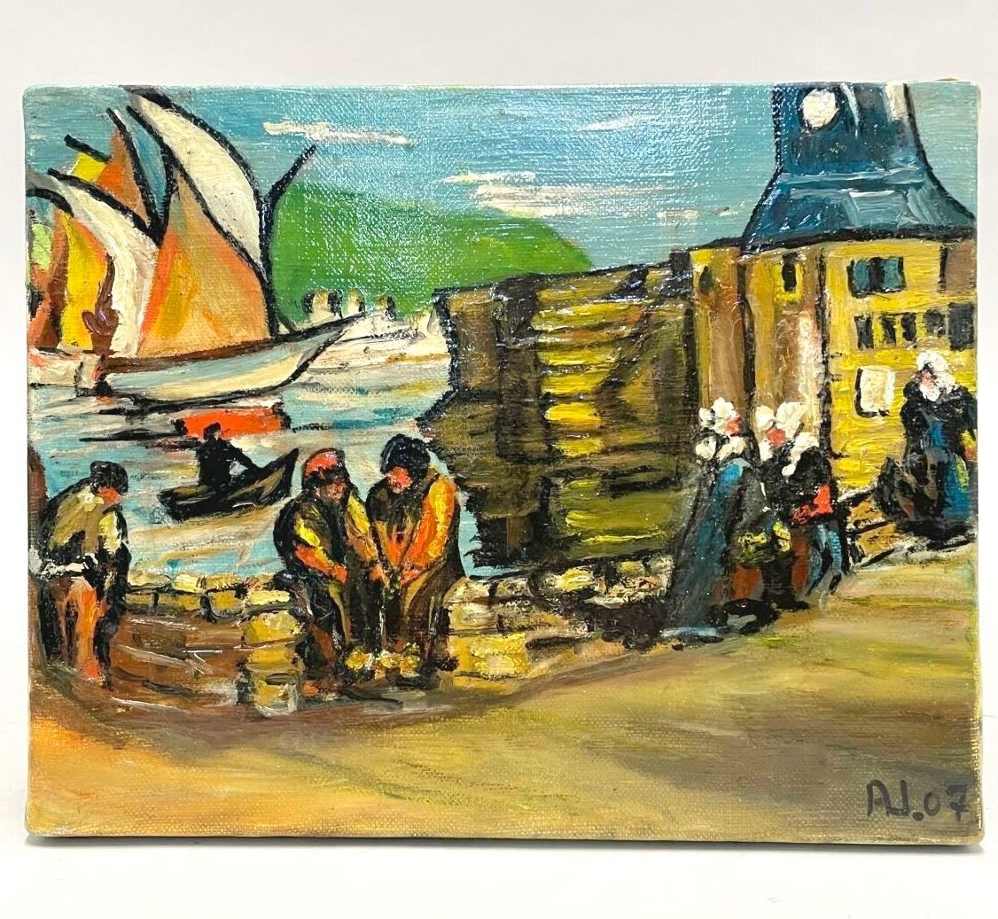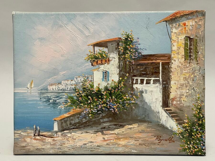 Vase with sunflowers; Coastal landscape; Port in Brittany; Coastal villa