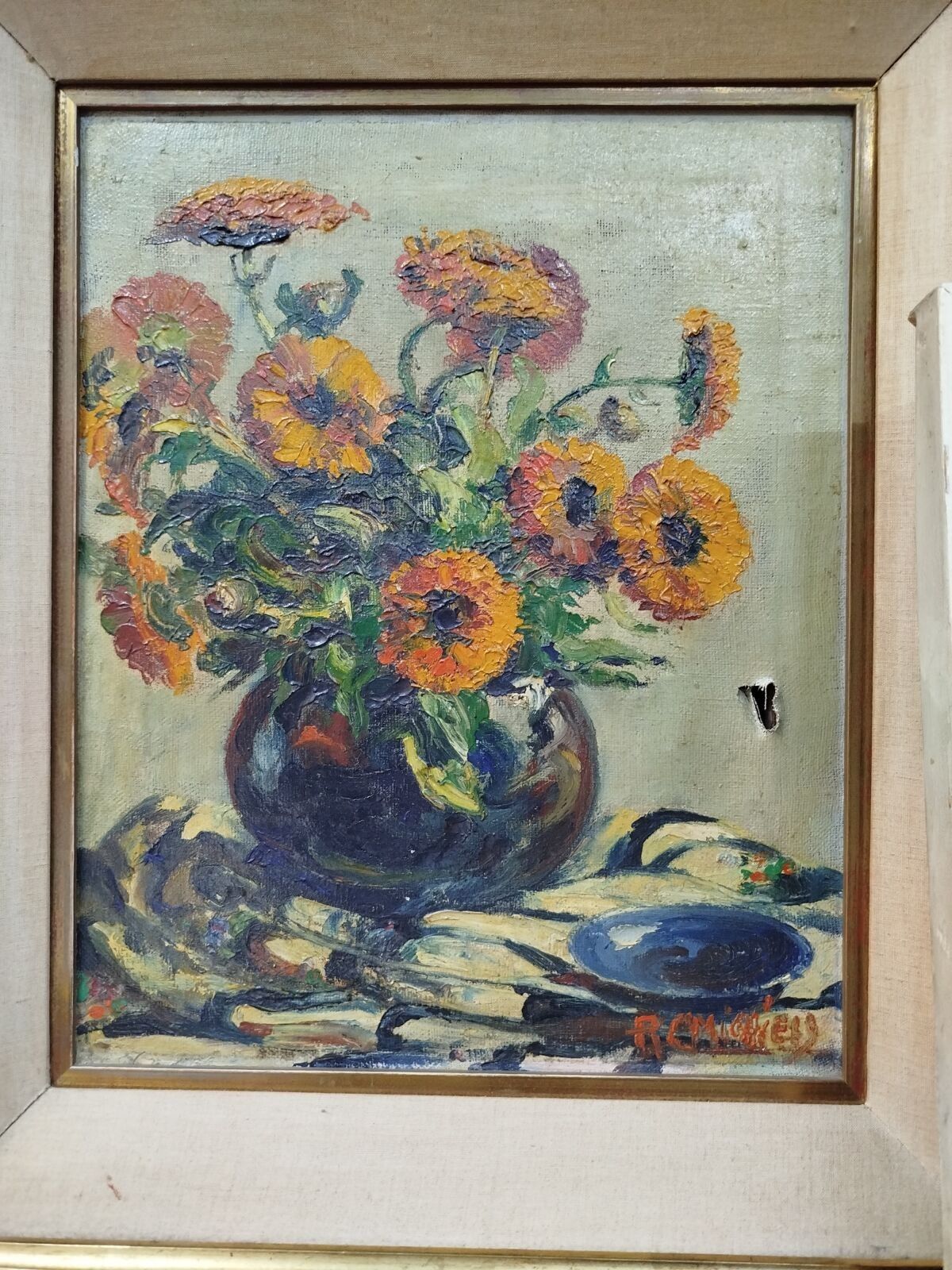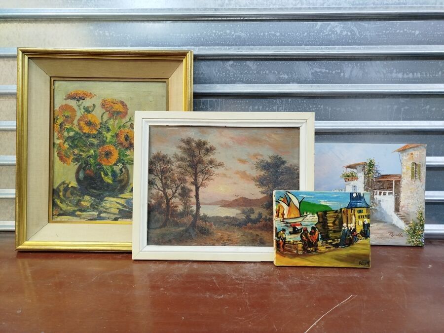 Reunion of four oils, one signed Reynolds, one AJ and one to be deciphered