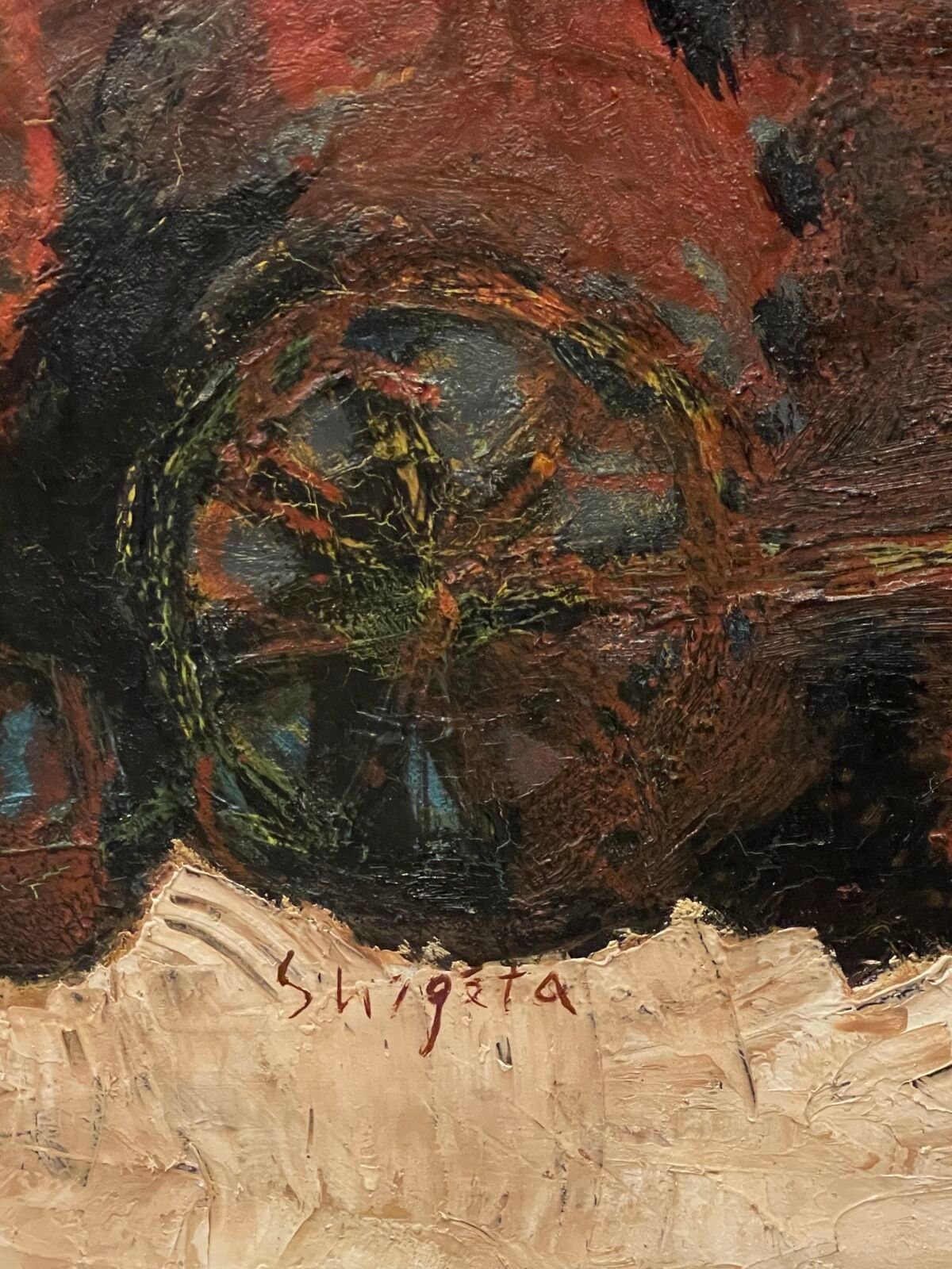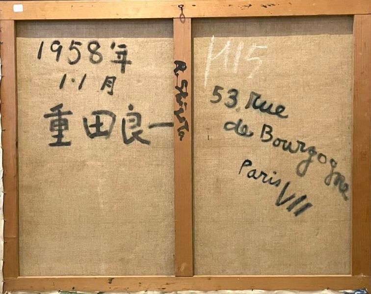 Oil on canvas, signed lower middle, signed and dated 1958 in French and Japanese on the back.