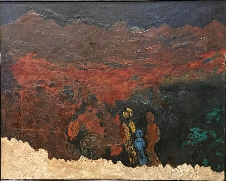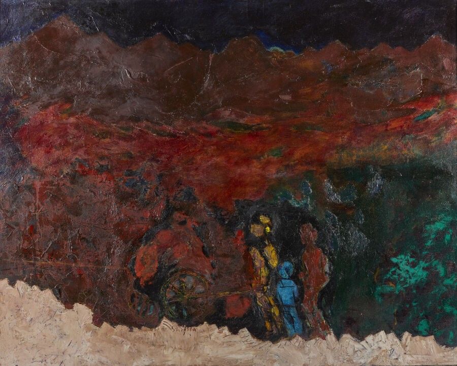 Ryoishi SHIGETA (1932-2016). People and cart in a mountain l…