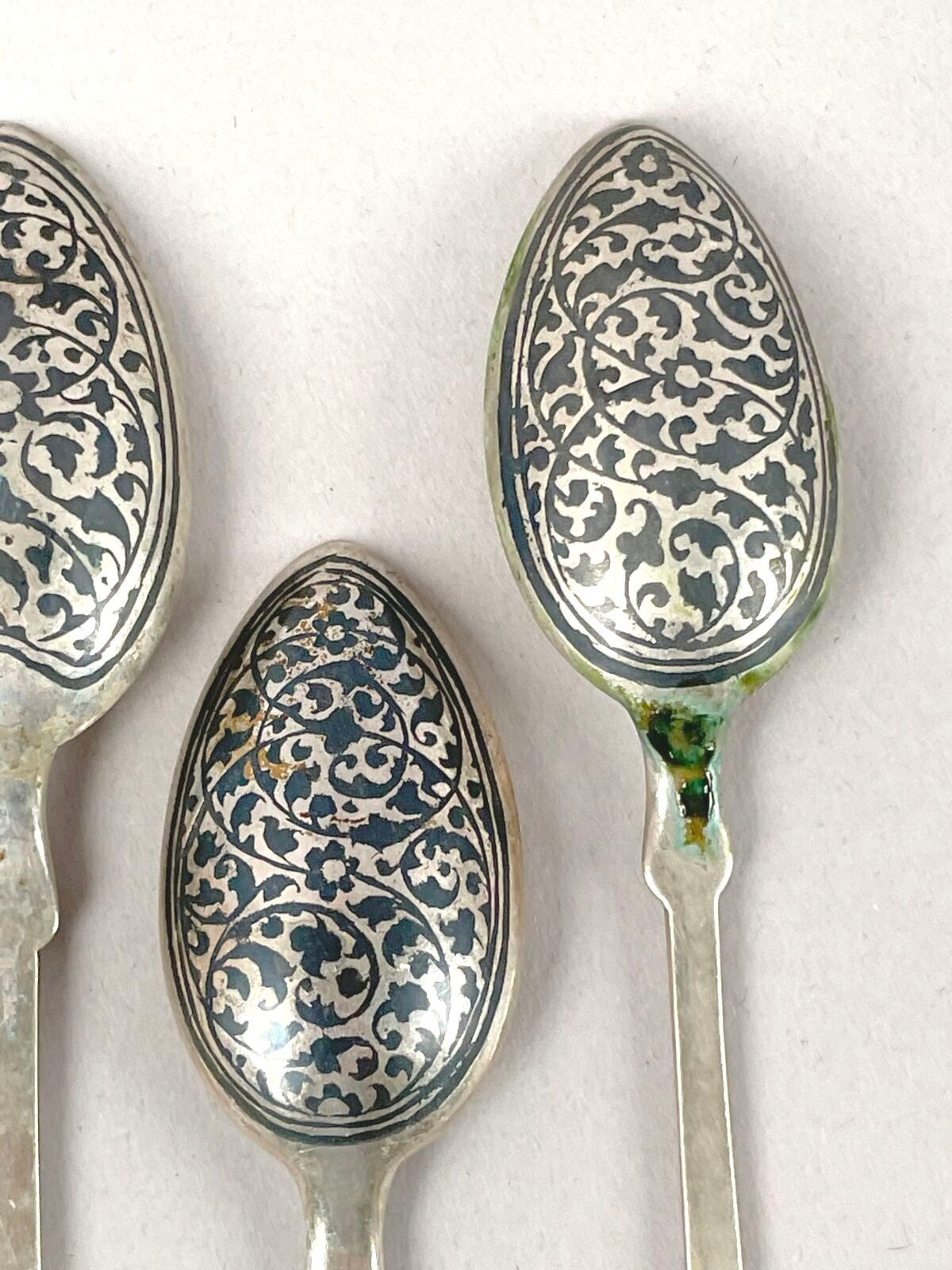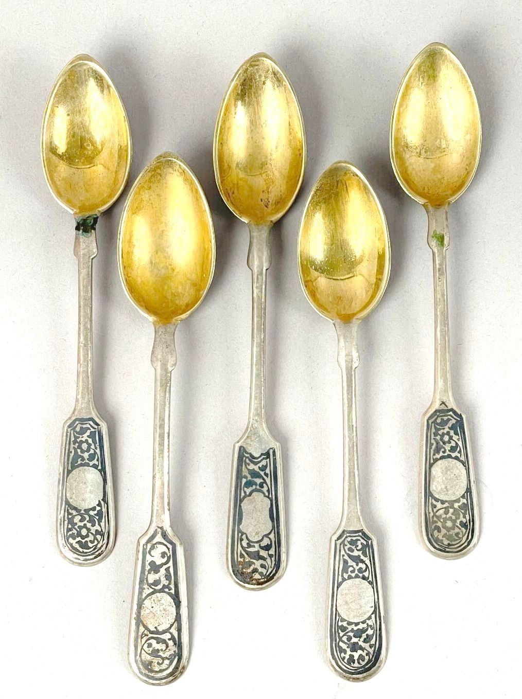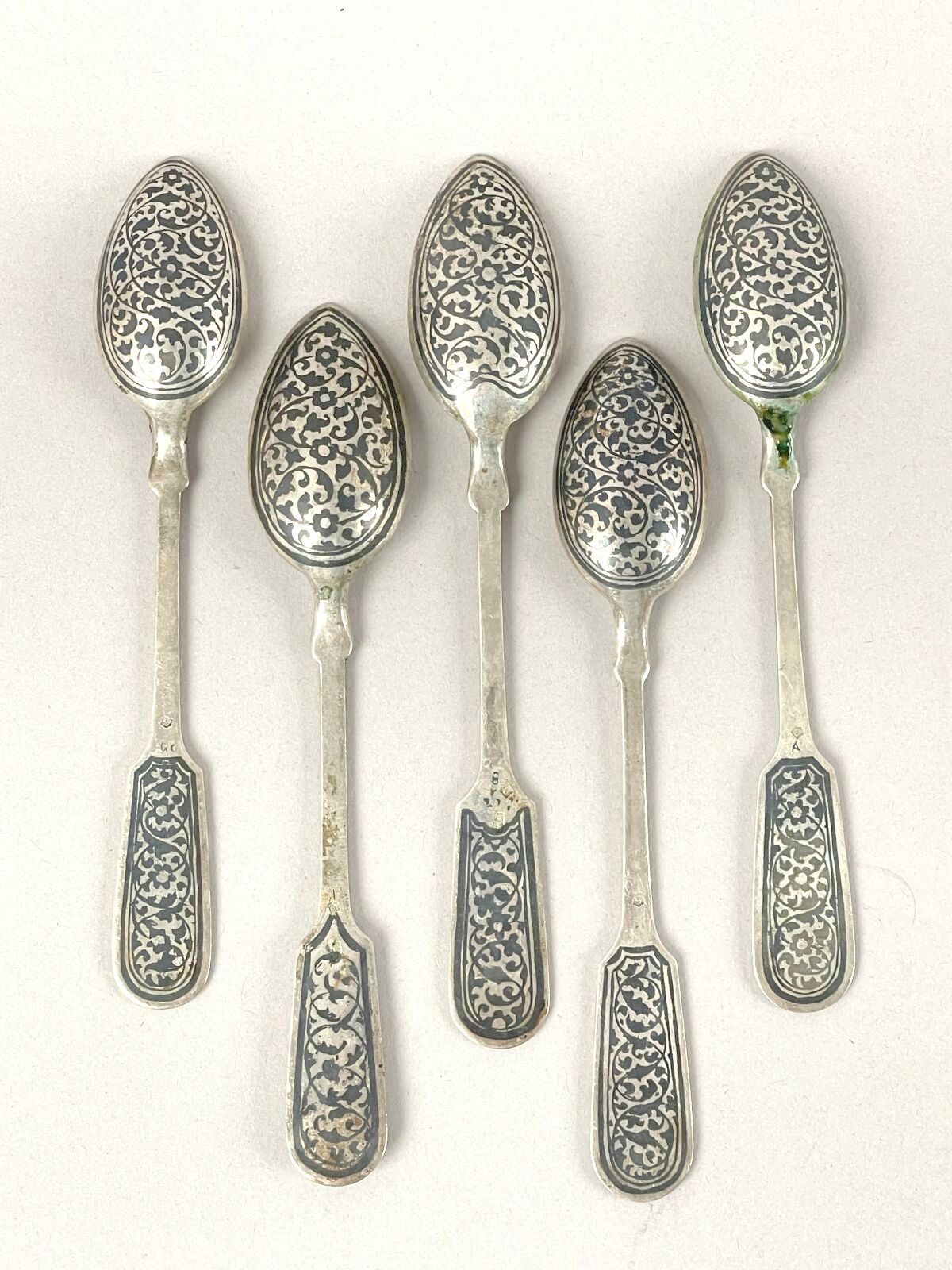 Five coffee spoons in silver 800 thousandths nielloed with f…