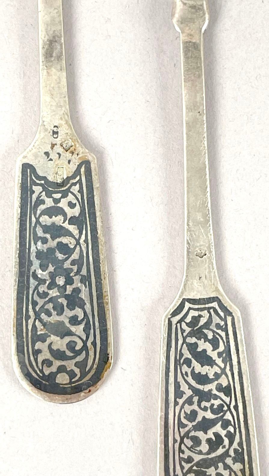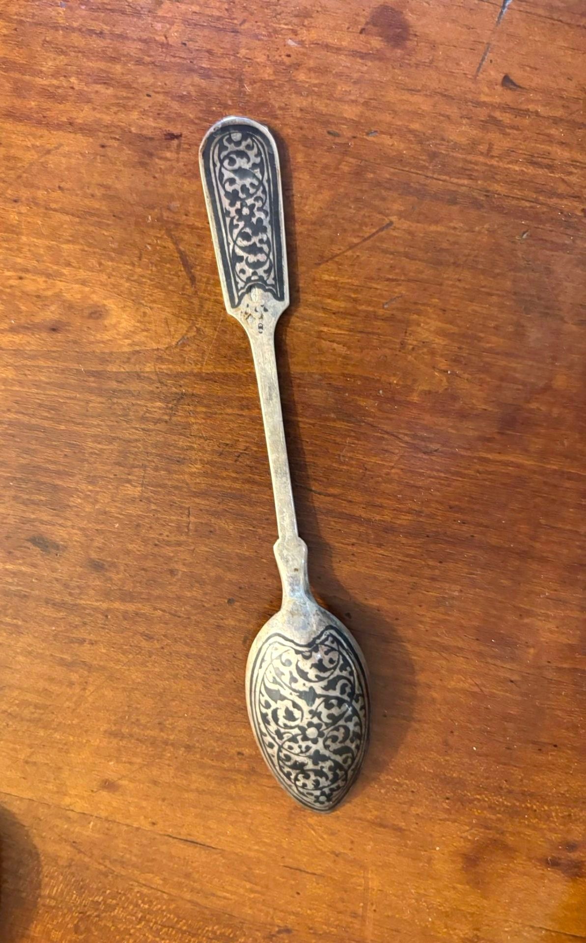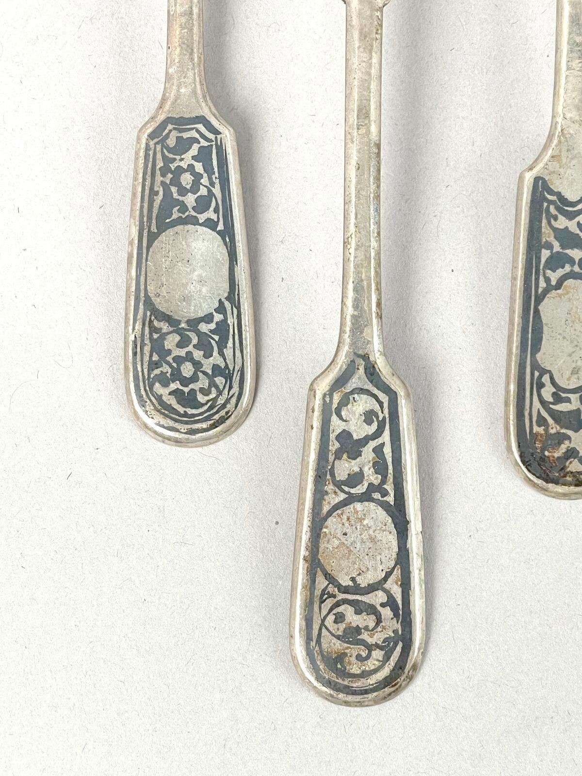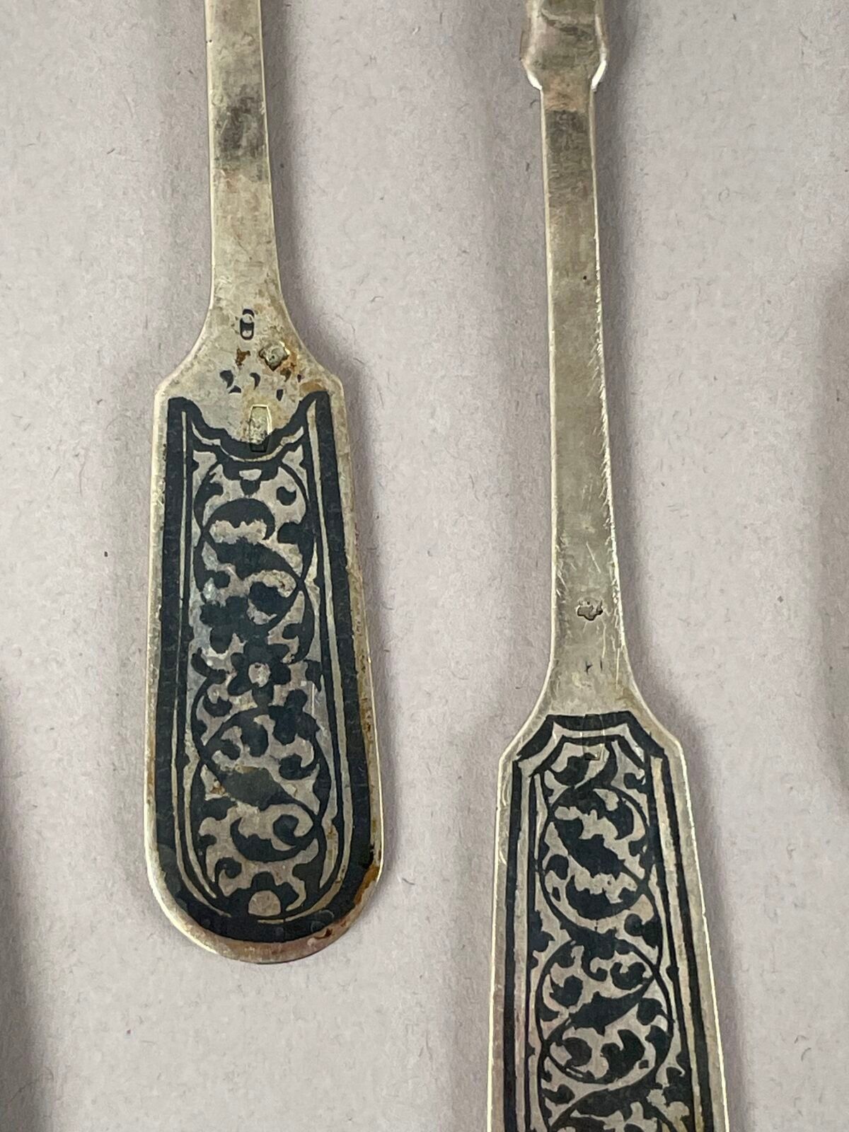 Five coffee spoons in silver 800 thousandths nielloed with f…