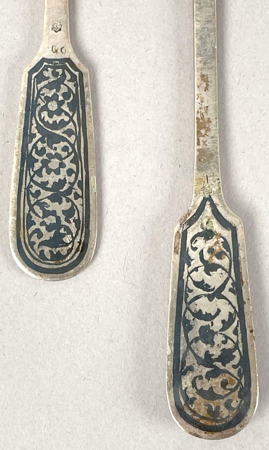 Five coffee spoons in silver 800 thousandths nielloed with floral scrolls.