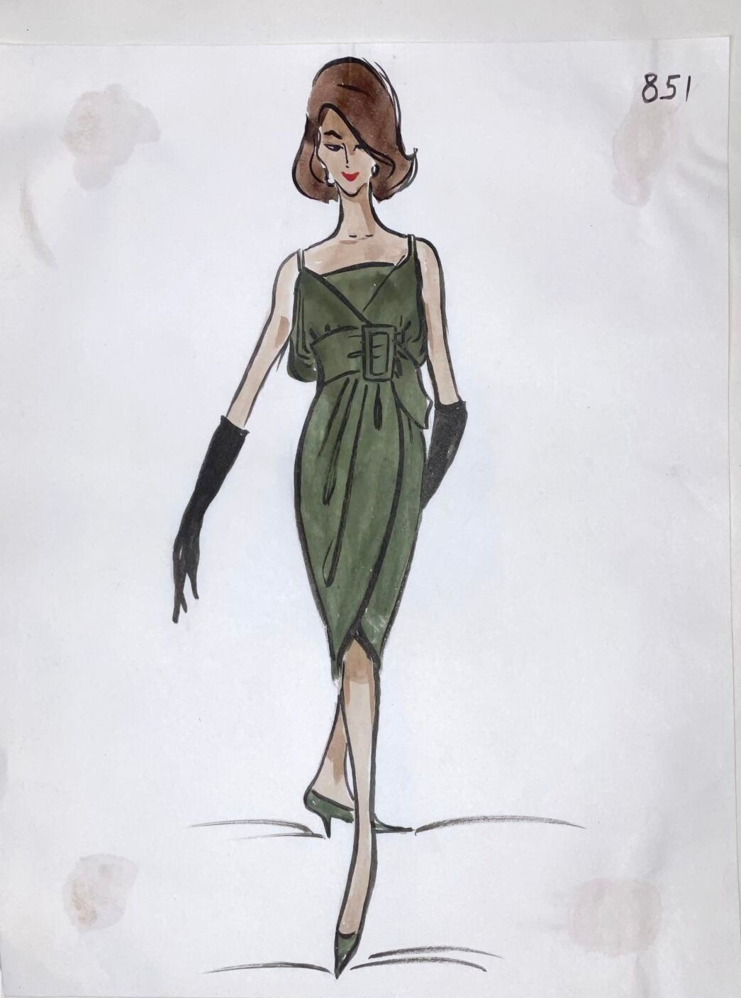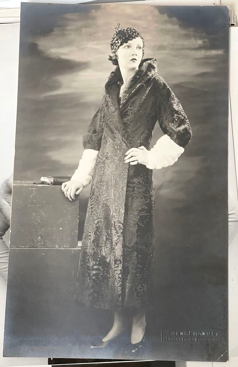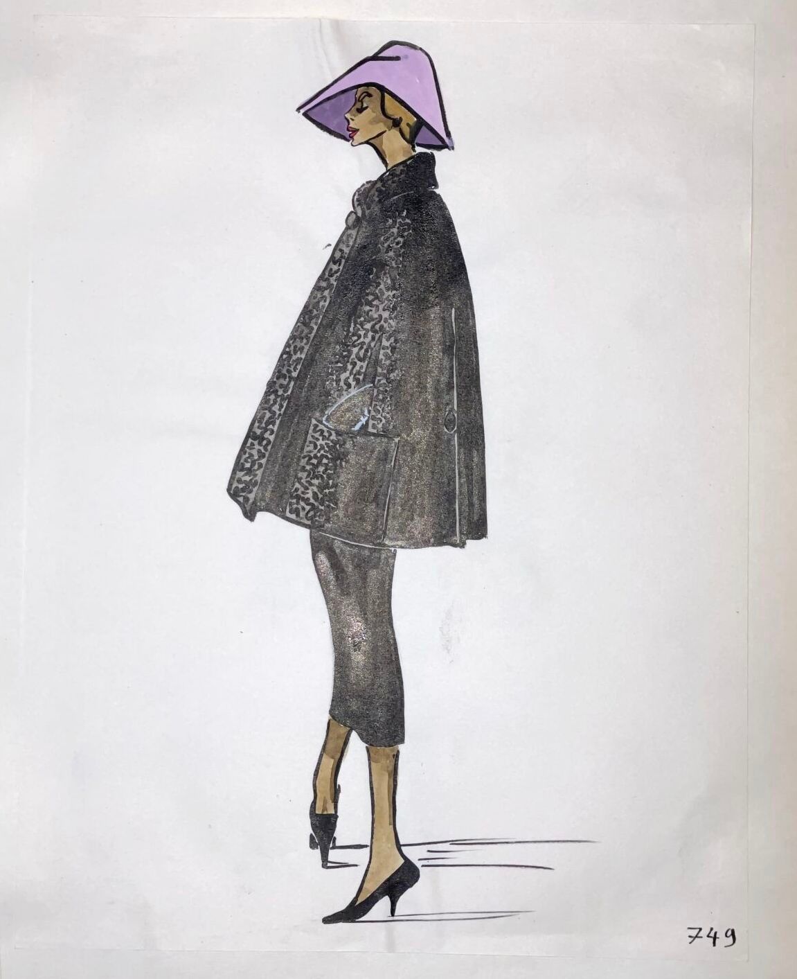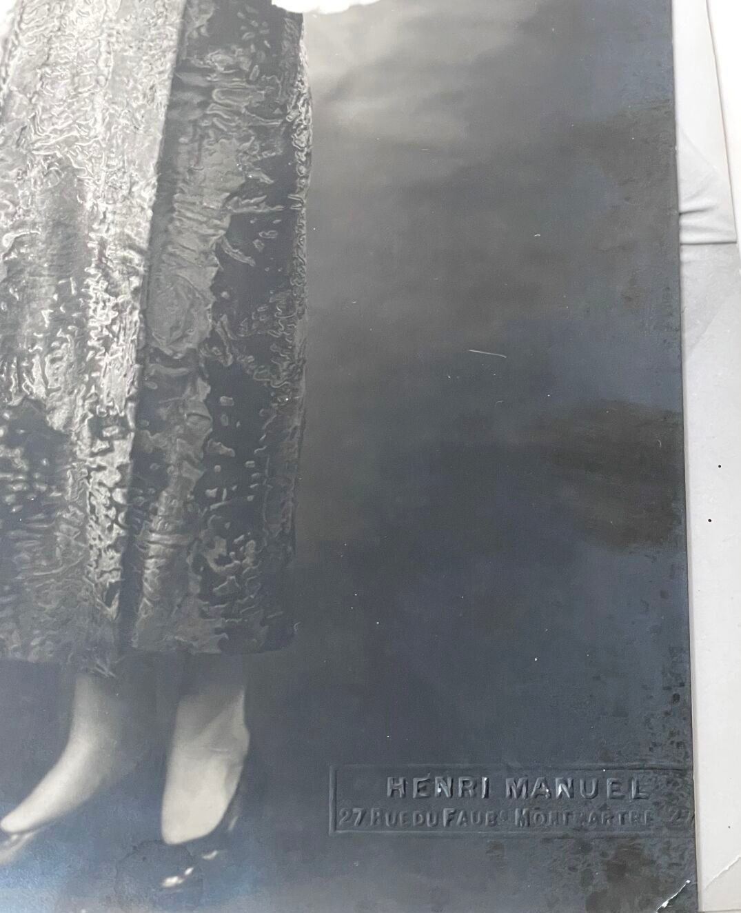 Fashion documentation set from the 1950s comprising 27 black and white photographs, with a beautiful range of furs, and 7 silhouettes of women enhanced in ink, mostly in daywear, some in mink or panther furs.