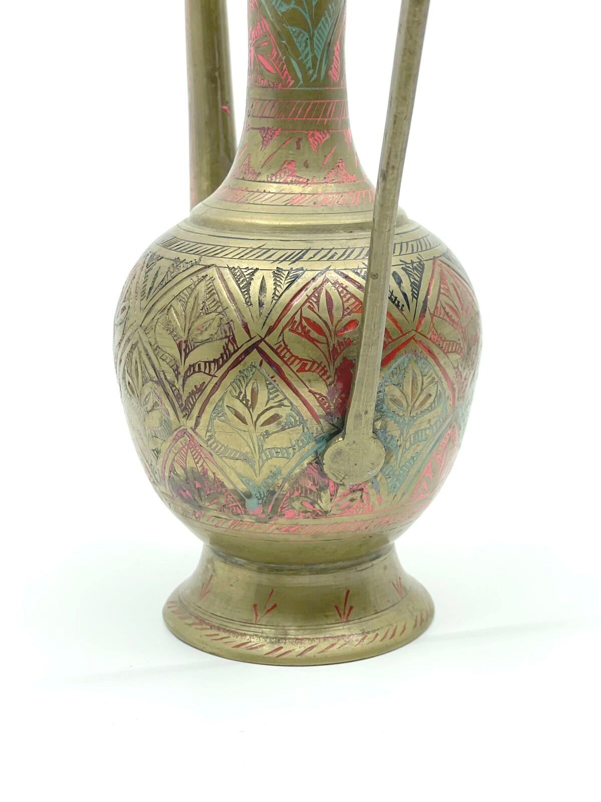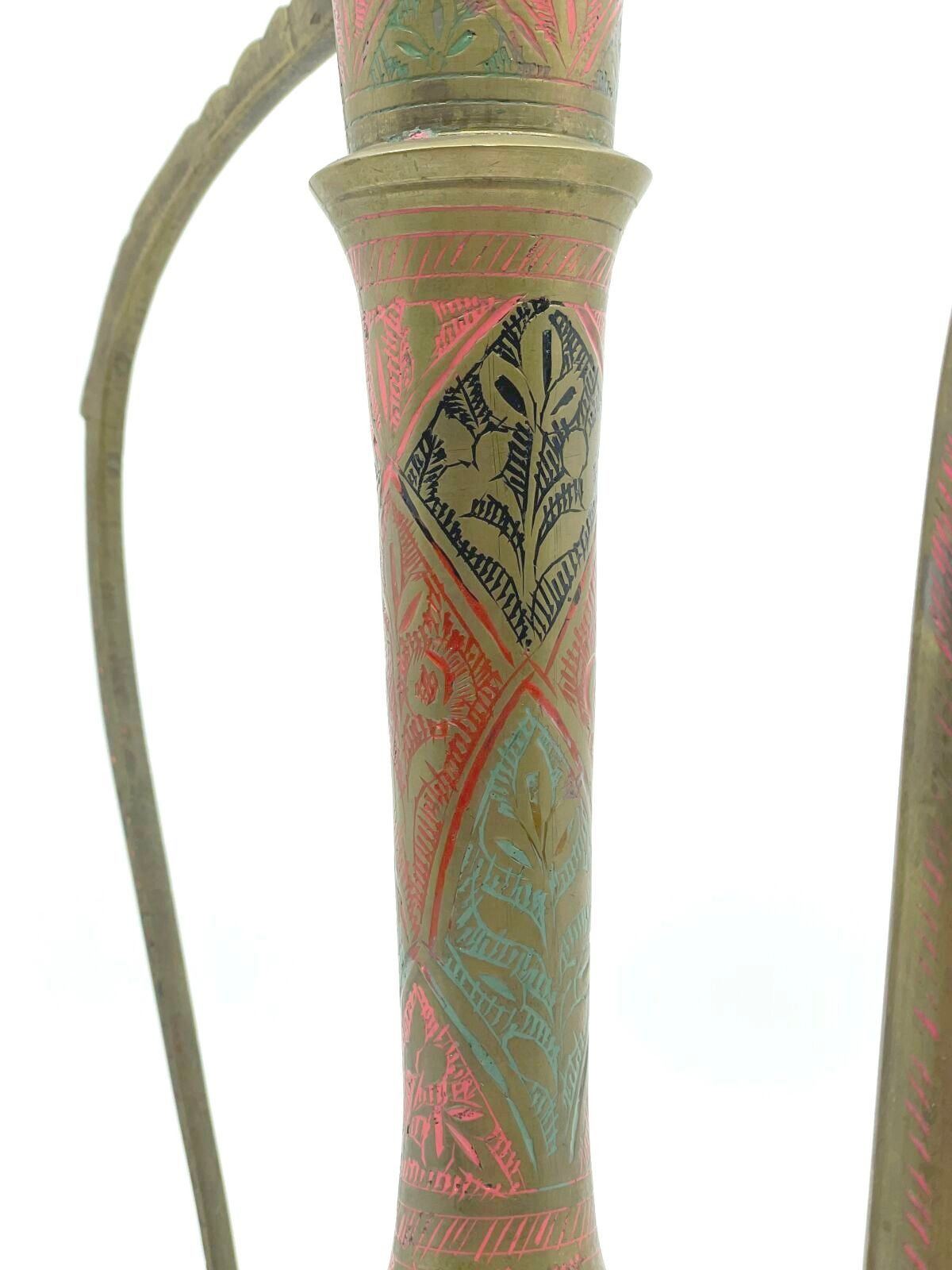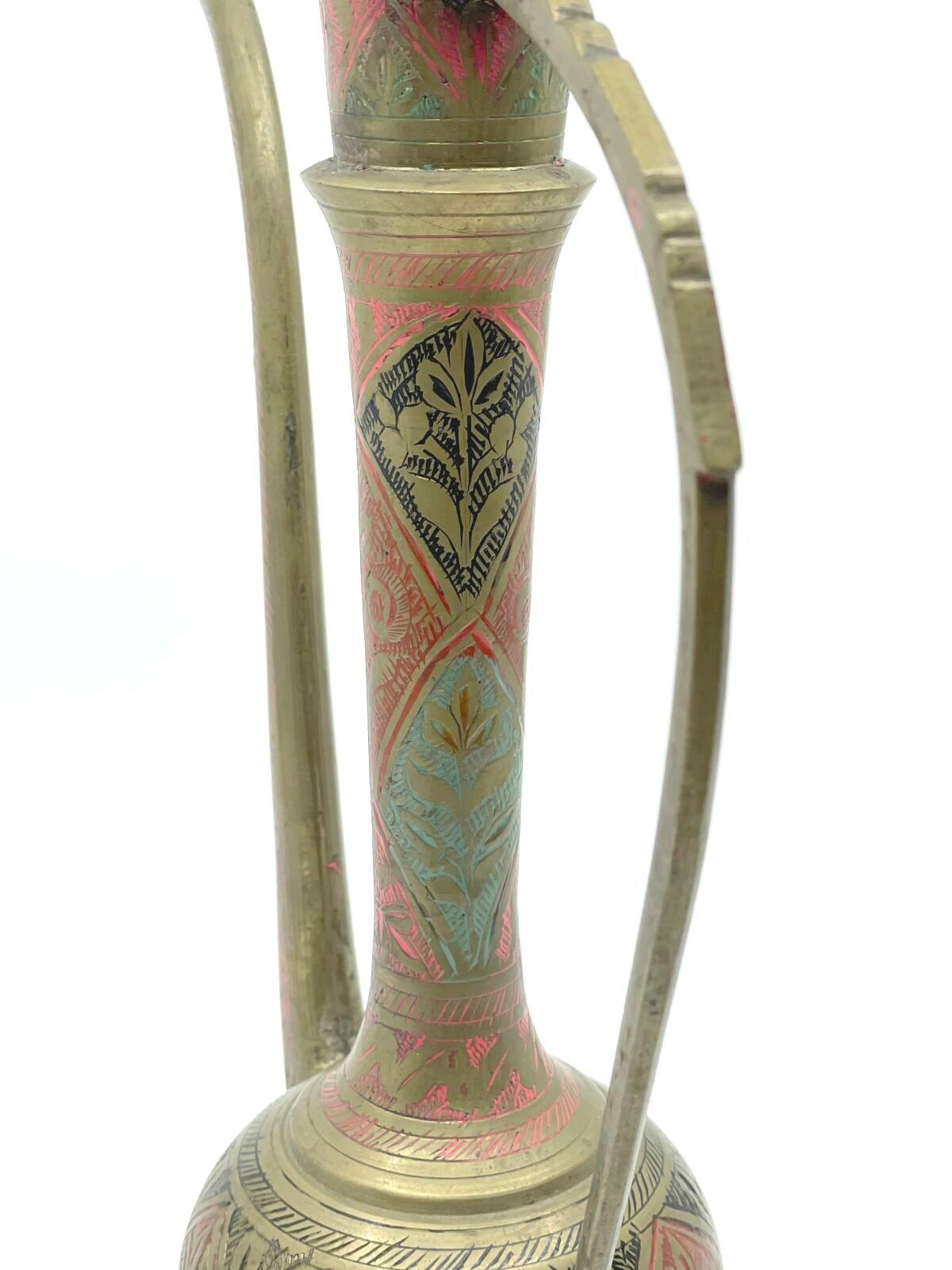 Polychrome brass ewer engraved with stylised plant motifs, h…