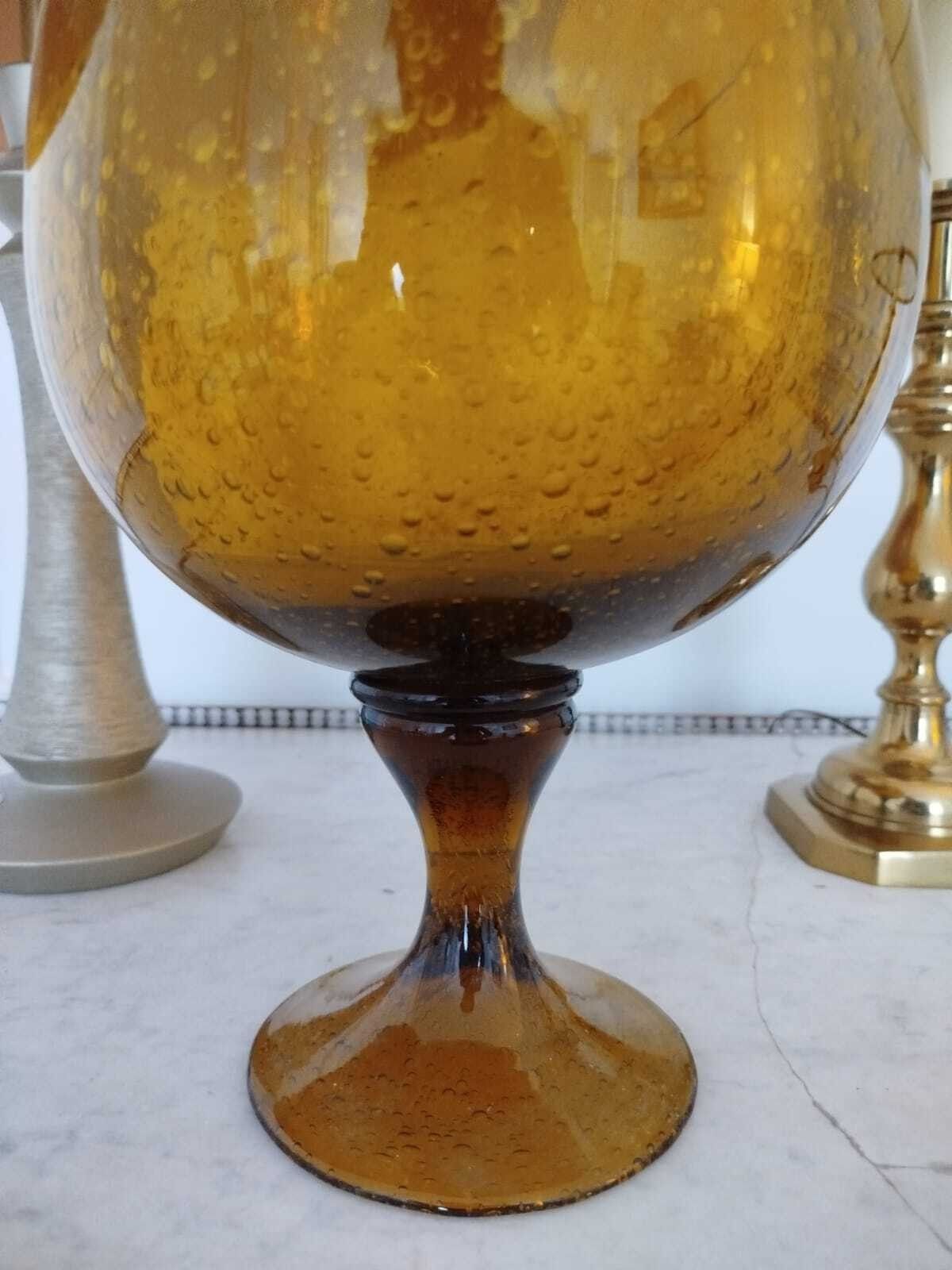 A collection of lamp bases, vases and bowls in brass, bubble glass and pressed-moulded glass...