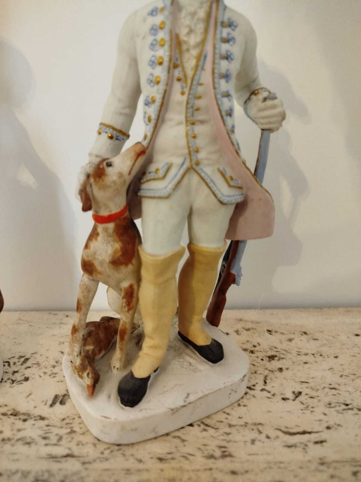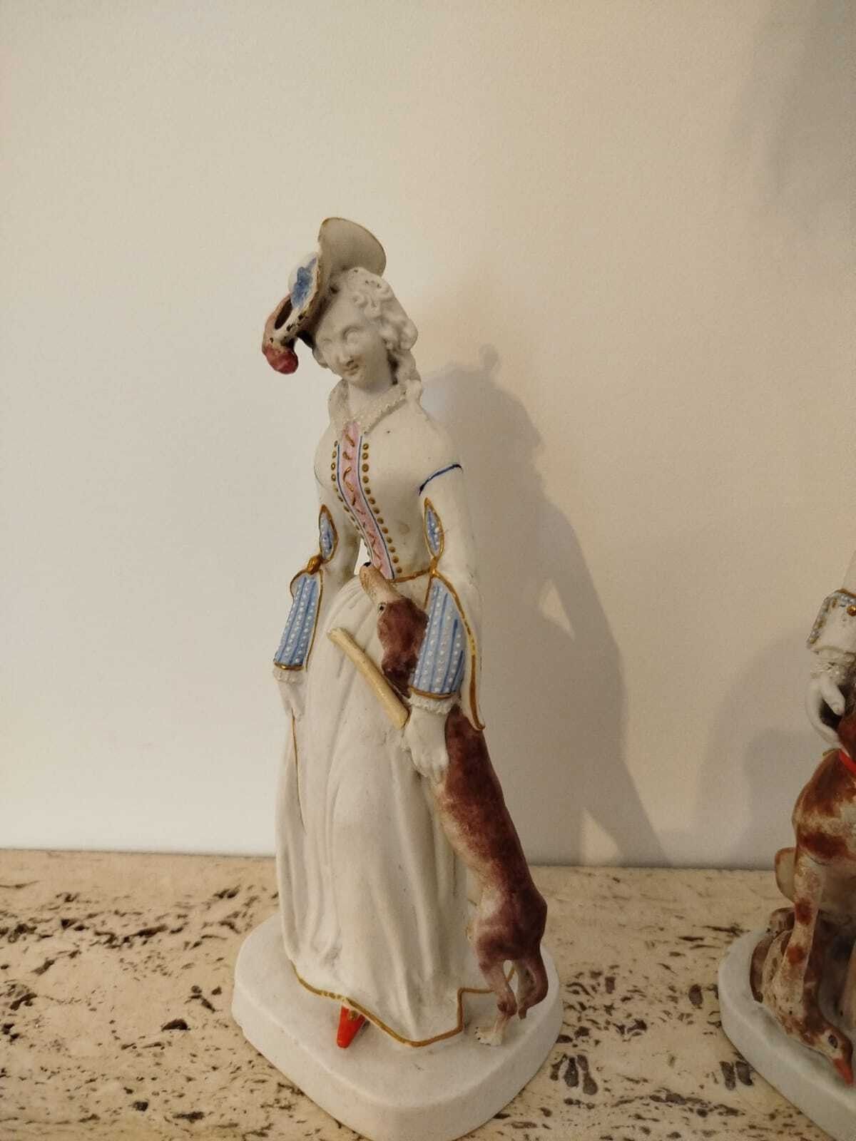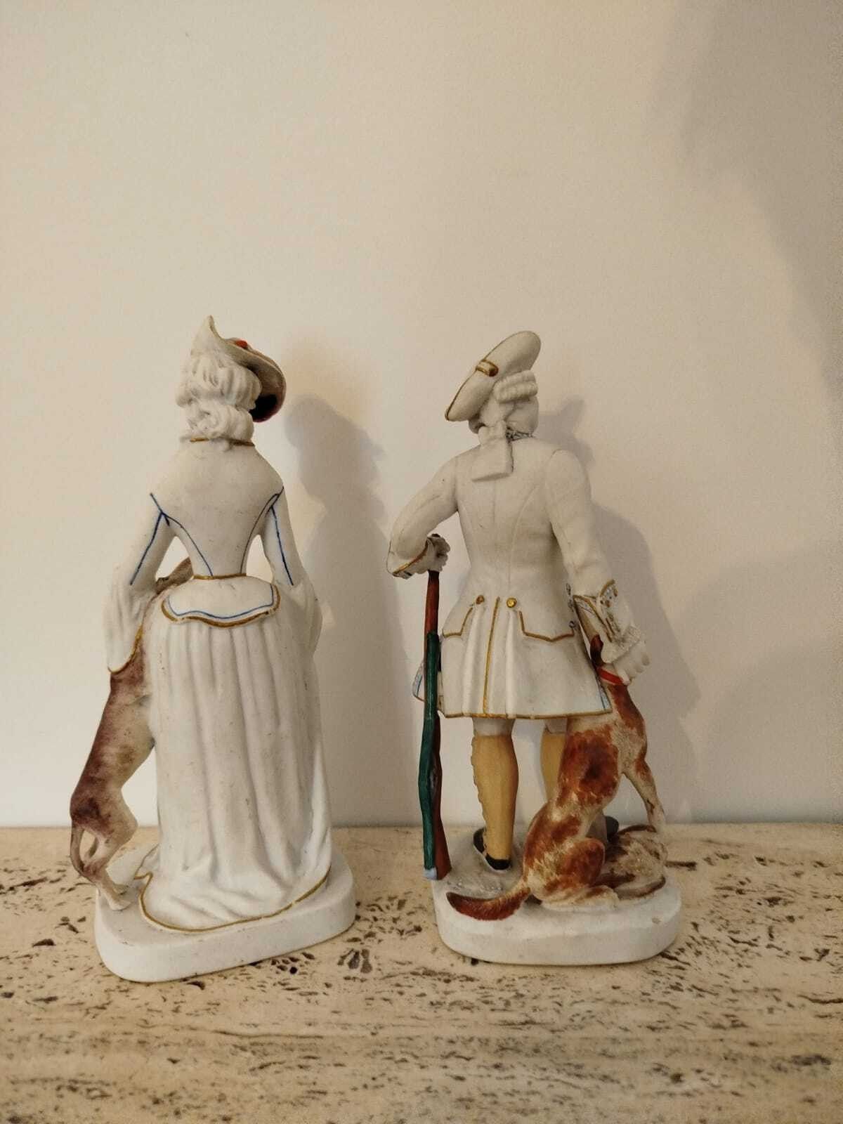 Couple with dogs Two groups in white and polychrome biscuit,…
