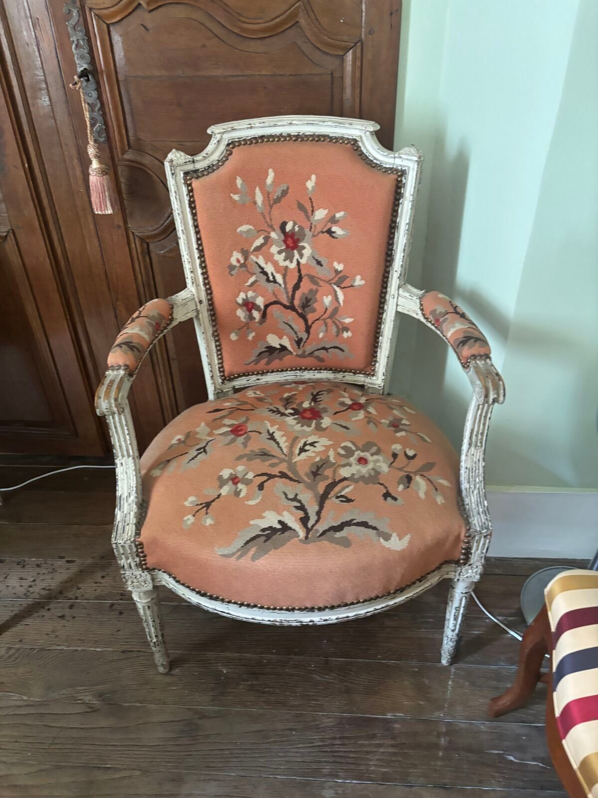 Pair of cabriolet armchairs in lacquered wood, the back in t…