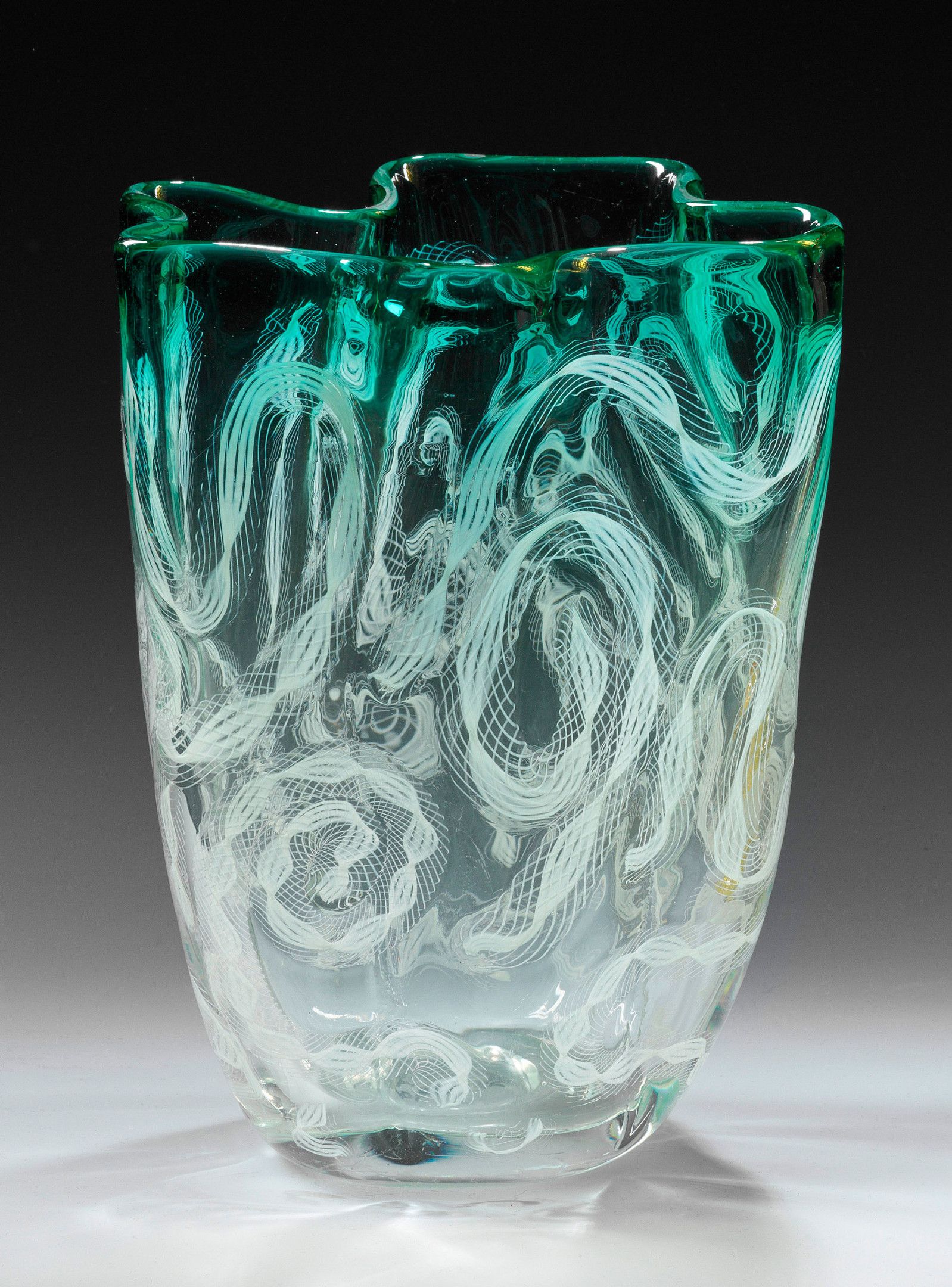 "Zanfirico-Schnecken"-Vase In farblosem, ins grünliche verla…