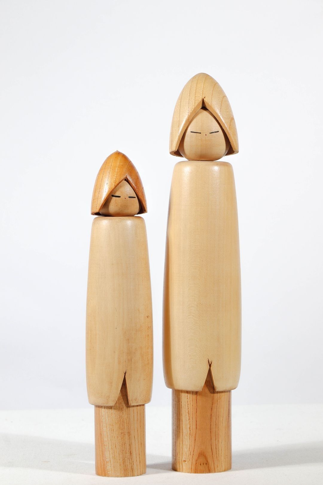 Two polychrome wooden Kokeshi Sosaku dolls by Shozanshido (1932-1995)