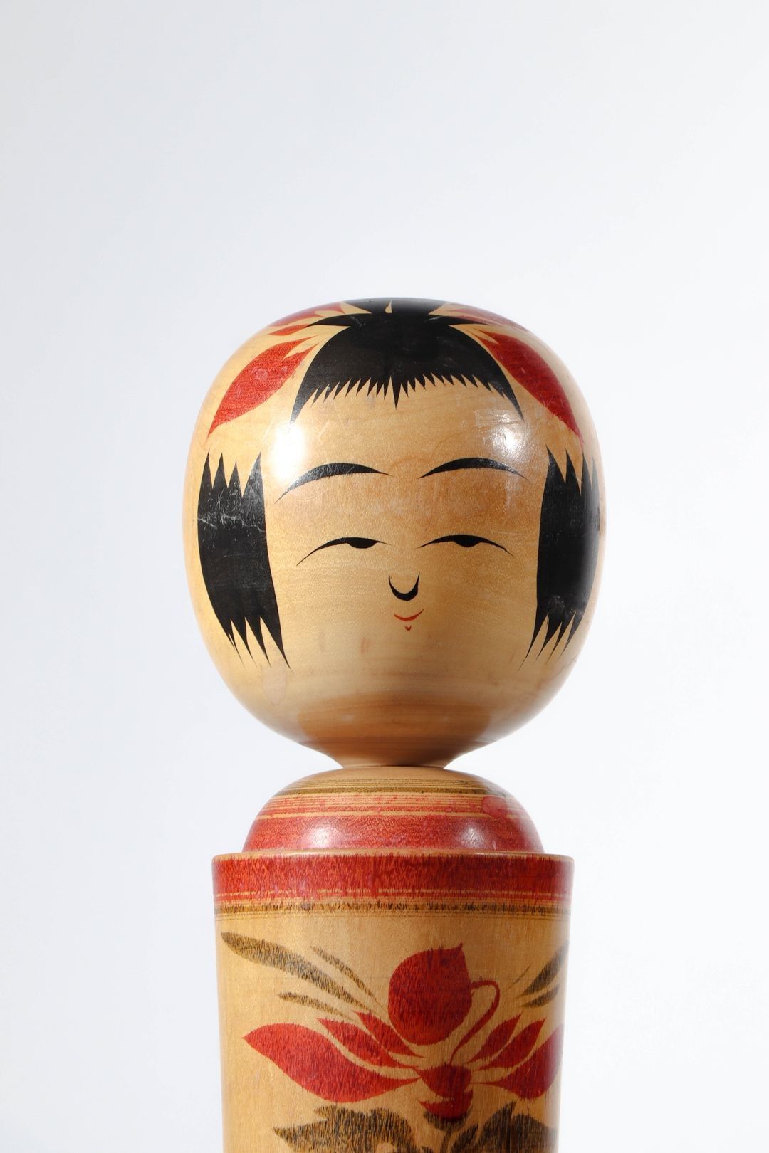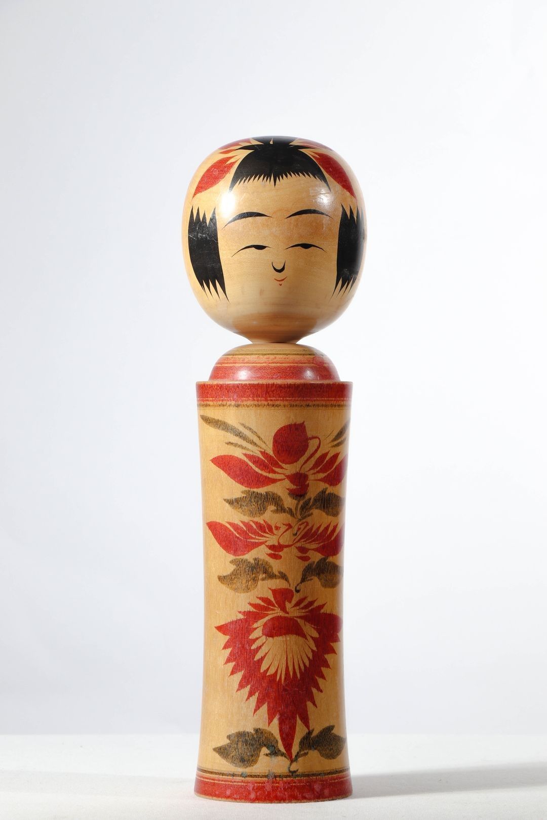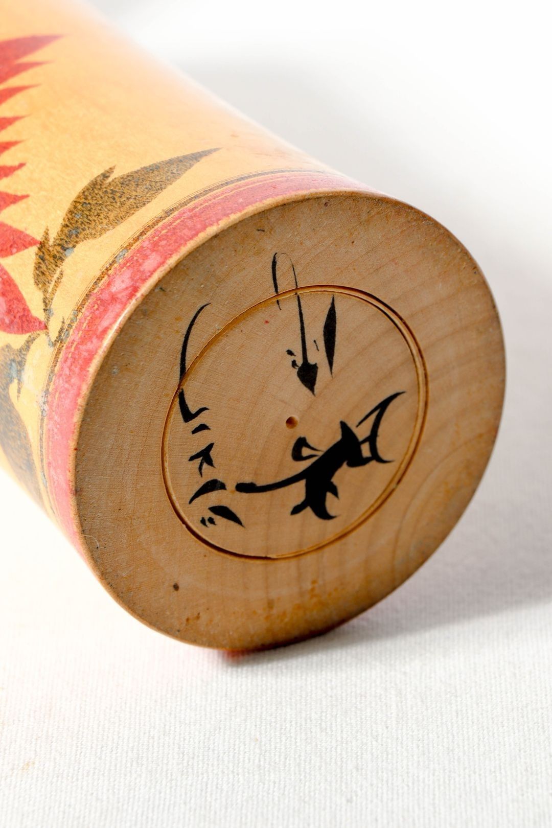 Naruko polychrome wooden Kokeshi doll with squeaky head