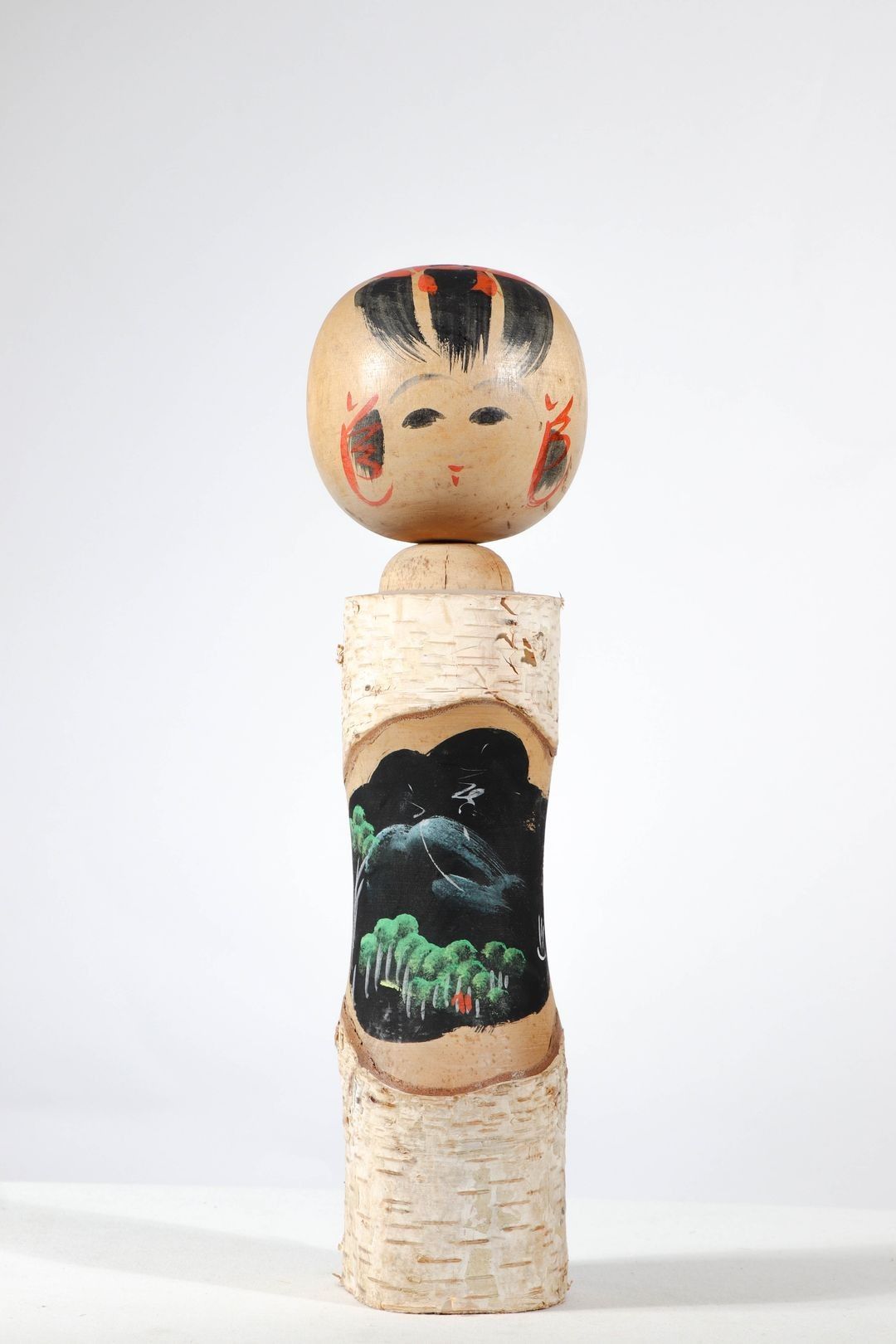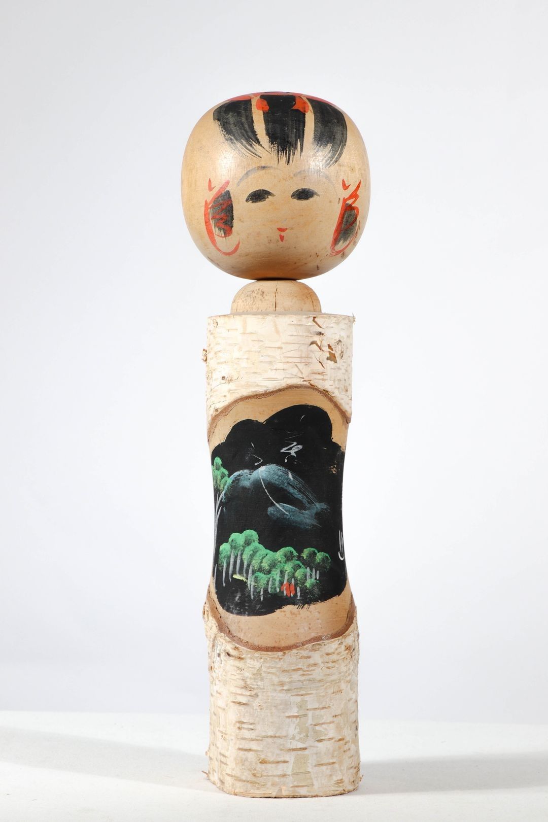 Polychrome birch wood Kokeshi doll by Yushi Yoki.