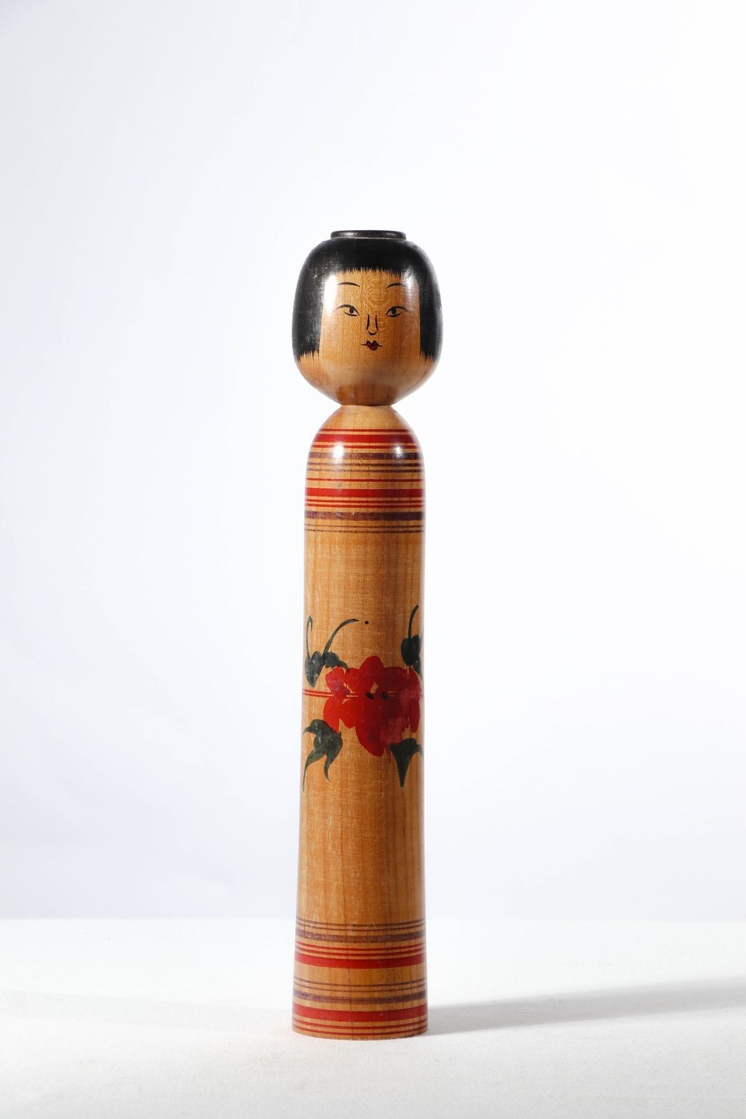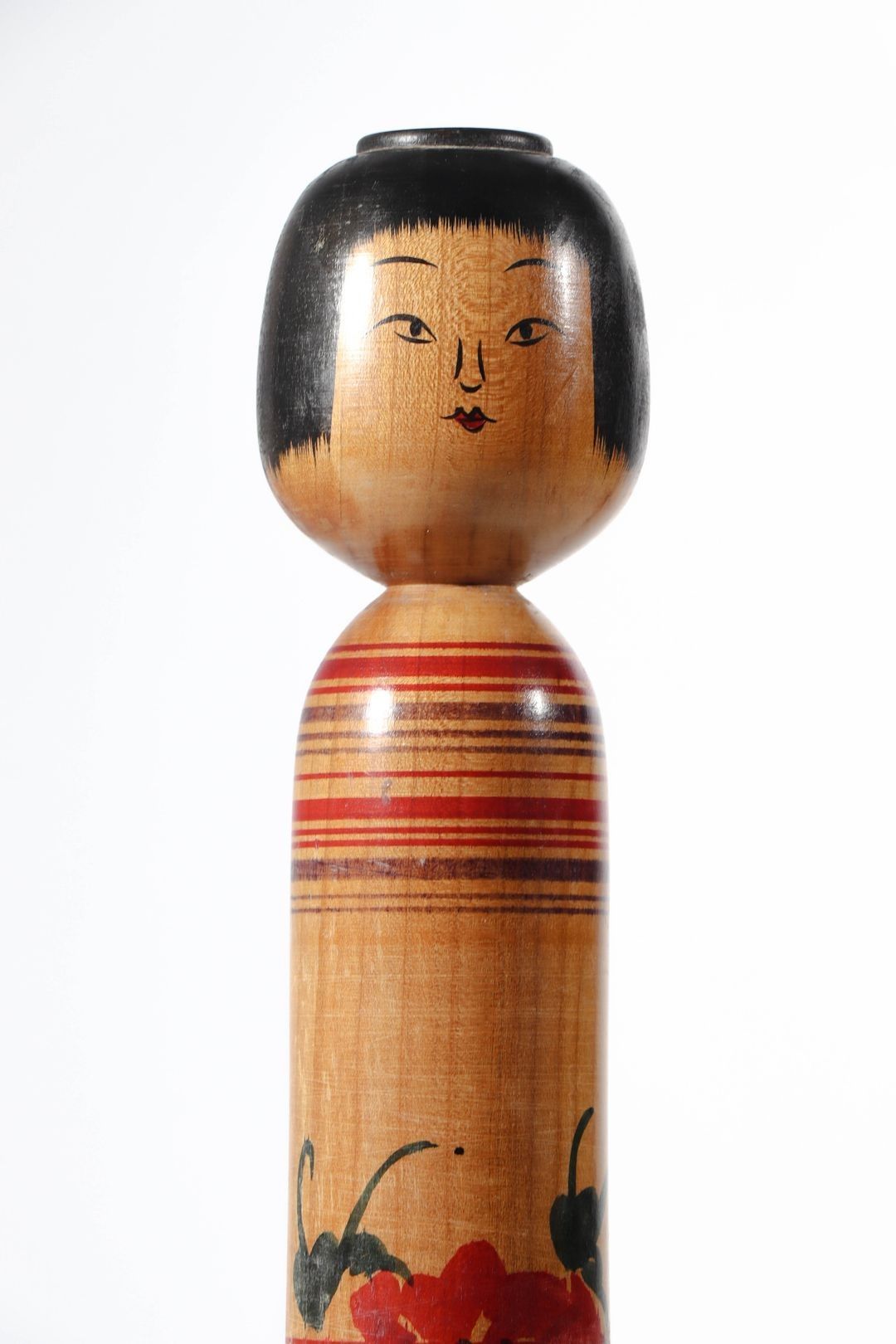 Traditional Tsugaru type Kokeshi doll in polychrome wood by Okuse Cardinal