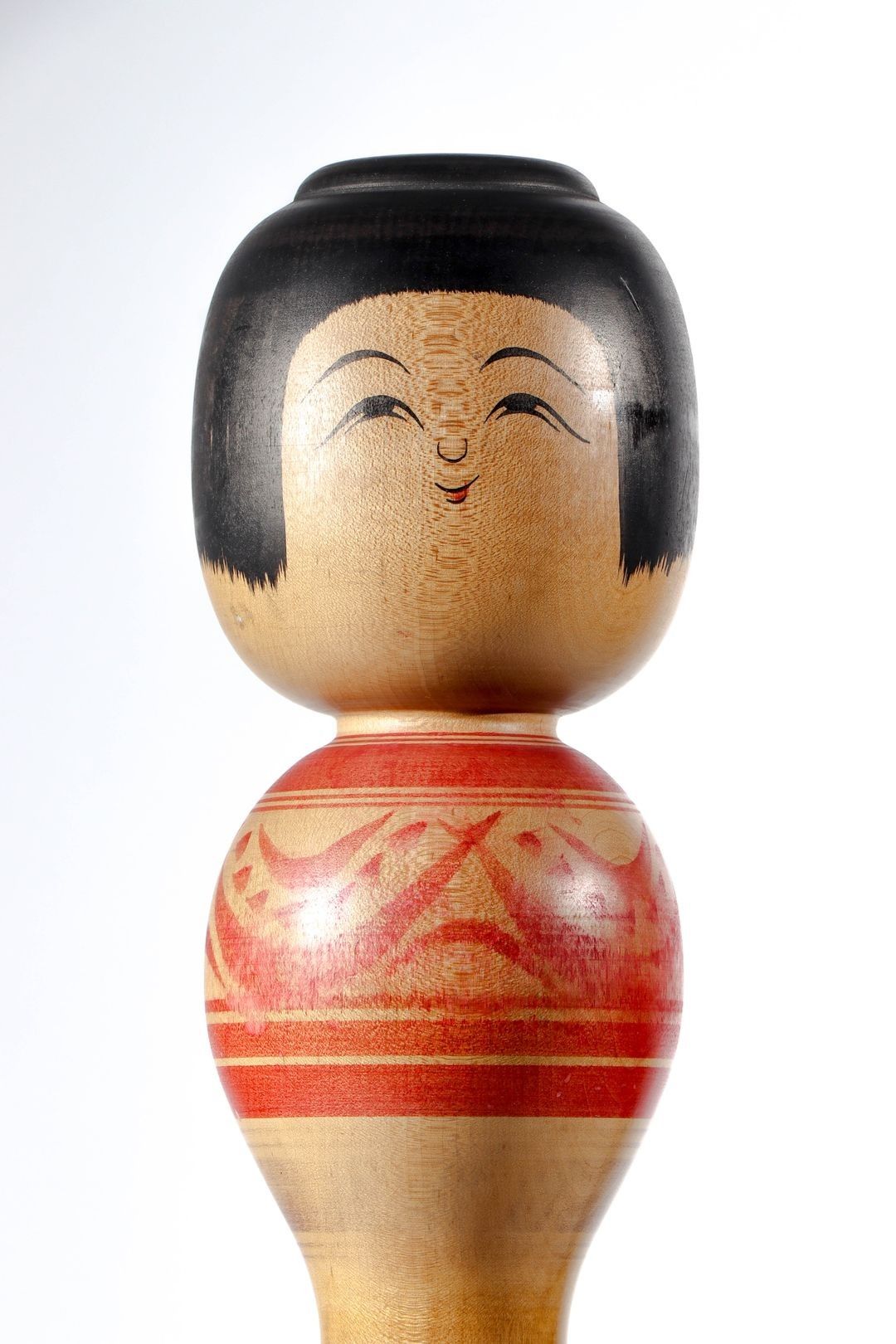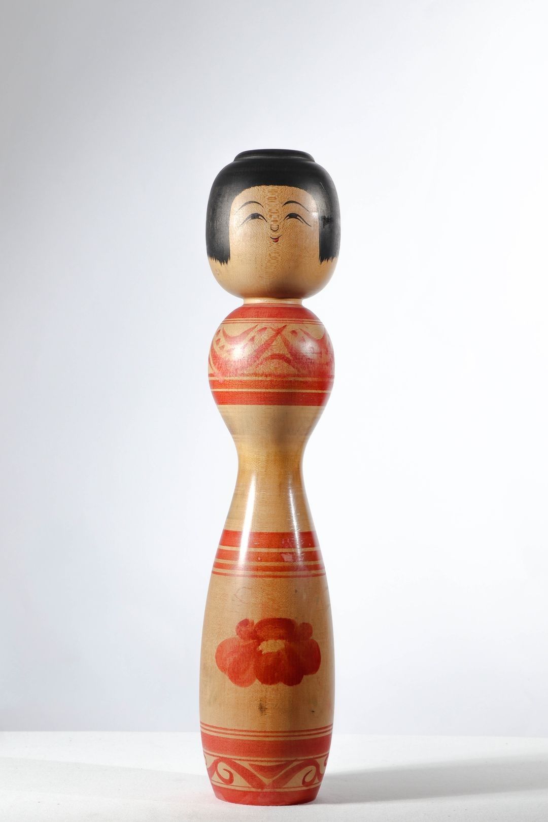 Large polychrome wooden Kokeshi Tsugaru doll by Kojima Toshi…