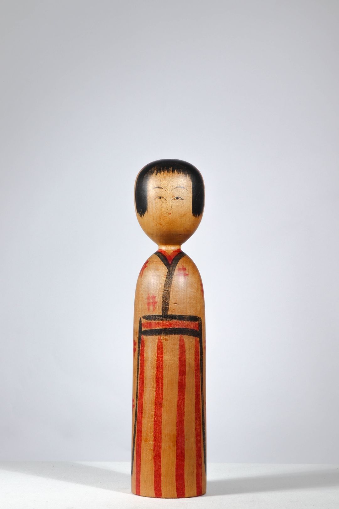 Vintage Kokeshi Kijiyama doll in polychrome wood by the Ogur…