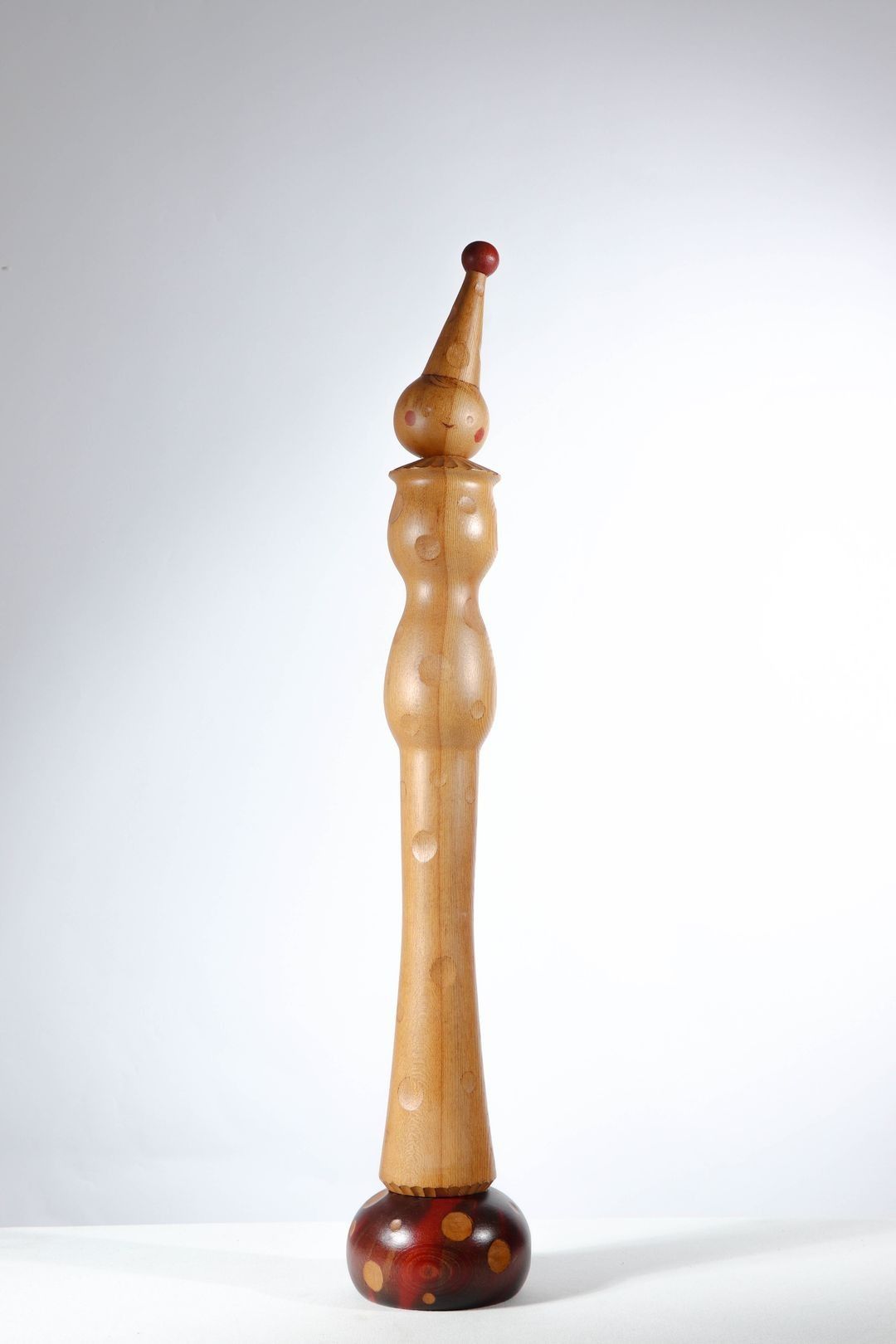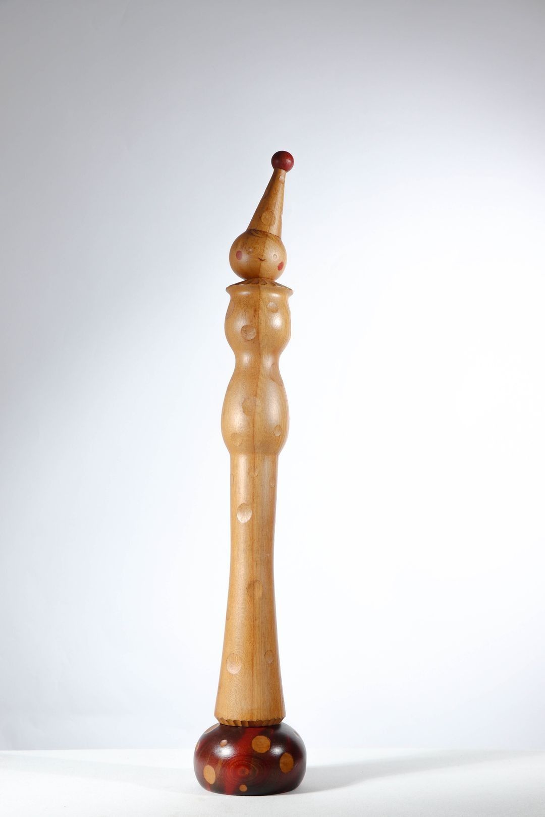 Large vintage Kokeshi doll "Clown" in polychrome wood by Sansaku Sekiguchi (1925-2018) Unique piece in the world. Circa 1970 H. 68 cm - This lot is available anywhere in mainland France from €15.72