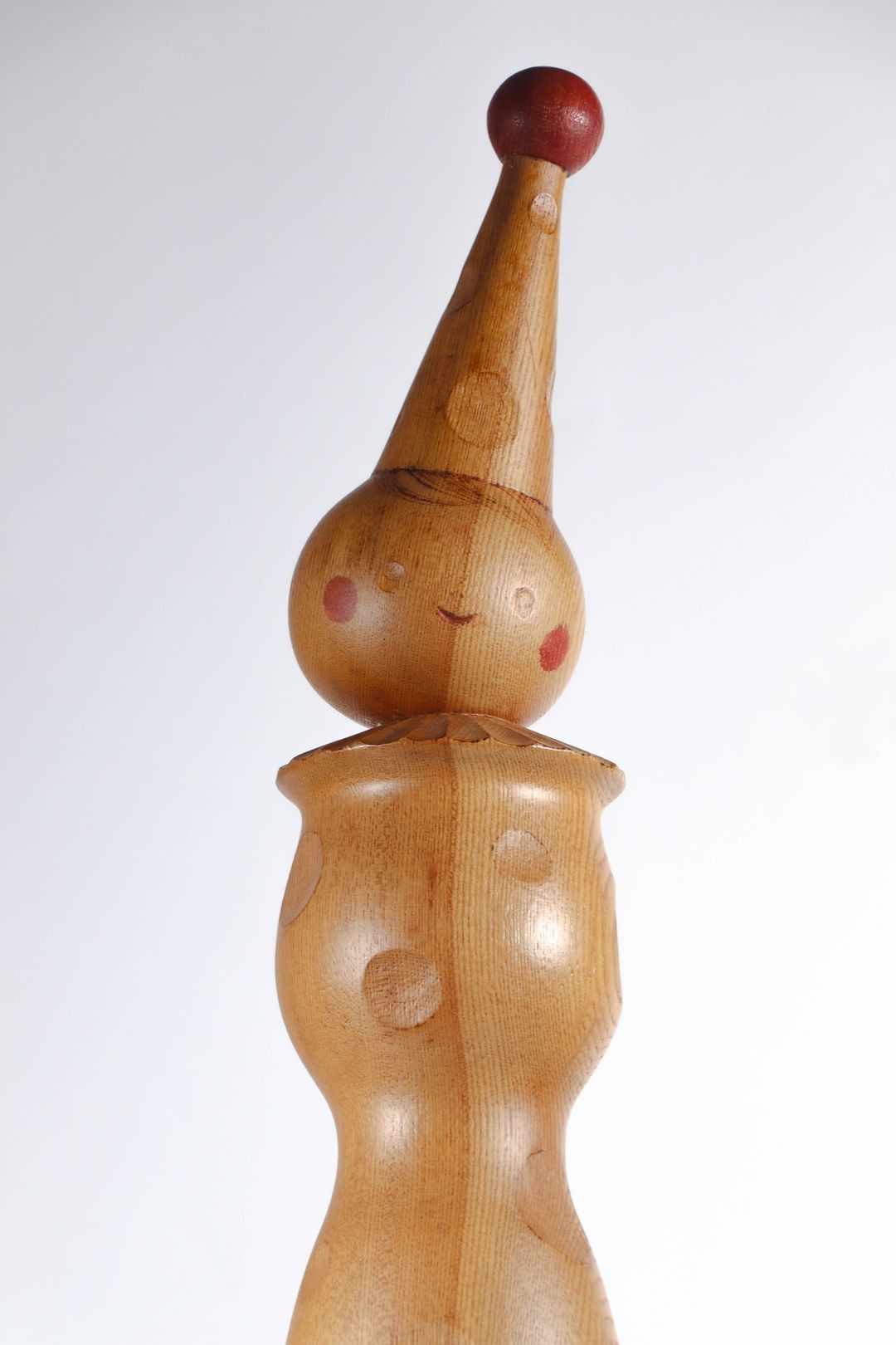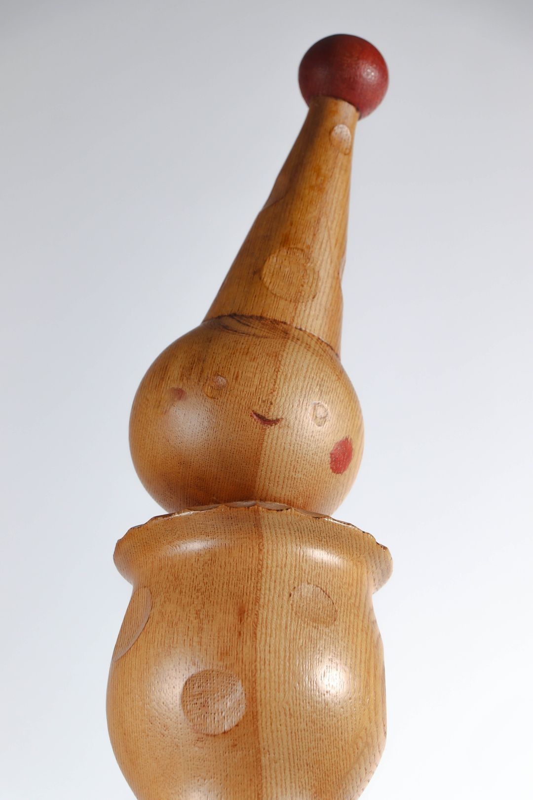 Large vintage Kokeshi doll "Clown" in polychrome wood by San…