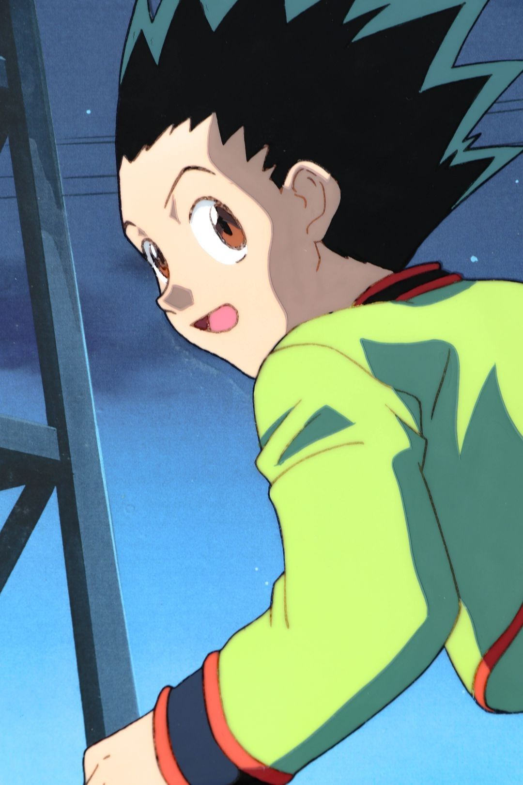 Ink and gouache cellulo depicting Gon, the main character in the series, running towards his lens.