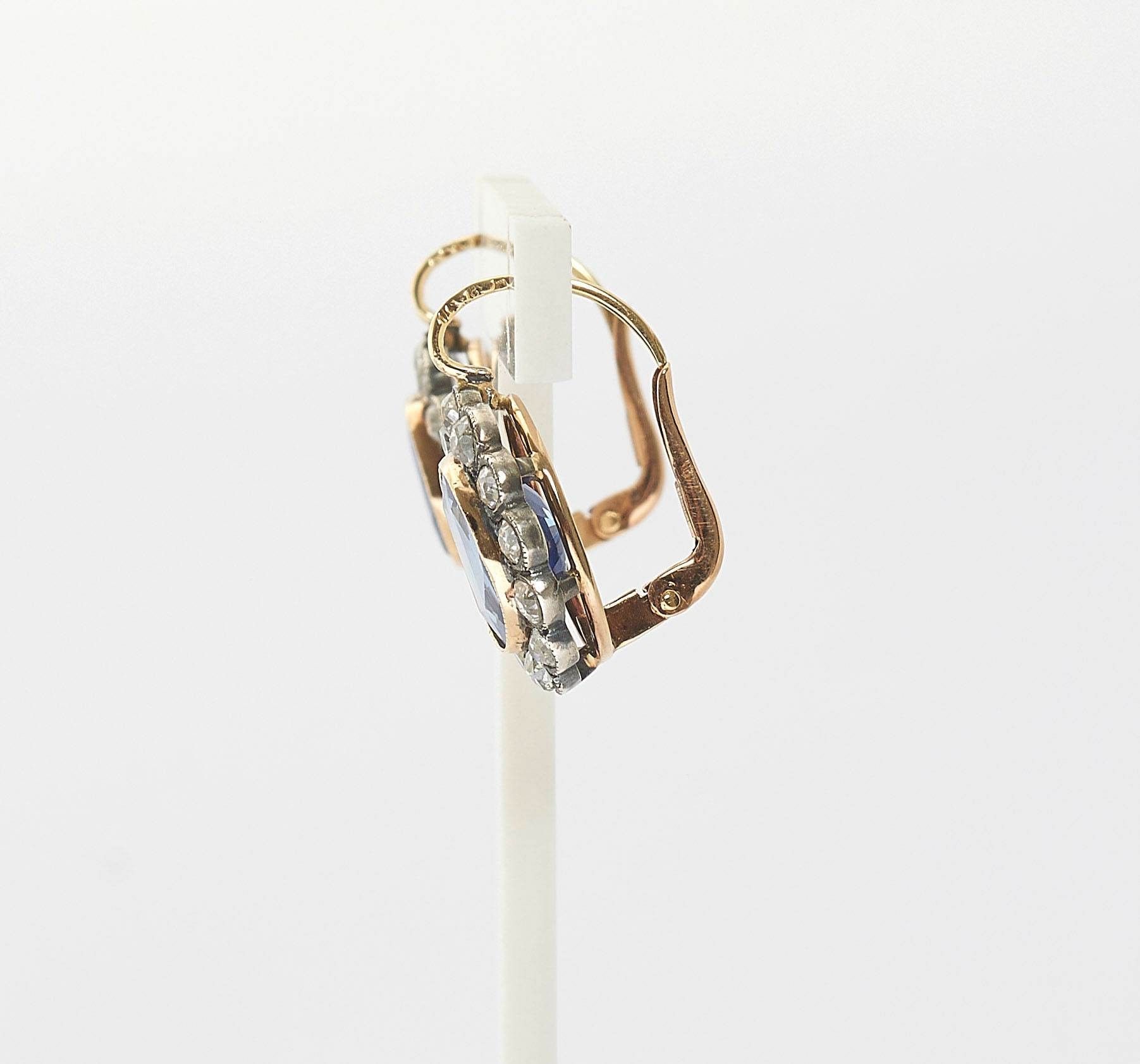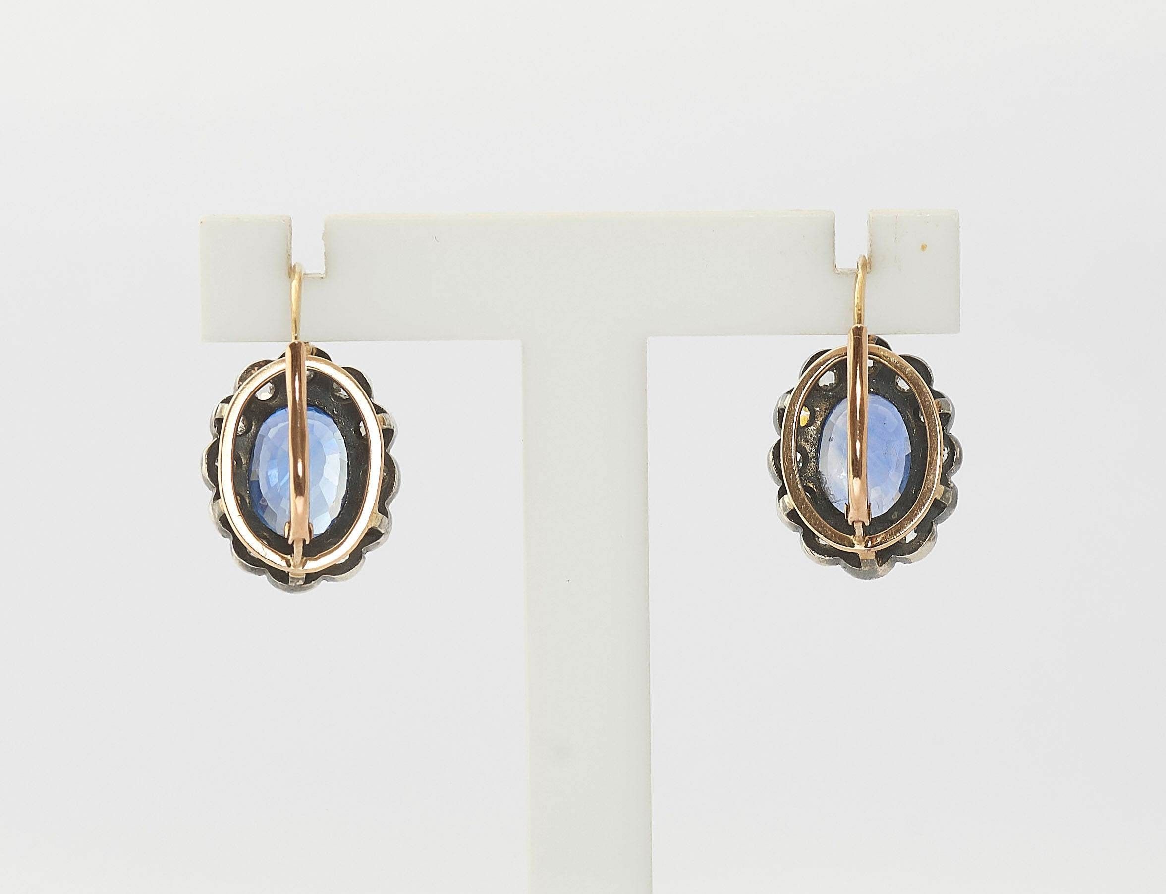 Premium CEYLON SAPPHIRE AND DIAMOND EAR PENDANTS, Austria, ca. 1900