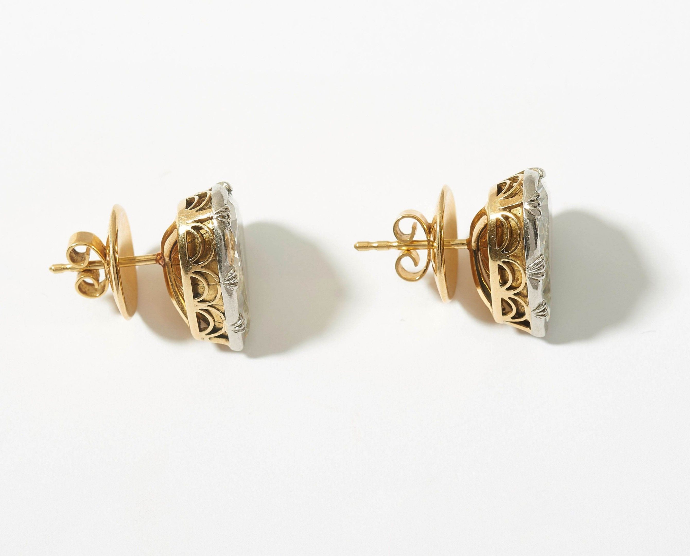 DIAMOND EARRINGS Yellow gold and silver, 12g.