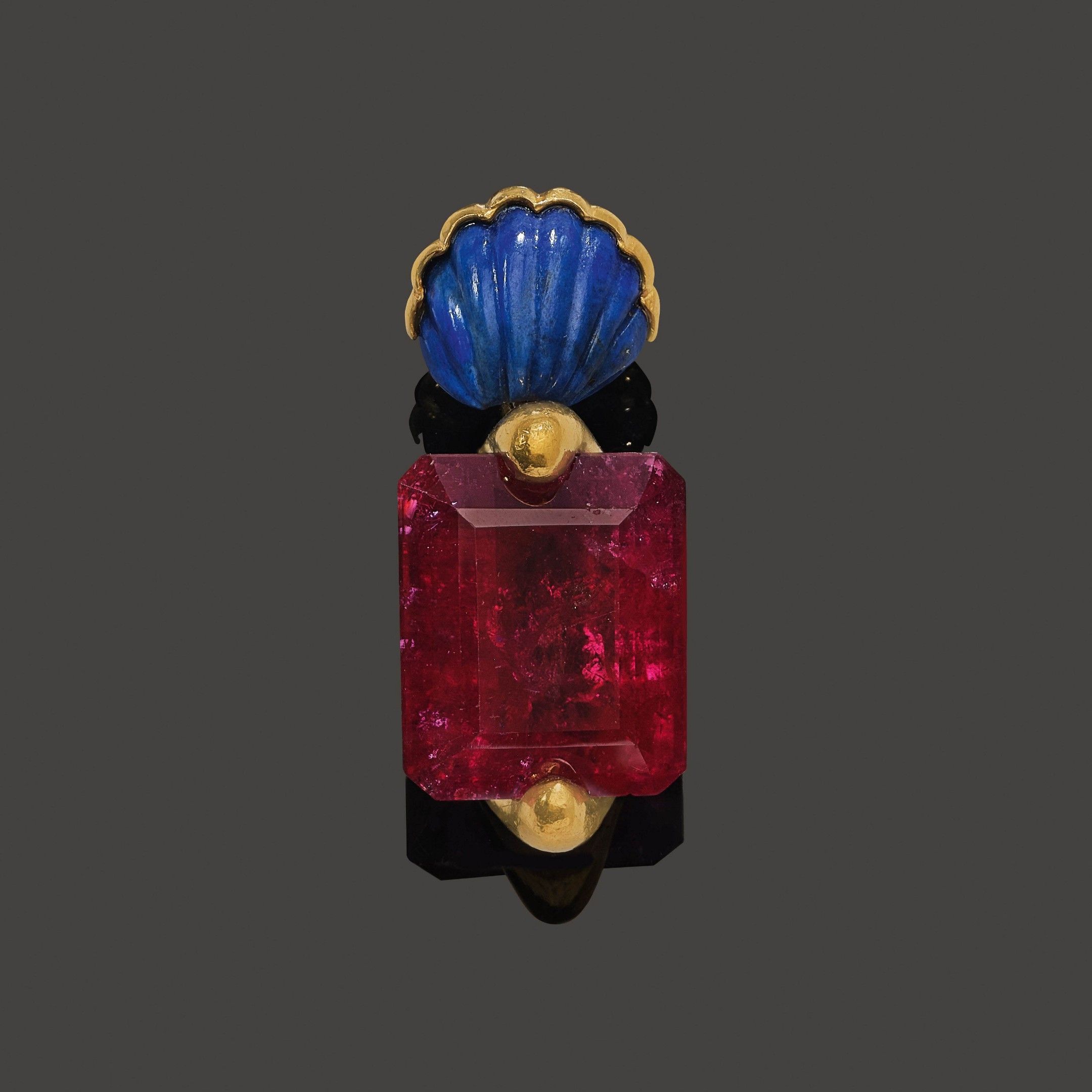 RUBELLITE AND LAPIS LAZULI PENDANT, JEAN-CLAUDE CHAMPAGNAT