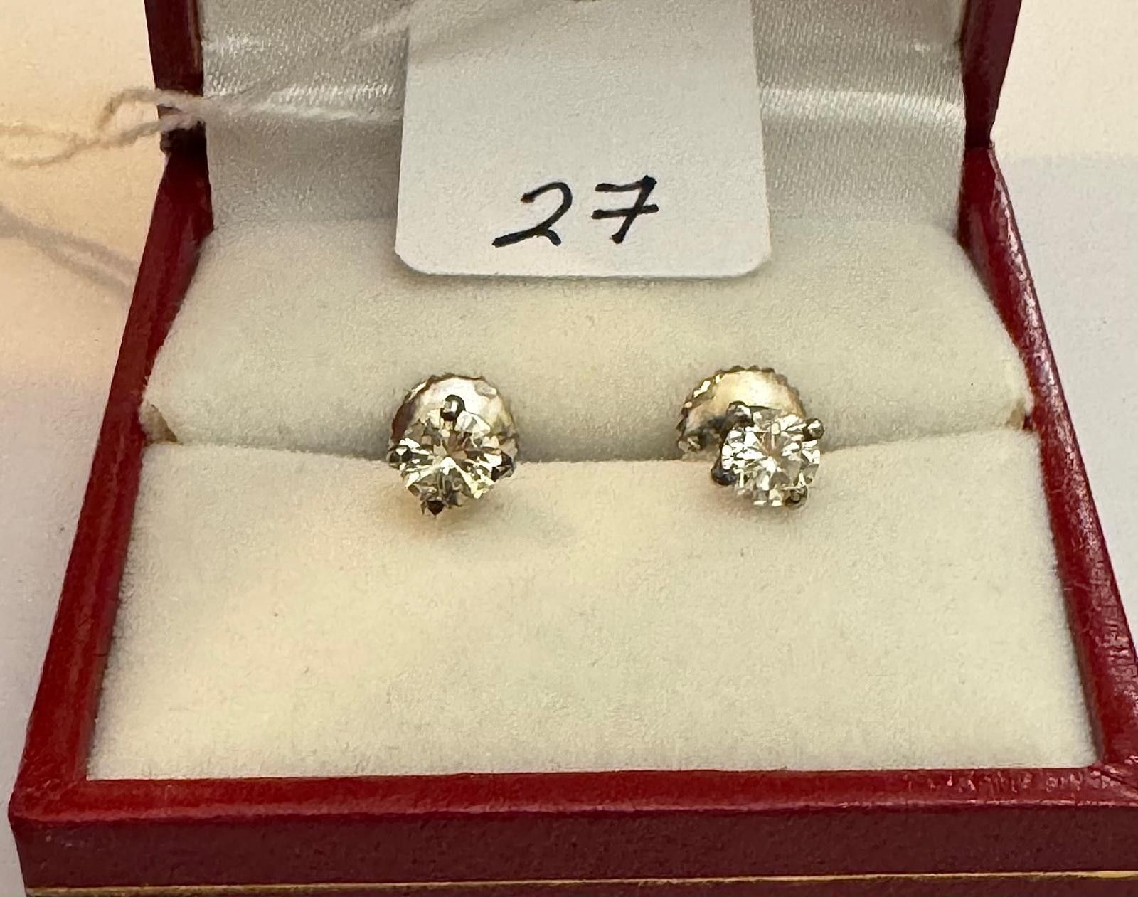 Pair of stud earrings in 18K white gold, set with 2 brilliant-cut diamonds totalling ~ 0.56ct - H to i / V.S - Screw clasps - 1.2g