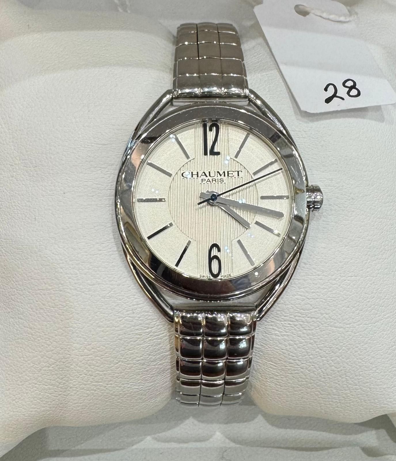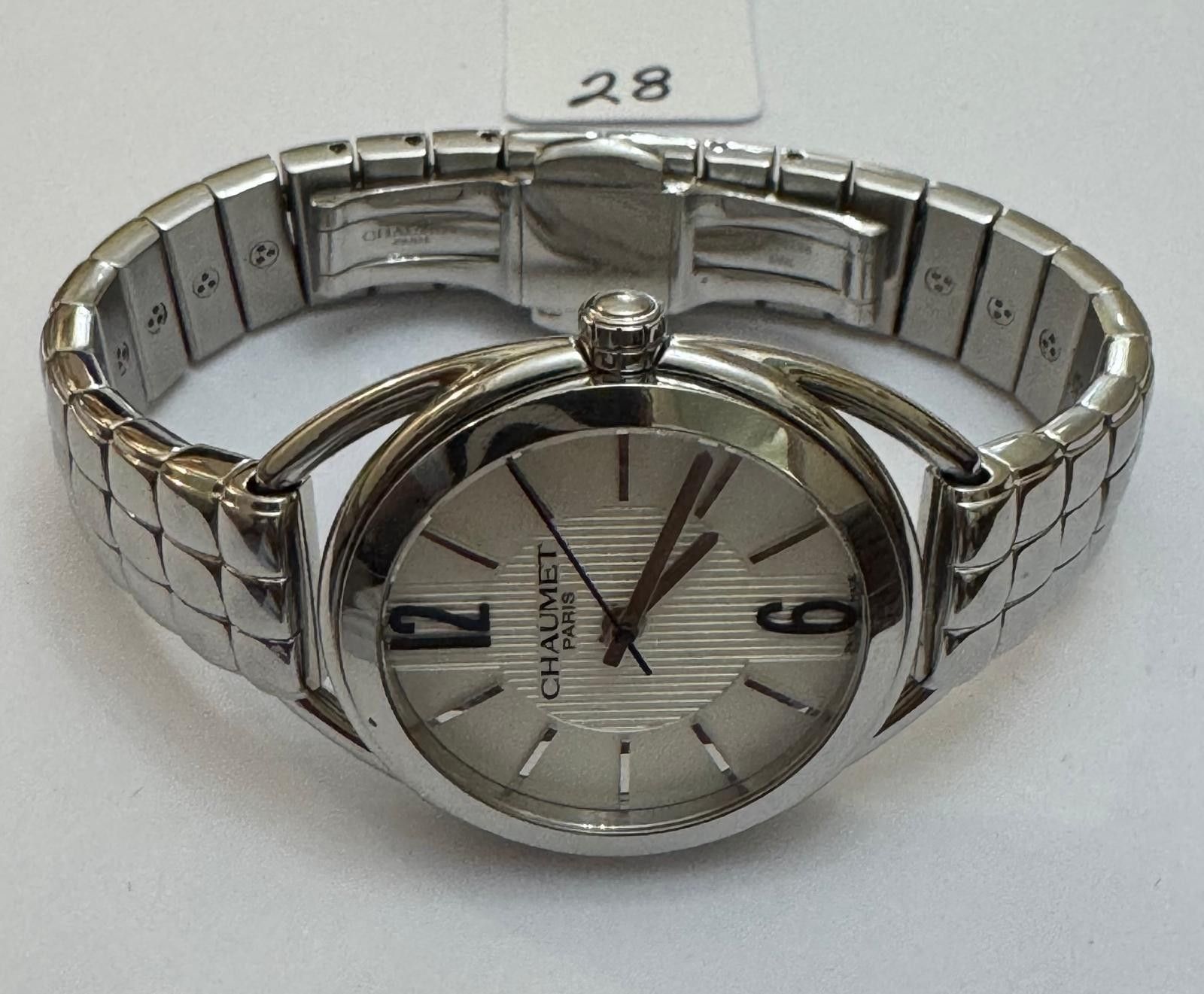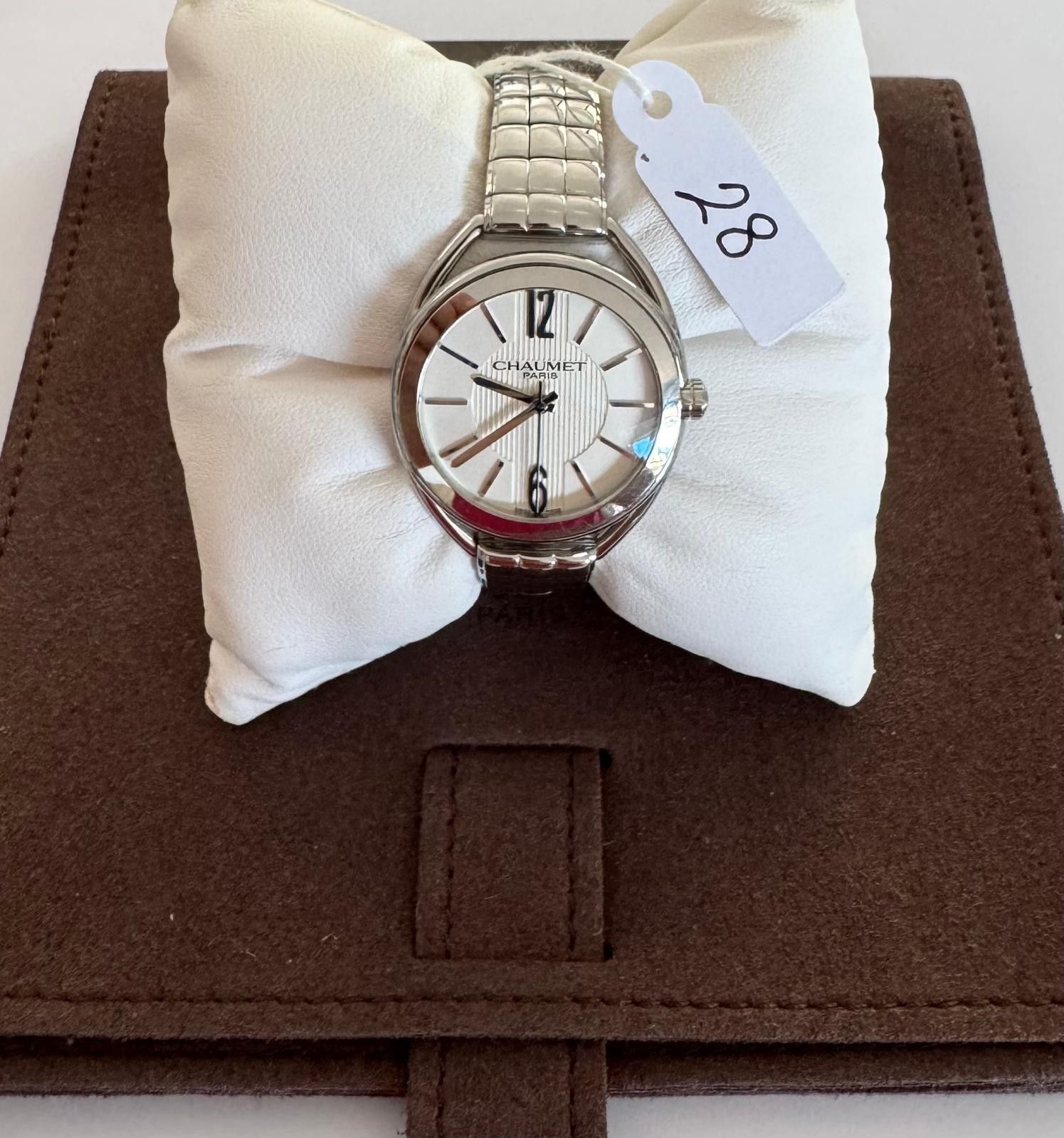 Steel Lady's watch, signed - CHAUMET - LIENS de CHAUMET - Ø 28mm - Quartz, Steel bracelet with steel butterfly clasp, n° 2215 / 0638 - 53,7g ( Very Fine Condition / small wrist with Chaumet Pouch )
