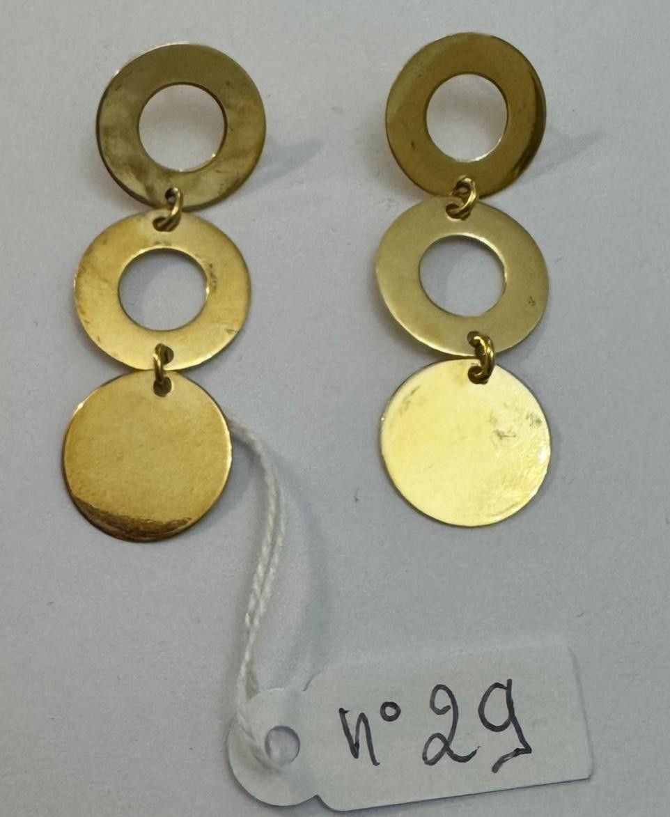 Pair of earrings in 18K yellow gold 750 thousandths, set with 6 Circles - 5cm - 7.1g