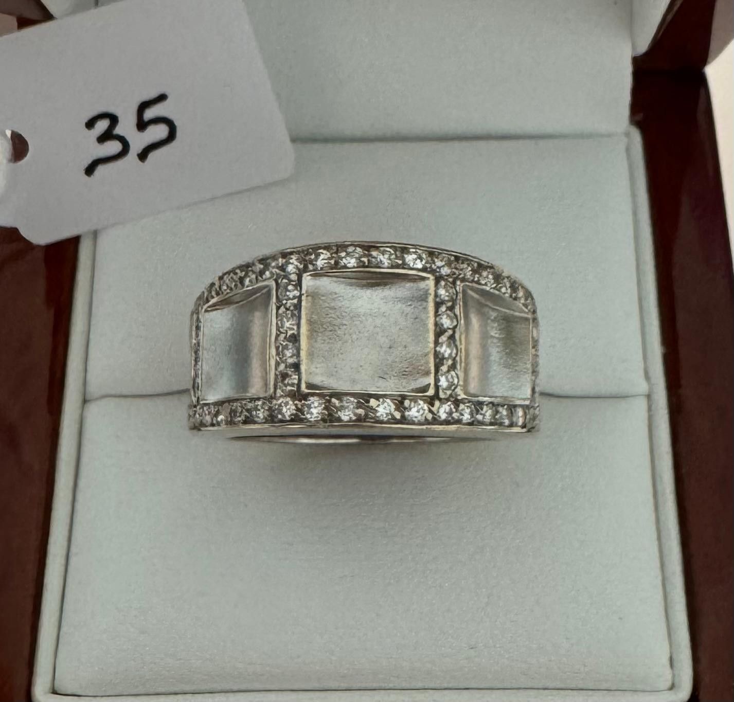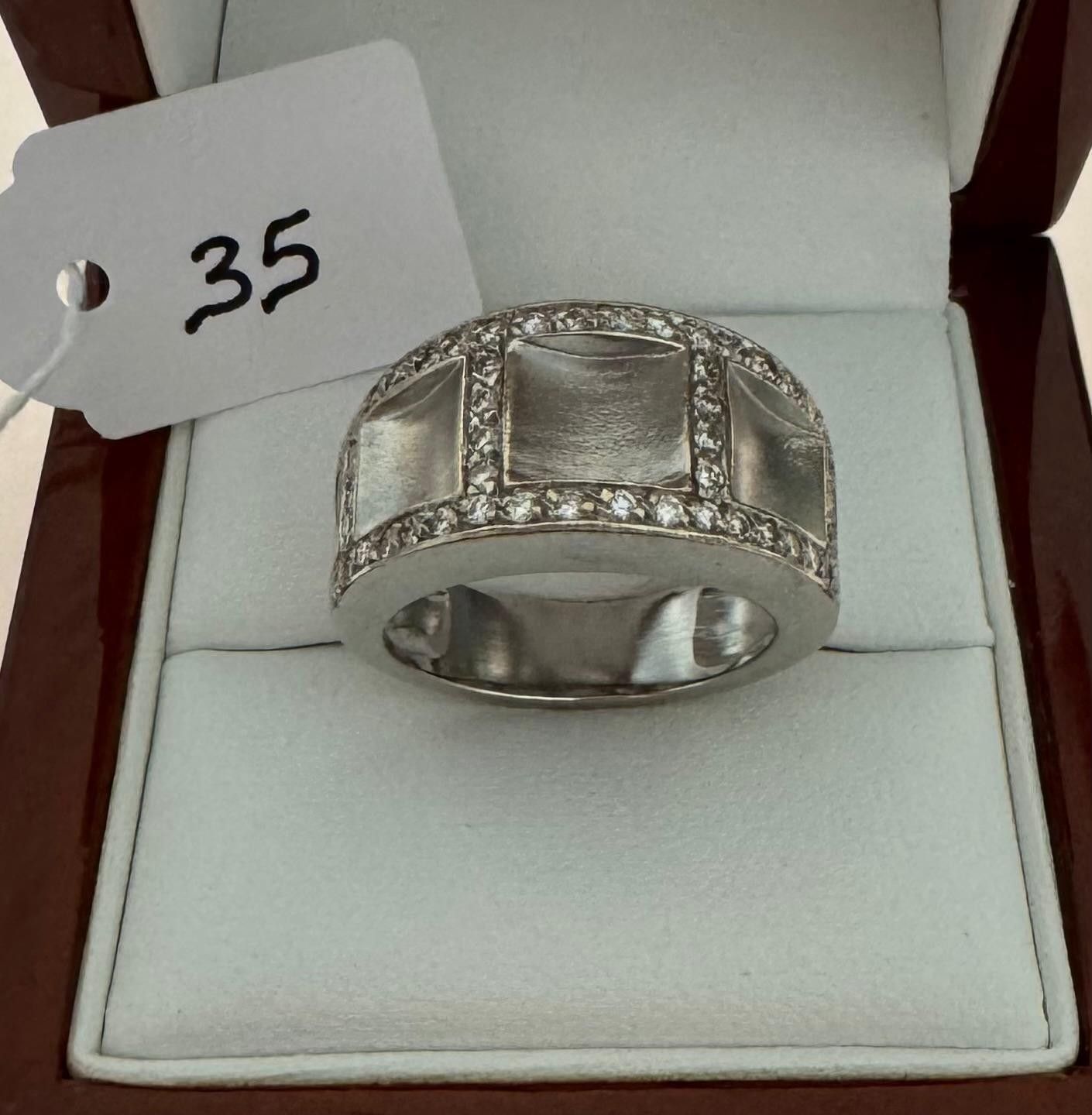 Wedding band ring in 18K 750 thousandths white gold, set with 5 square motifs, surrounded by 50 brilliant-cut diamonds - TDD / 58 - 14.4g