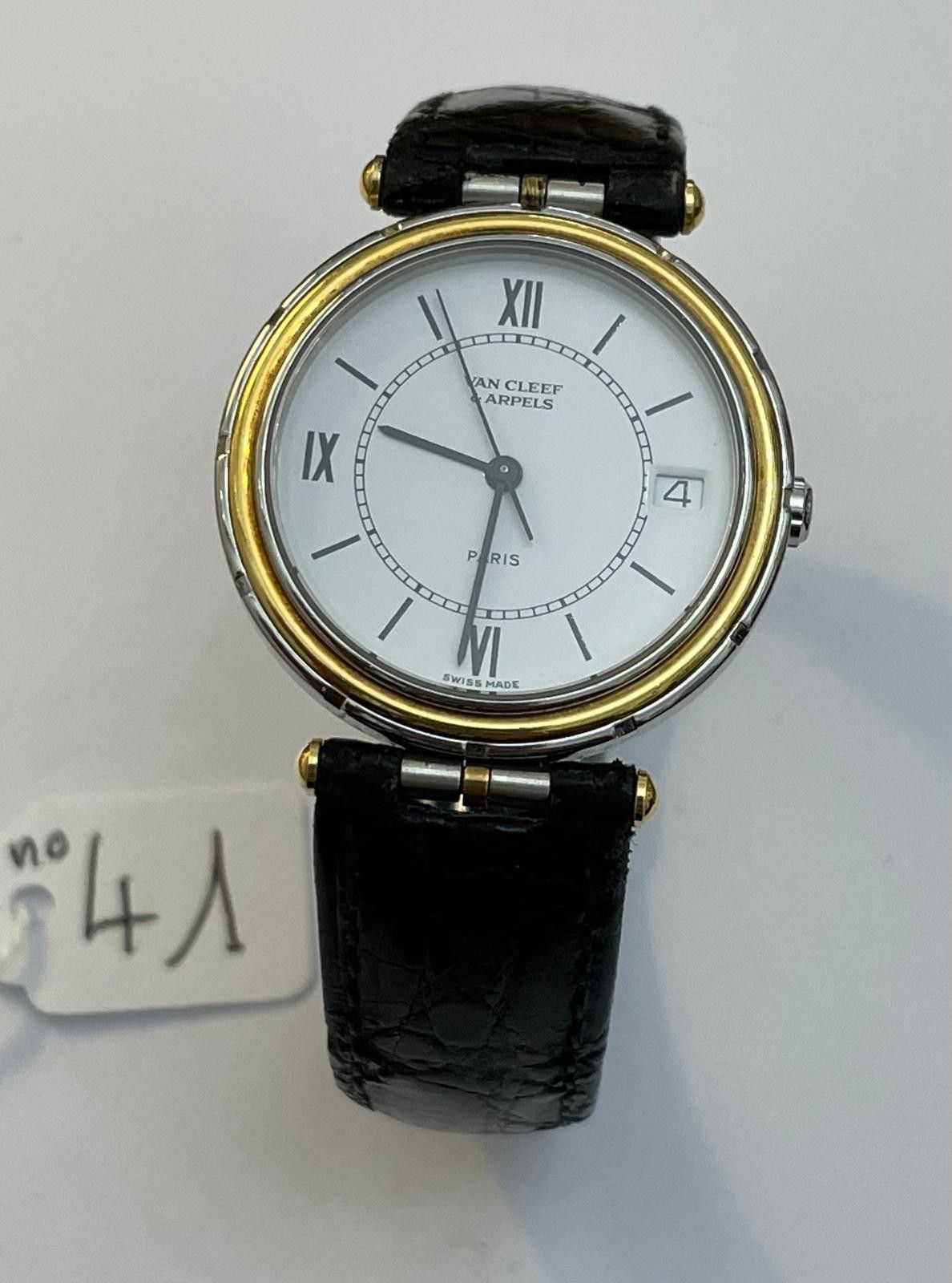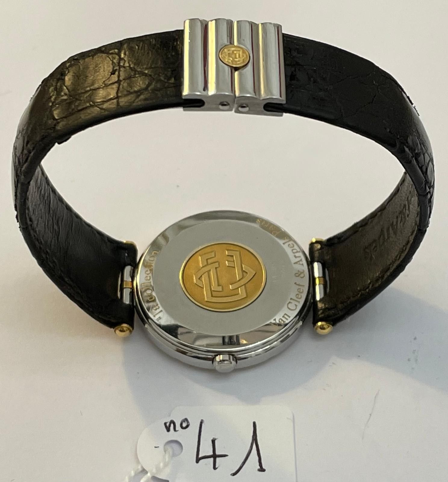 Gold and steel watch, signed - VAN CLEEF & ARPELS - La Collection - Ø 30mm - Quartz movement with Dater at 3 o'clock / VCA leather strap with "Butterfly" buckle Gold and steel, signed VCA / 34,6g ( Watch in very good condition / strap glued back )