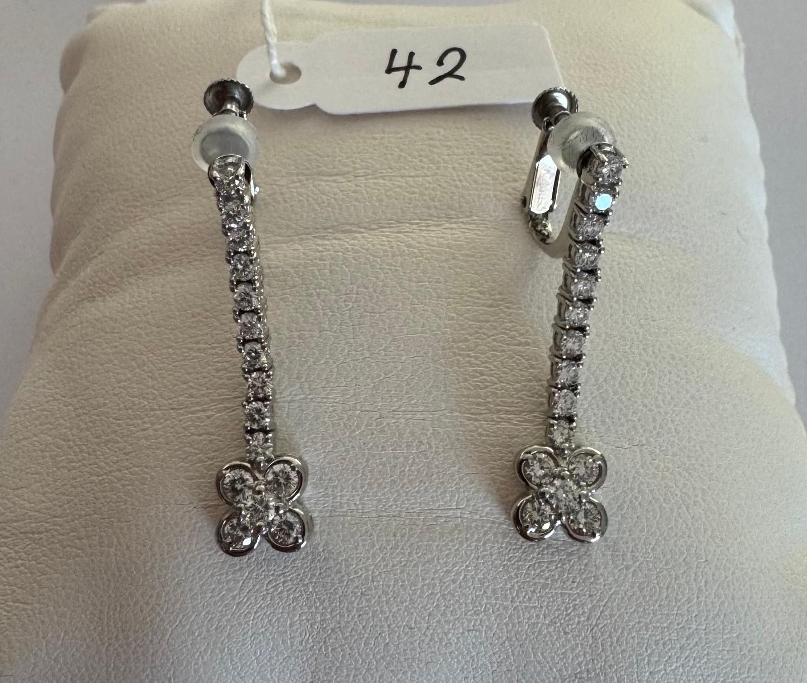 Pair of ear pendants in platinum 850 thousandths, Motifs set with 30 brilliant-cut diamonds, for 1,20ct - H / V.S - Length 3,1cm - 6,8g