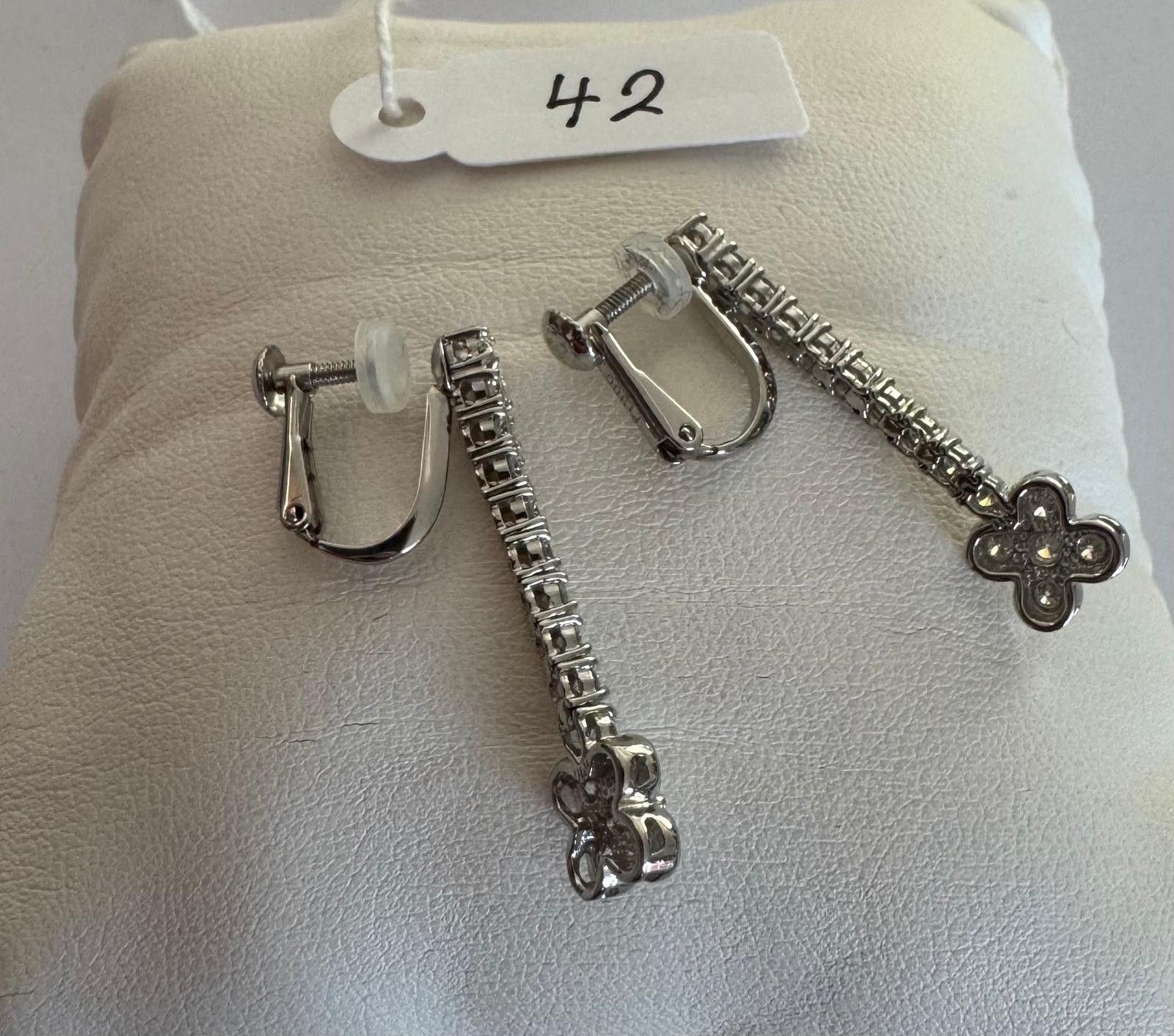 Pair of ear pendants in platinum 850 thousandths, Motifs set…