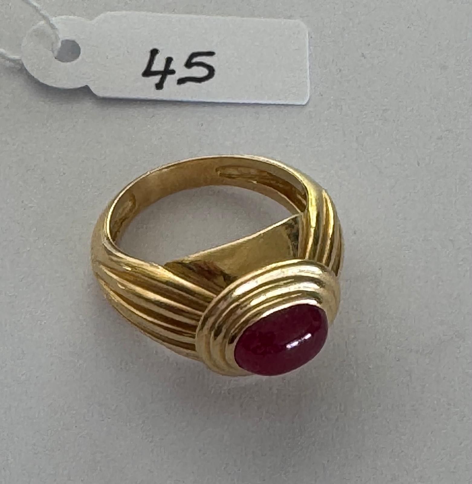 18K yellow gold 750 thousandths, set with a ruby cabochon - …