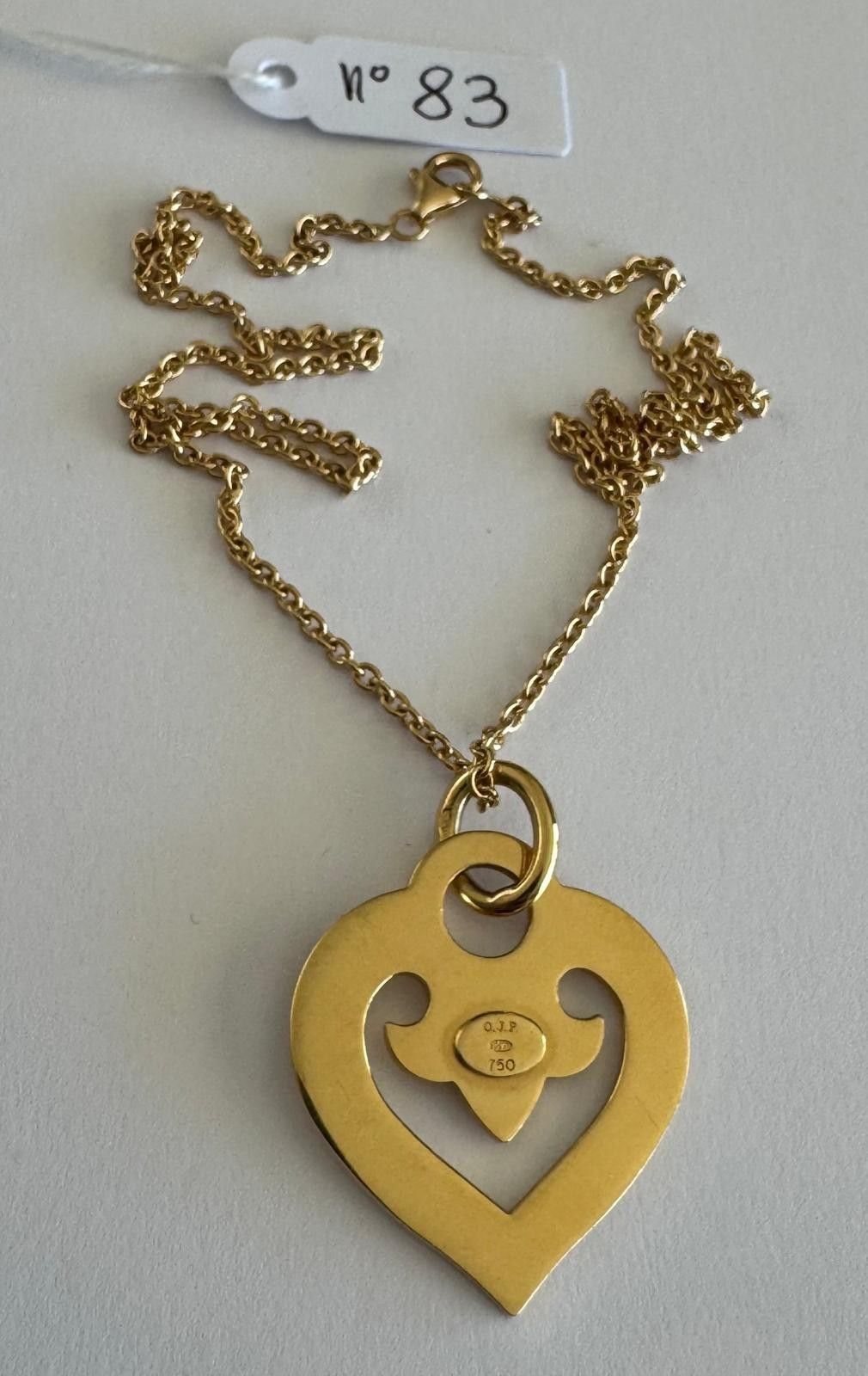 18K 750 thousandths yellow gold Forçat link chain, supporting an 18K 750 thousandths yellow gold "Heart" pendant, signed - O.J PERRIN - Large Model 17mm X 34mm - chain 42 cm long - 13.5g