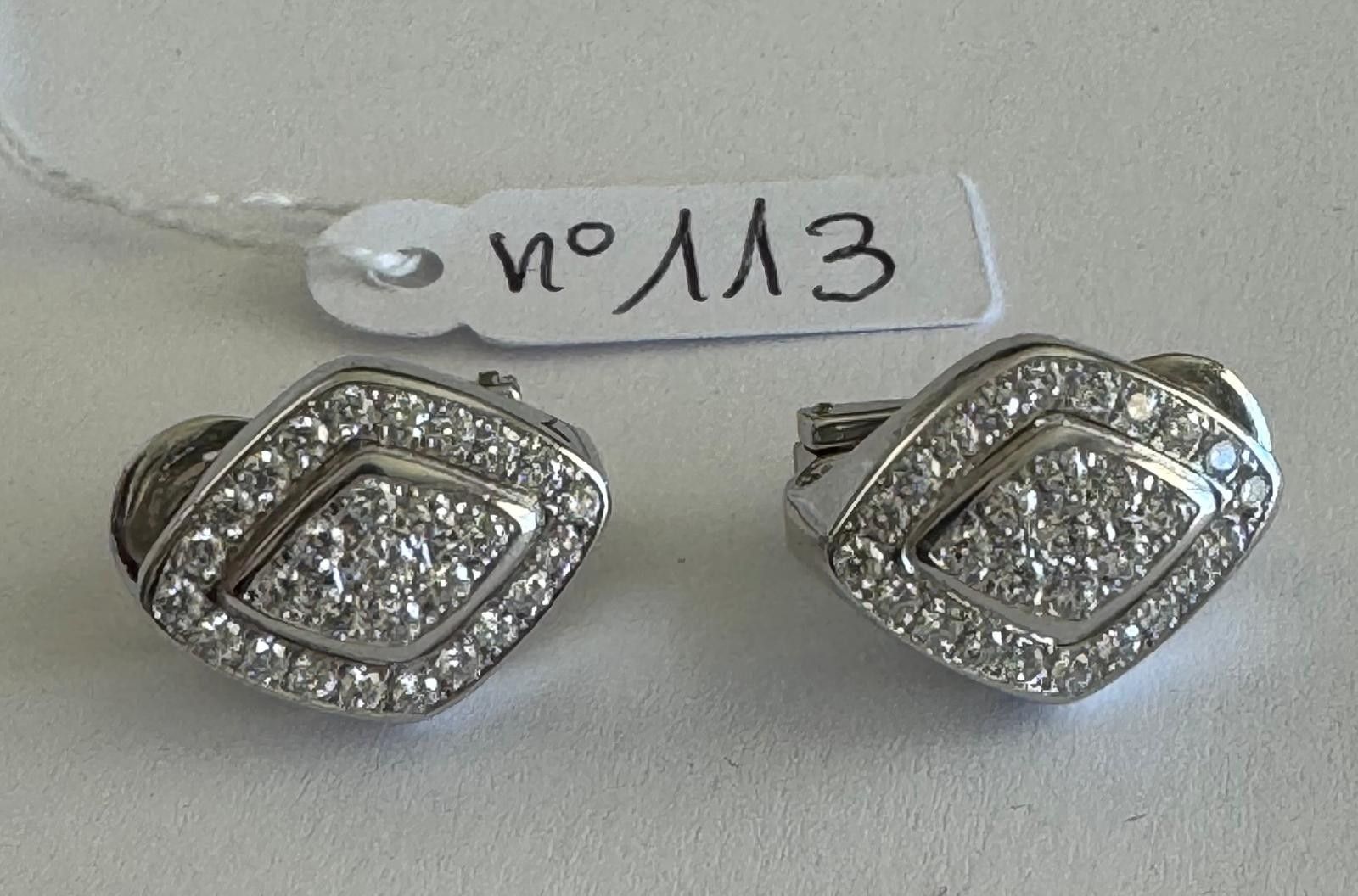 Pair of ear studs in 18K white gold 750 thousandths, with Losange motifs set with 58 beautiful brilliant-cut diamonds, for ~ 2cts - F to G (Extra White) / V.V.S to V. S - Snowshoe clasps. 12,4g
