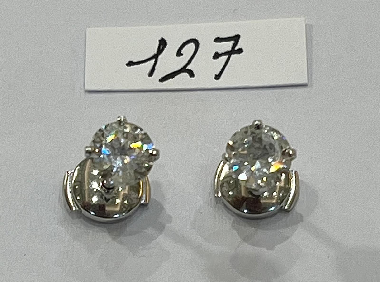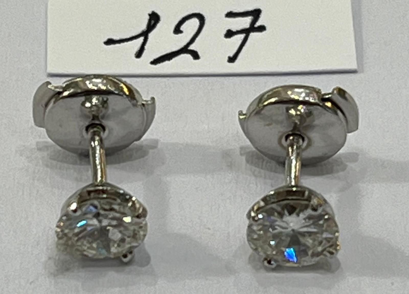 Pair of Stud Earrings in 18K white gold 750 thousandths, set with 2 beautiful Brillant-cut Diamonds, Gauging ~ 0.75ct / Each, Soit 1.50ct - H / V.S1 - Clasps Alpa. 3,4g.