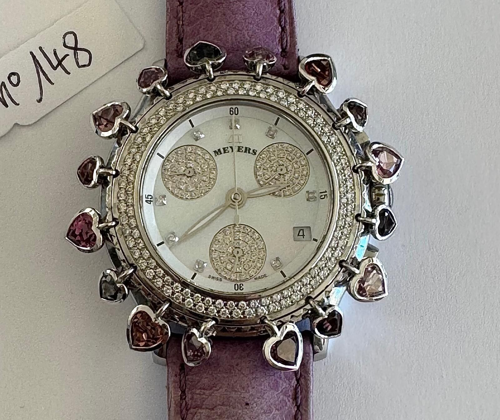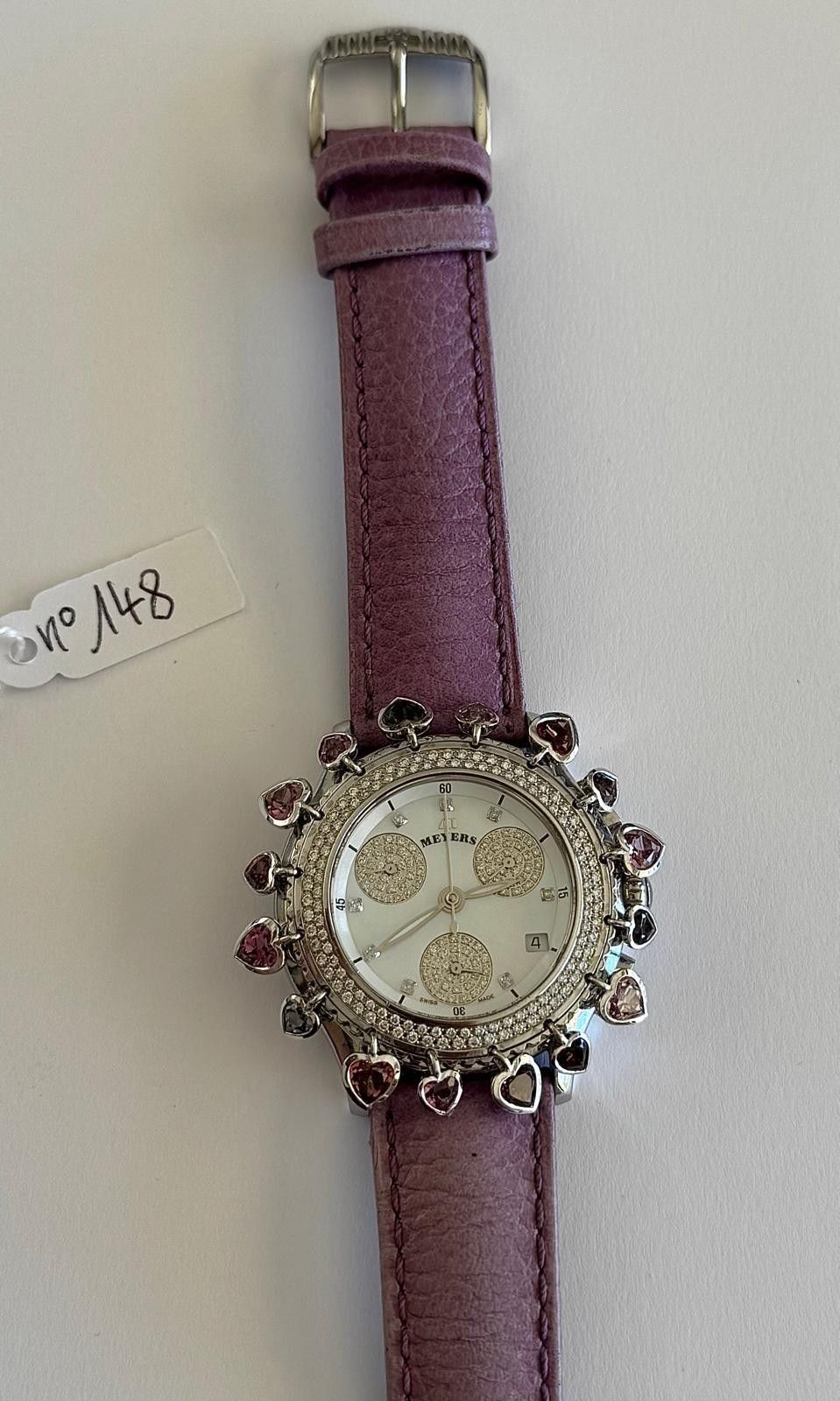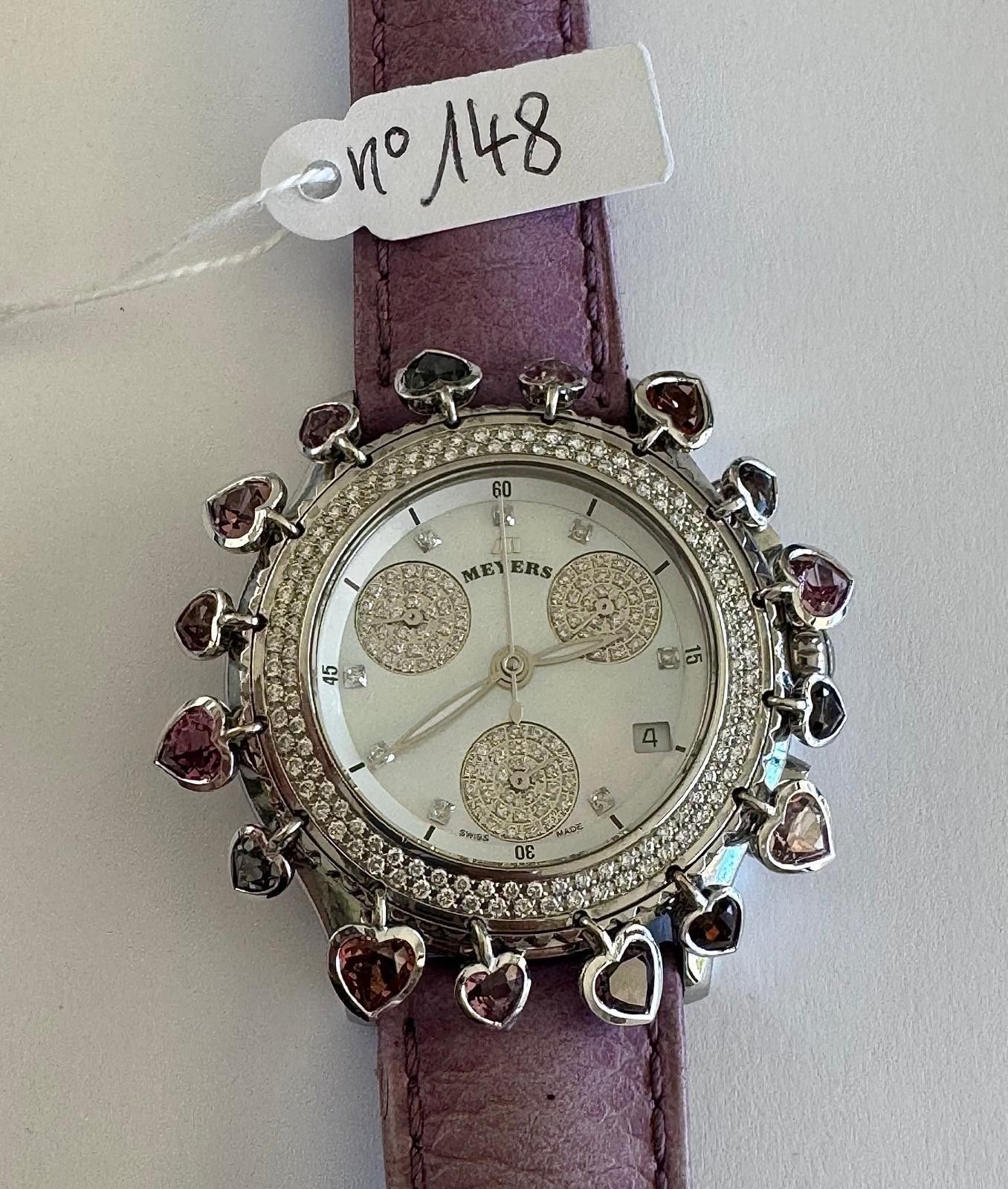 Steel watch, signed - MEYERS - Lady Diamonds - brilliant