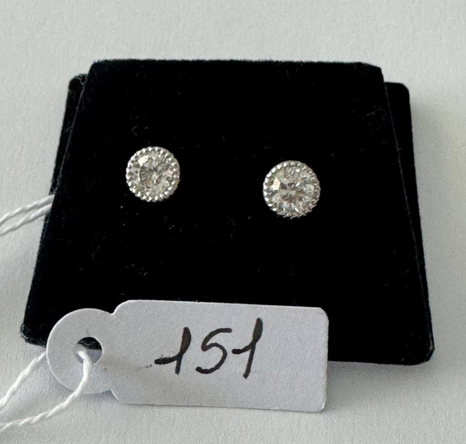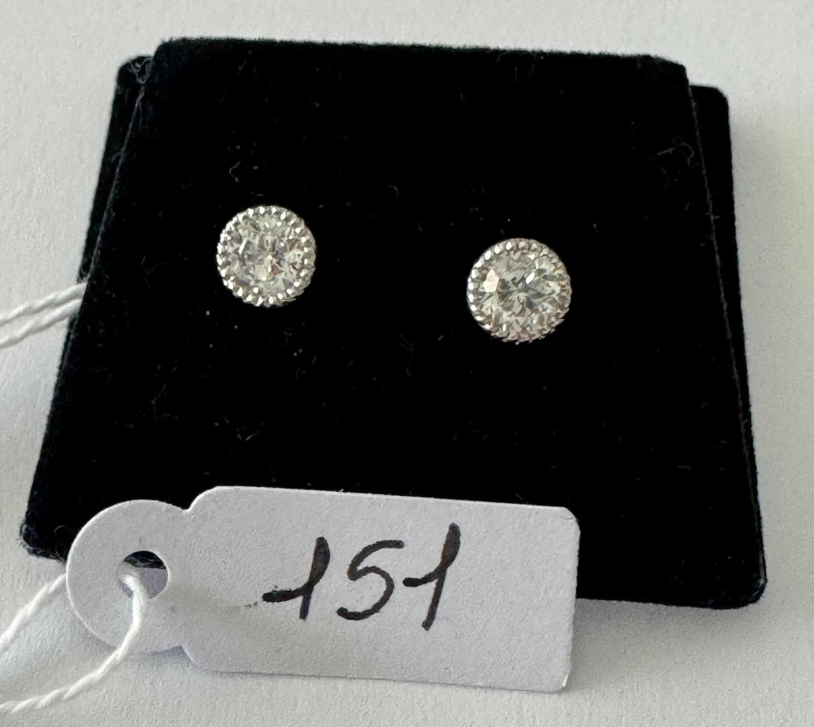 Premium Pair of stud earrings in 950 thousandths platinum, set with …