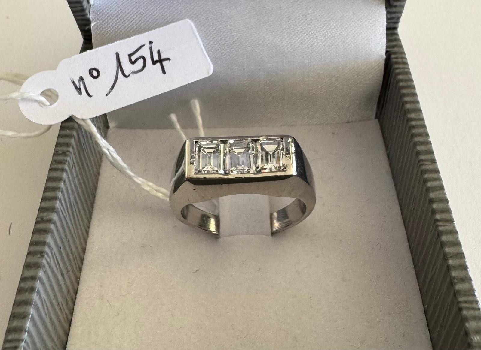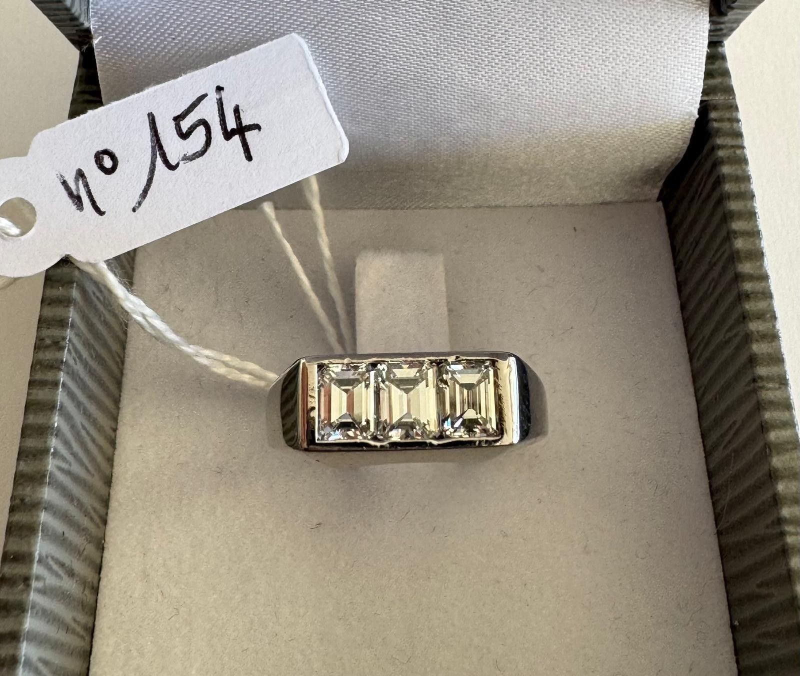 Ring in 18K 750 thousandths white gold, set with 3 very beautiful Emerald-cut diamonds each calibrating ~ 0.70ct - totalling ~ 2.10cts - G / V.V.S - TDD / 55 1/2 - 8.0g