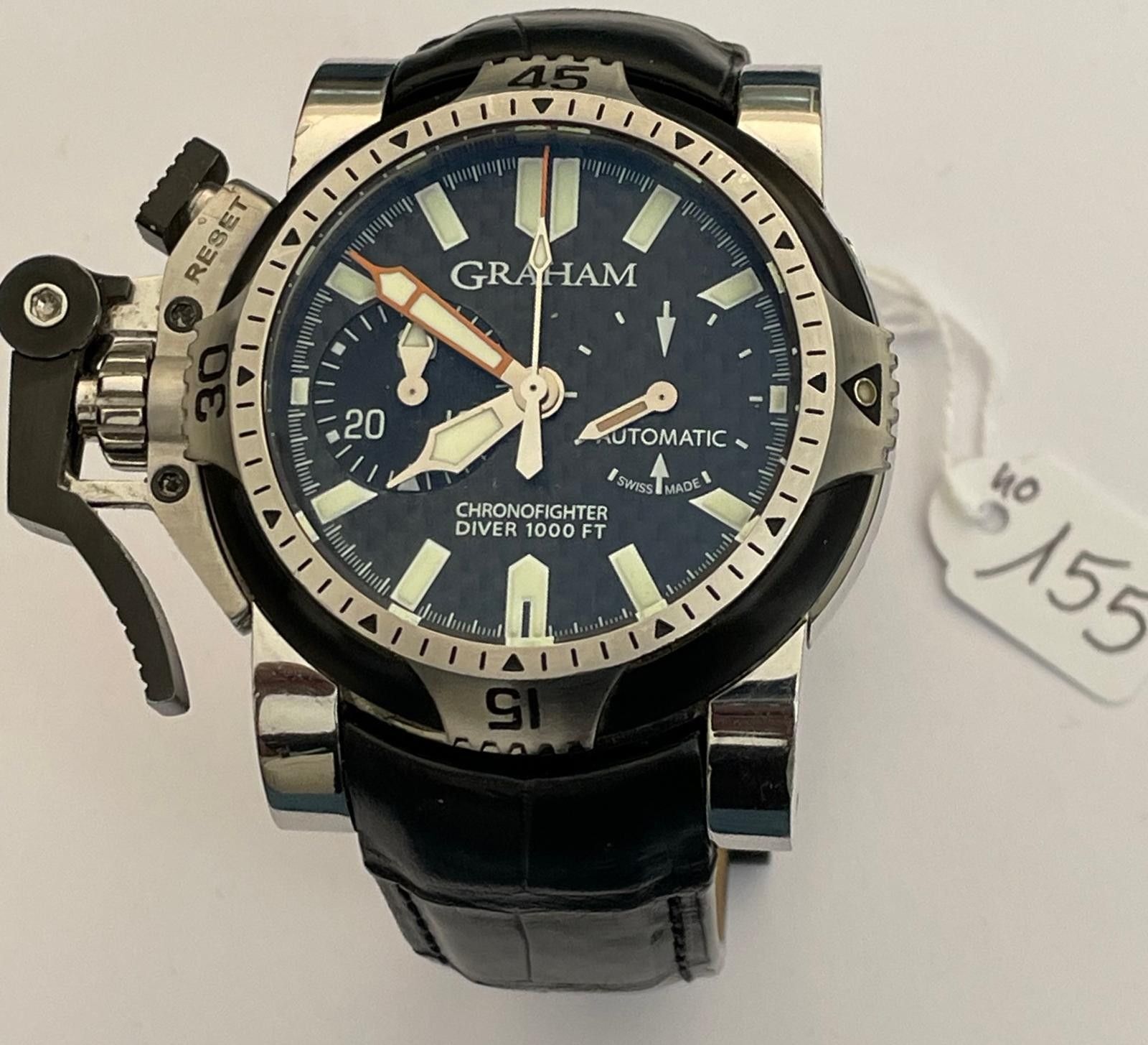 Steel watch, signed - GRAHAM - CHRONOFIGHTER VIDER 1000FT - Ø 47mm - Carbon back, Croco strap ( New ) Automatic movement, Rotating bezel, numbered n° 198 - 149g