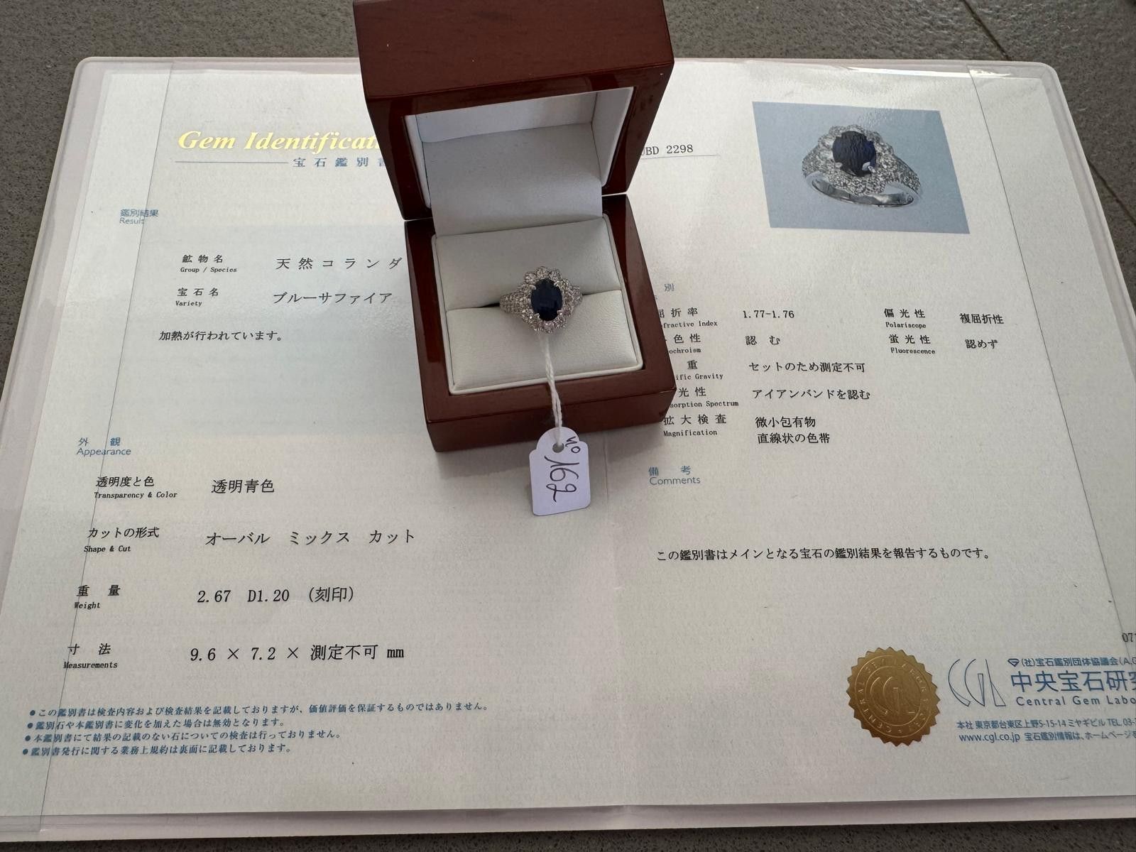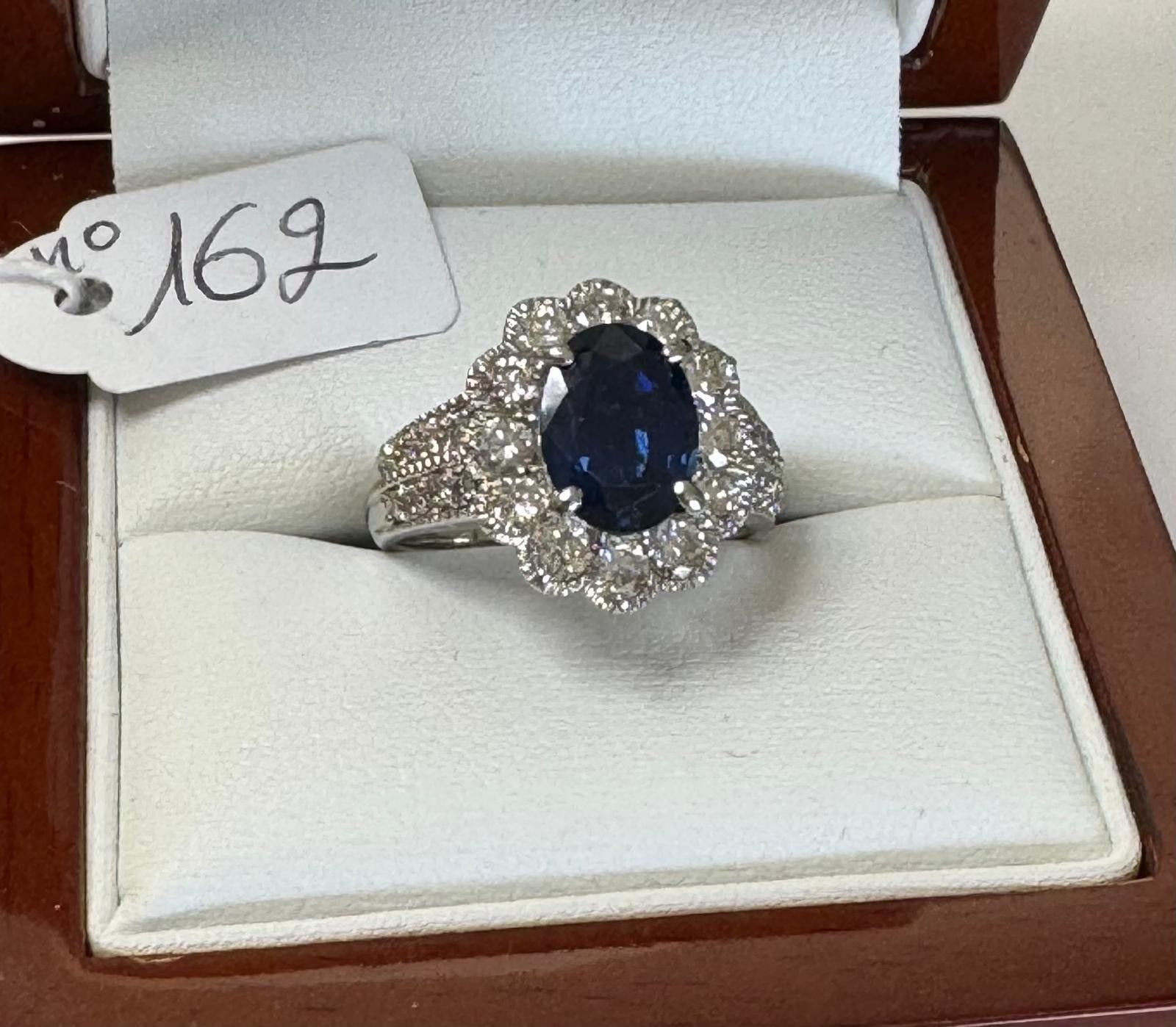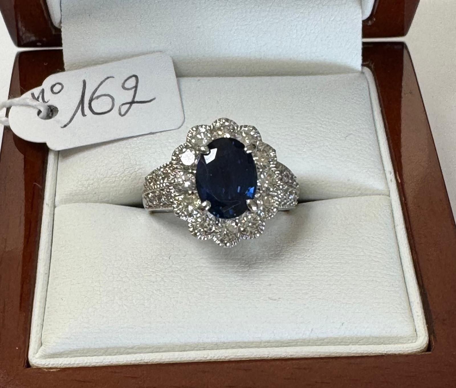 Pretty ring in platinum 850 thousandths, set in the centre with an oval sapphire weighing 2.67cts surrounded and shoulders set with brilliant-cut diamonds, for 1.20cts - TDD / 53 - 10.1g ( with Certificate Gem Identification Report )