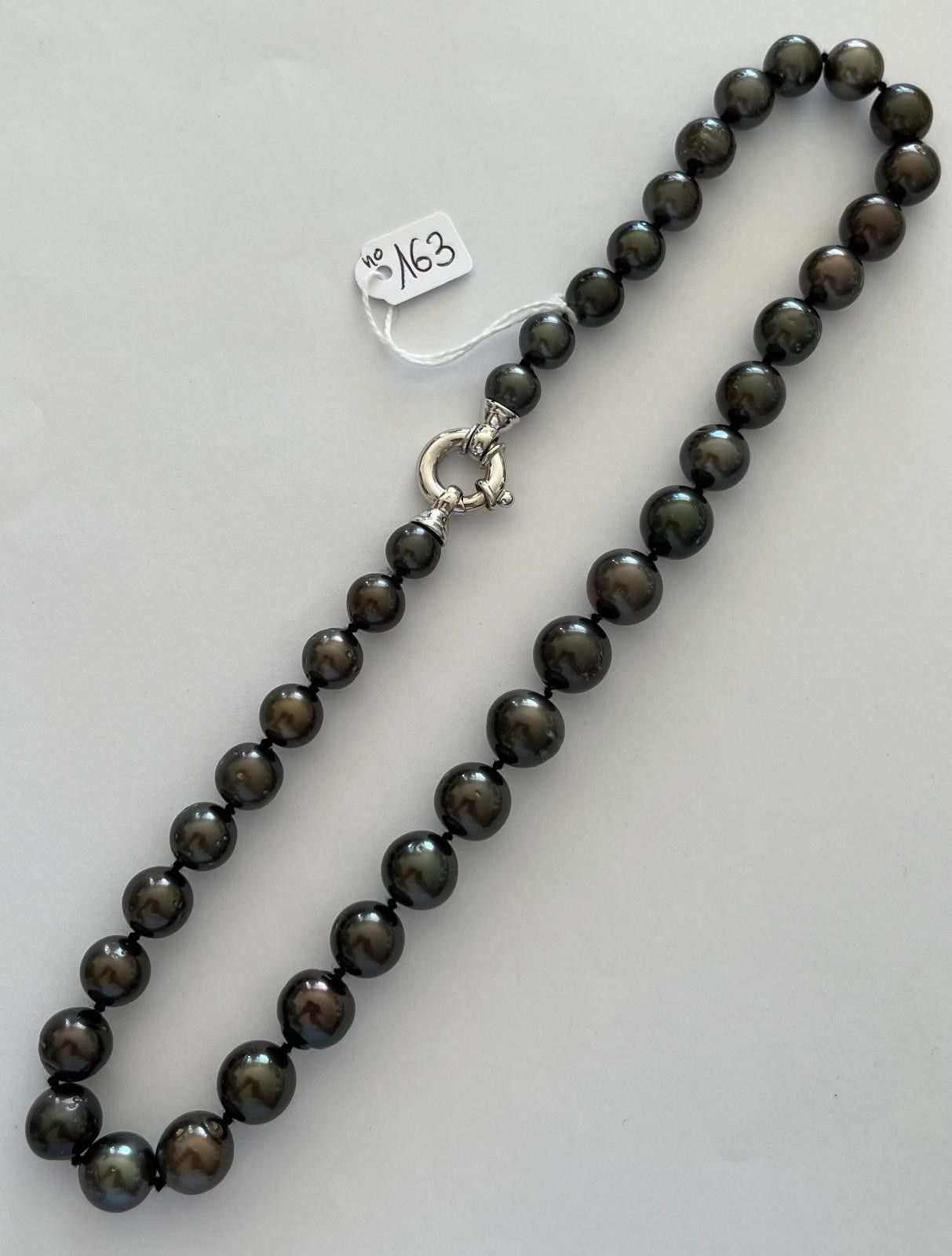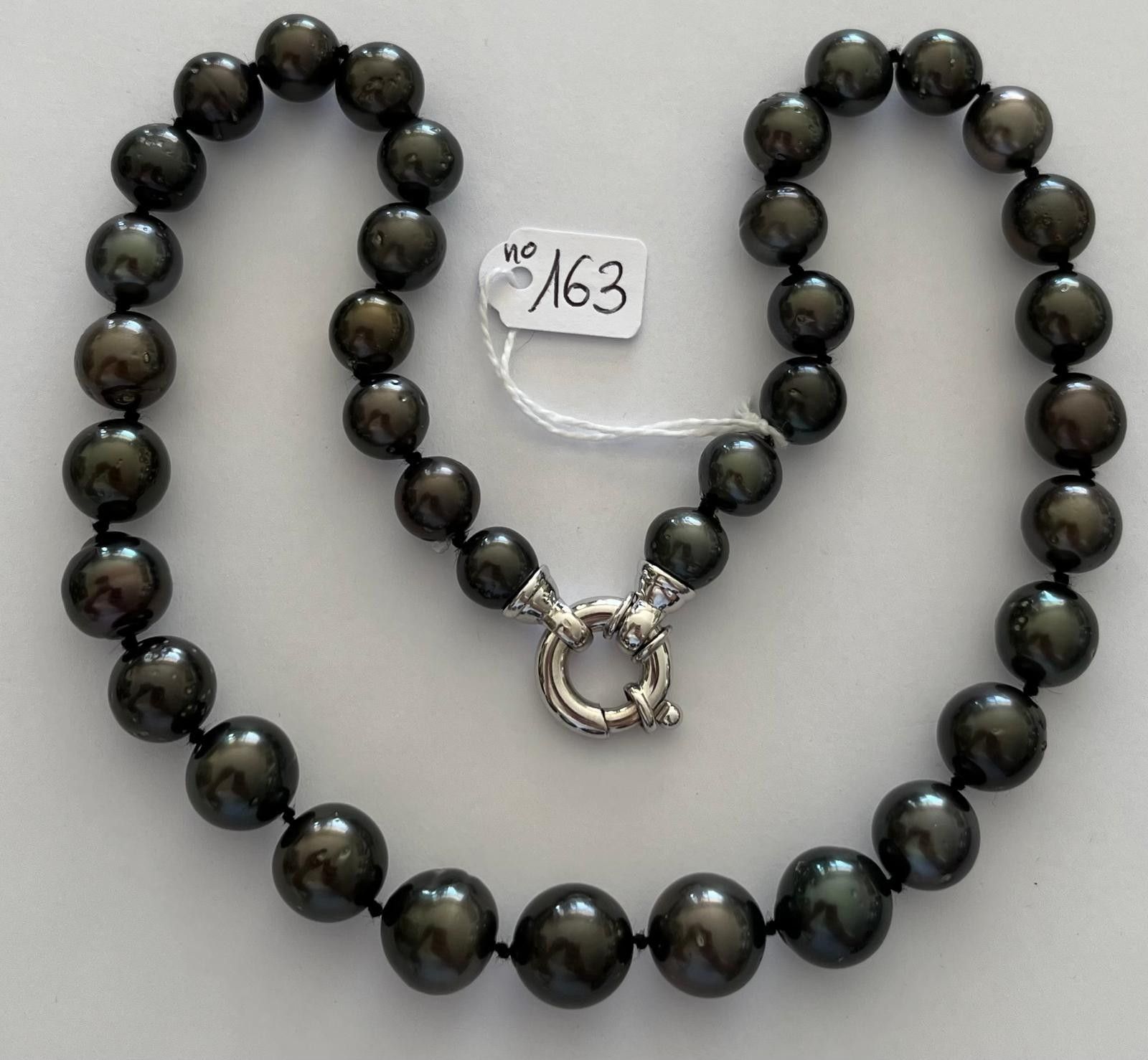 Necklace of 37 Black Tahitian Pearls - en Chute - Black Butterfly - Ø 13mm to 10mm - white gold Sea Ring clasp / 45cm. 72,5g