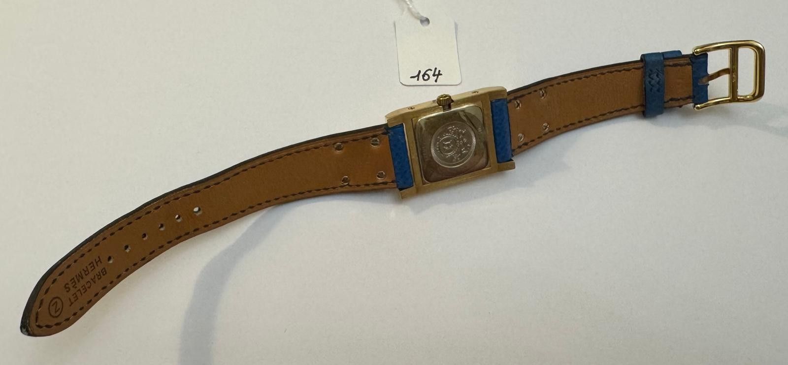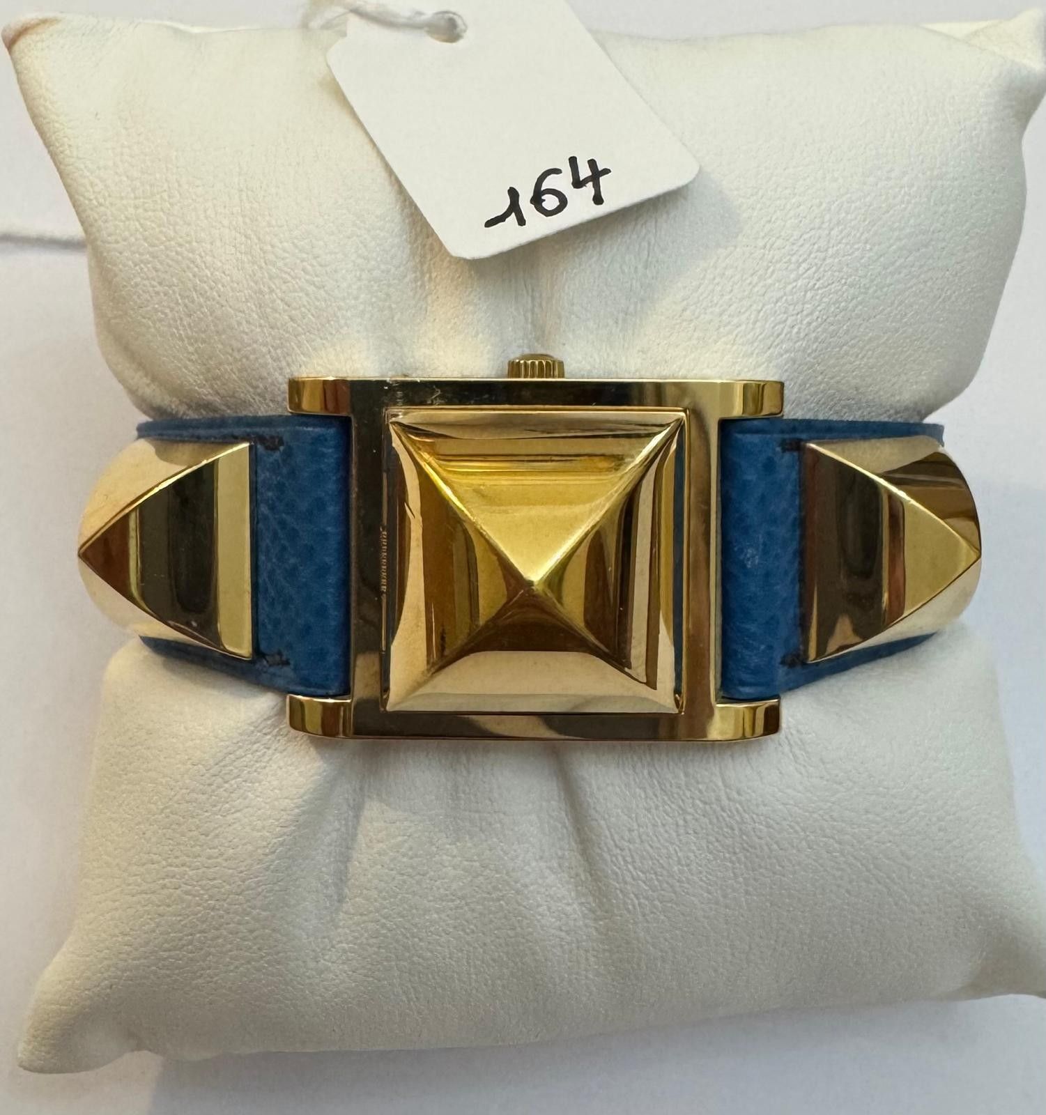Gold-plated watch, signed - HERMÈS - MEDOR - Blue leather st…