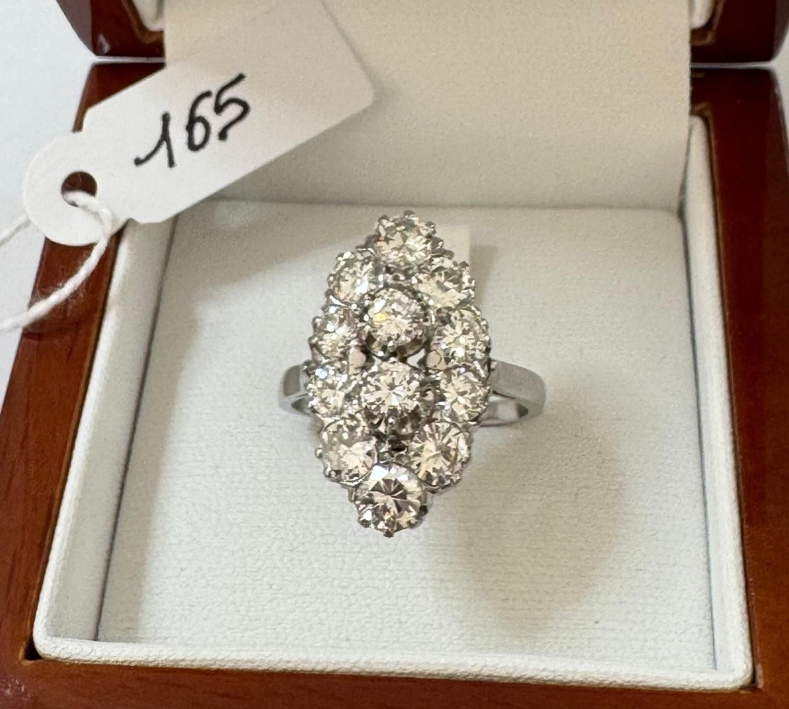Beautiful "Marquise" ring in 18K 750 thousandths white gold, set with 12 brilliant-cut diamonds, weighing ~ 3.10cts - G to H / V.S.1 - TDD / 55 - 7.9g
