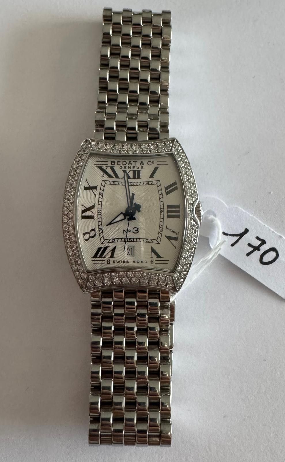Steel watch, signed - BEDAT & C° - B 3 - Dial entirely set w…