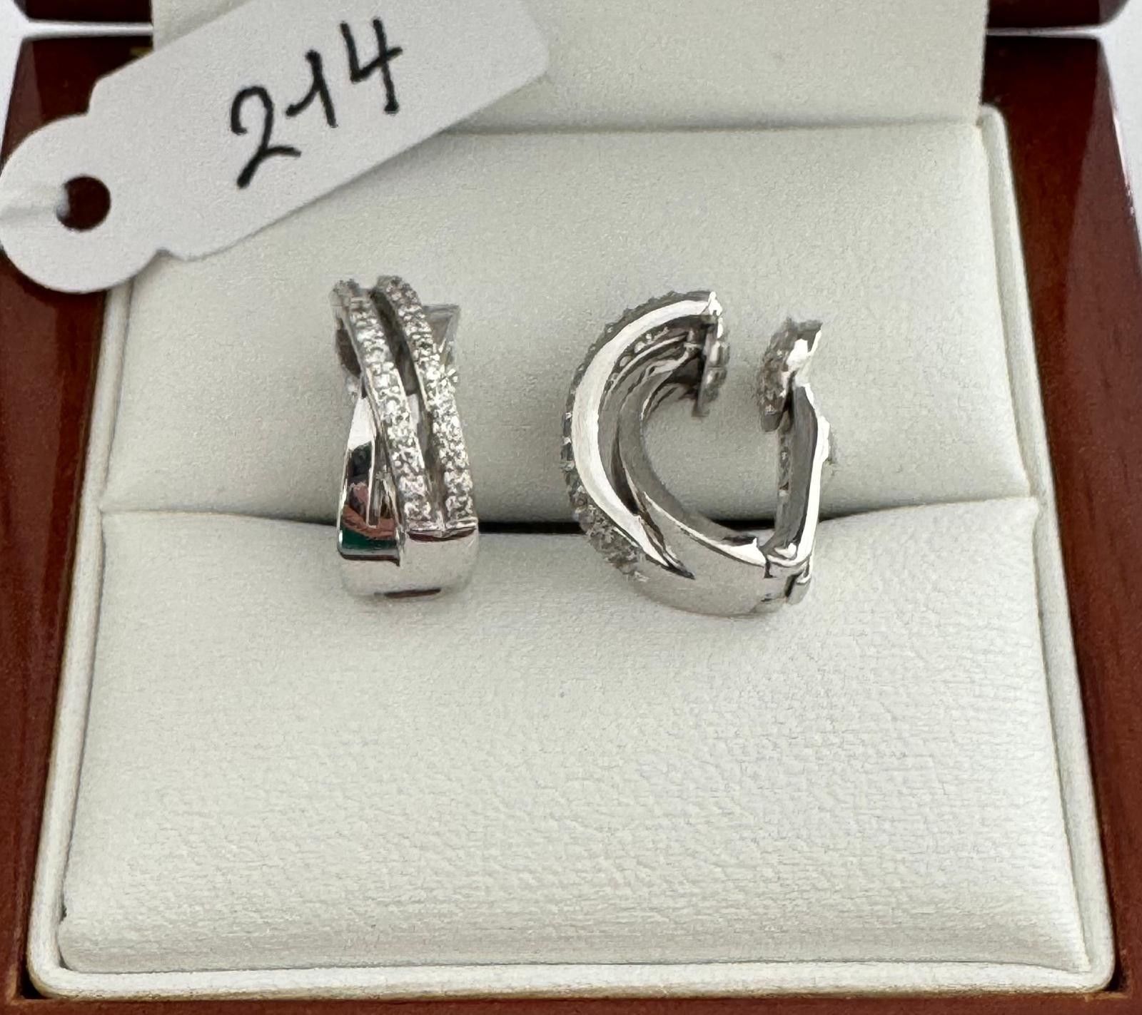 Pair of ½ hoop earrings in 18K white gold set with a double …